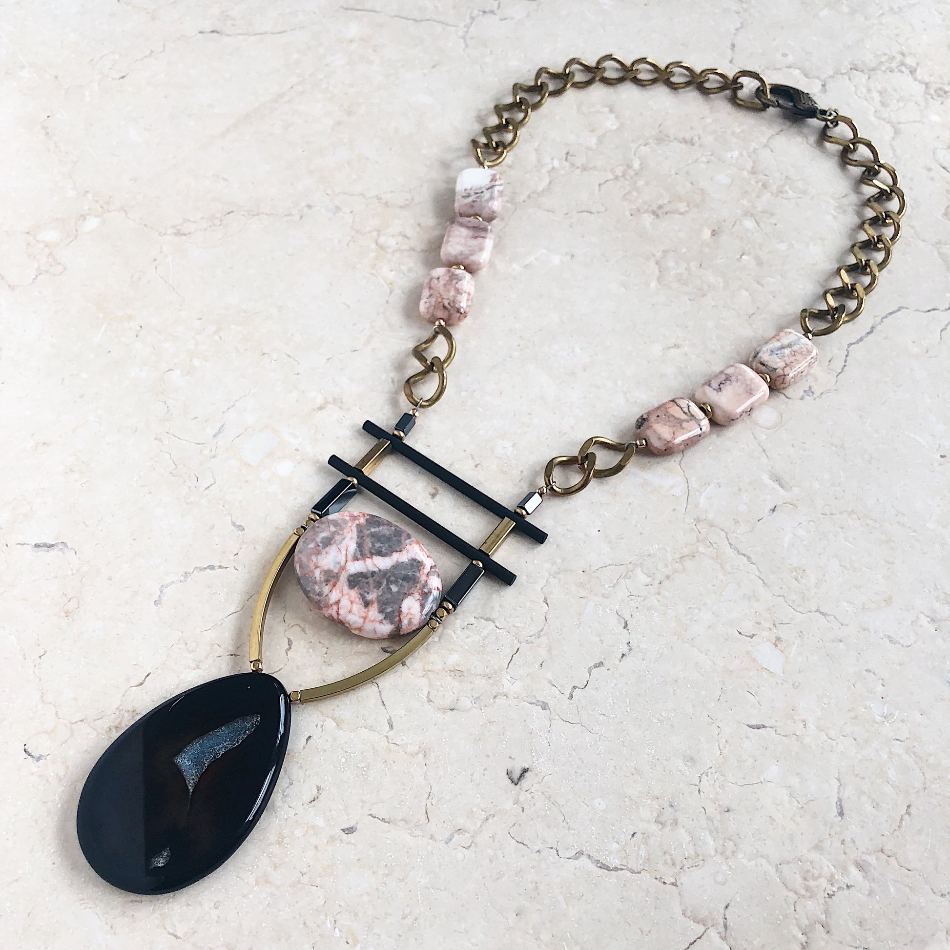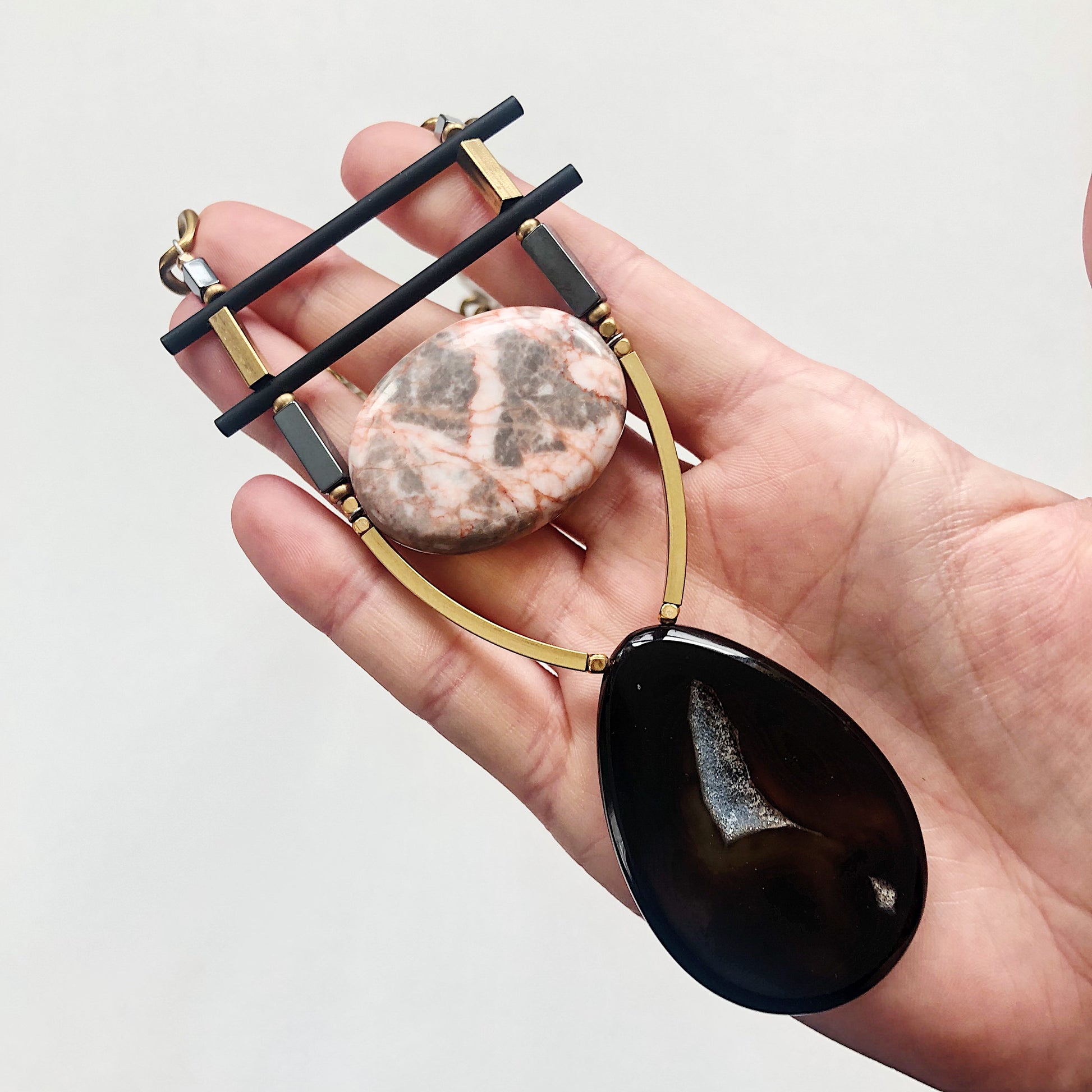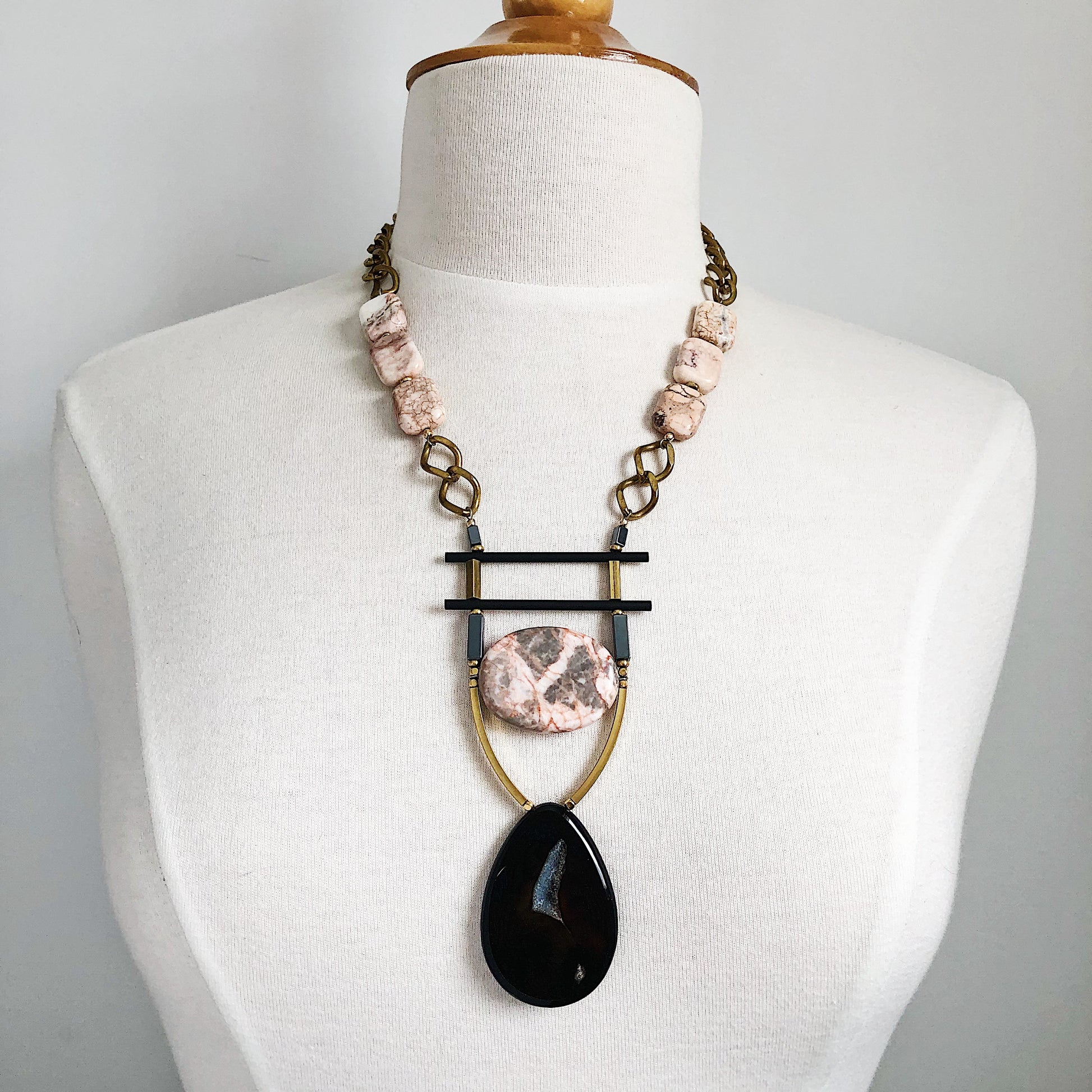 OOAK - Agate, Magnesite and Hematite Statement Necklace