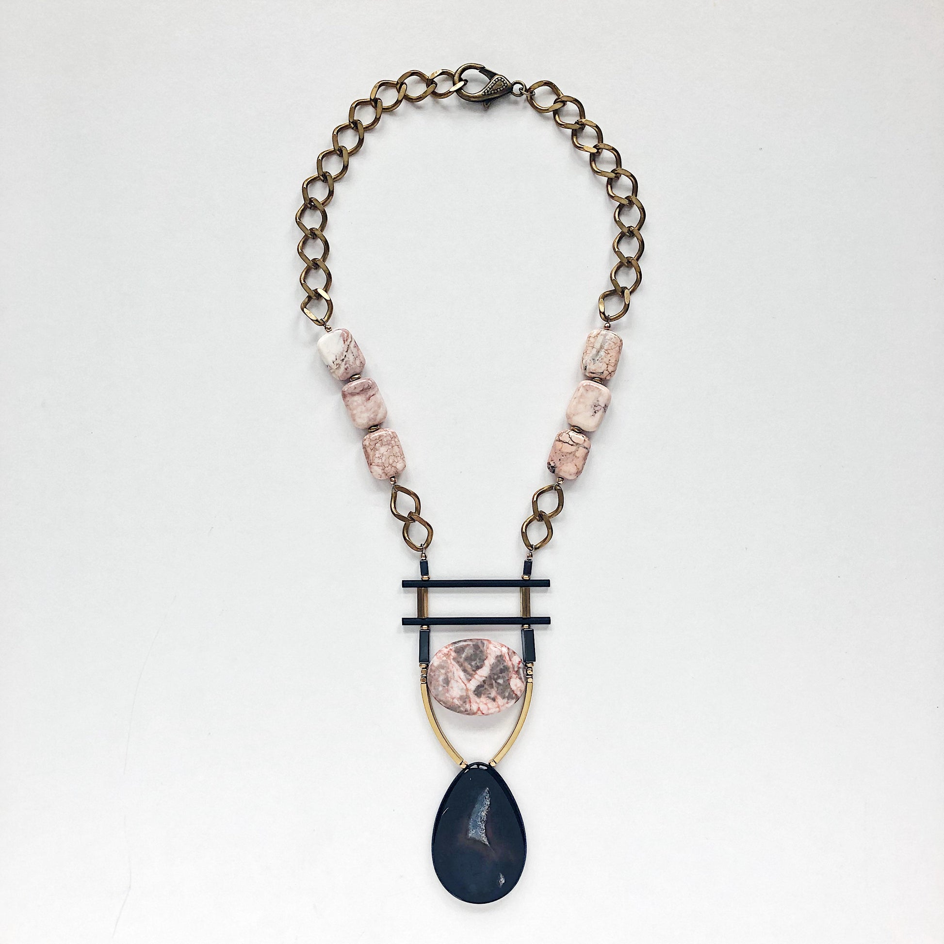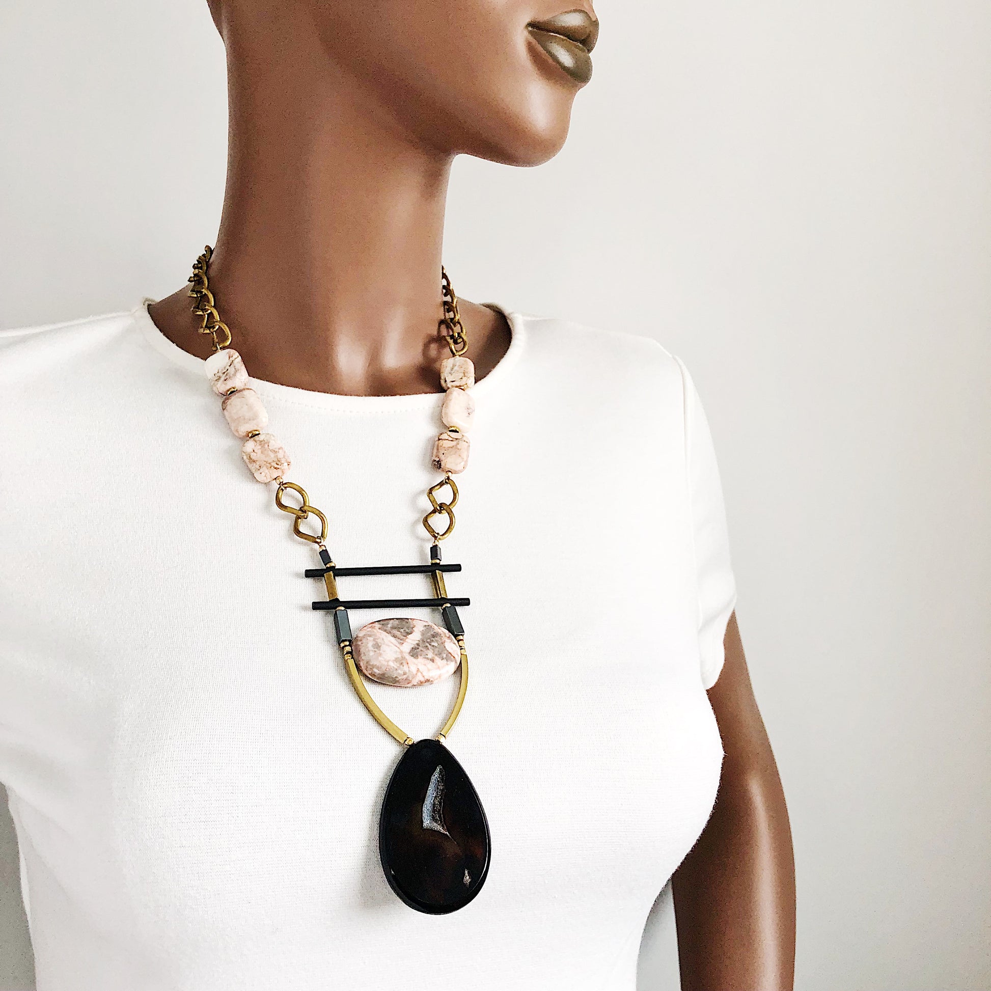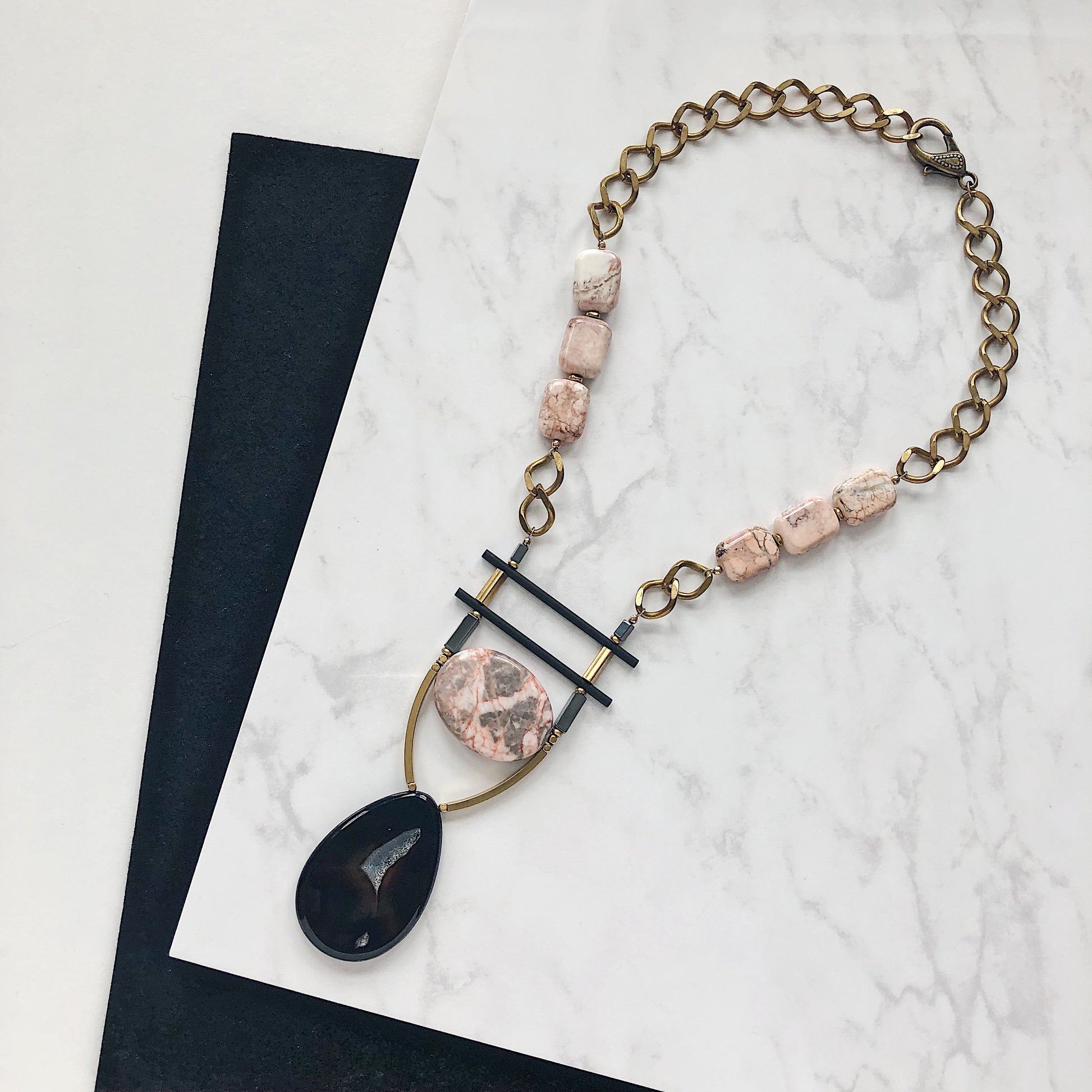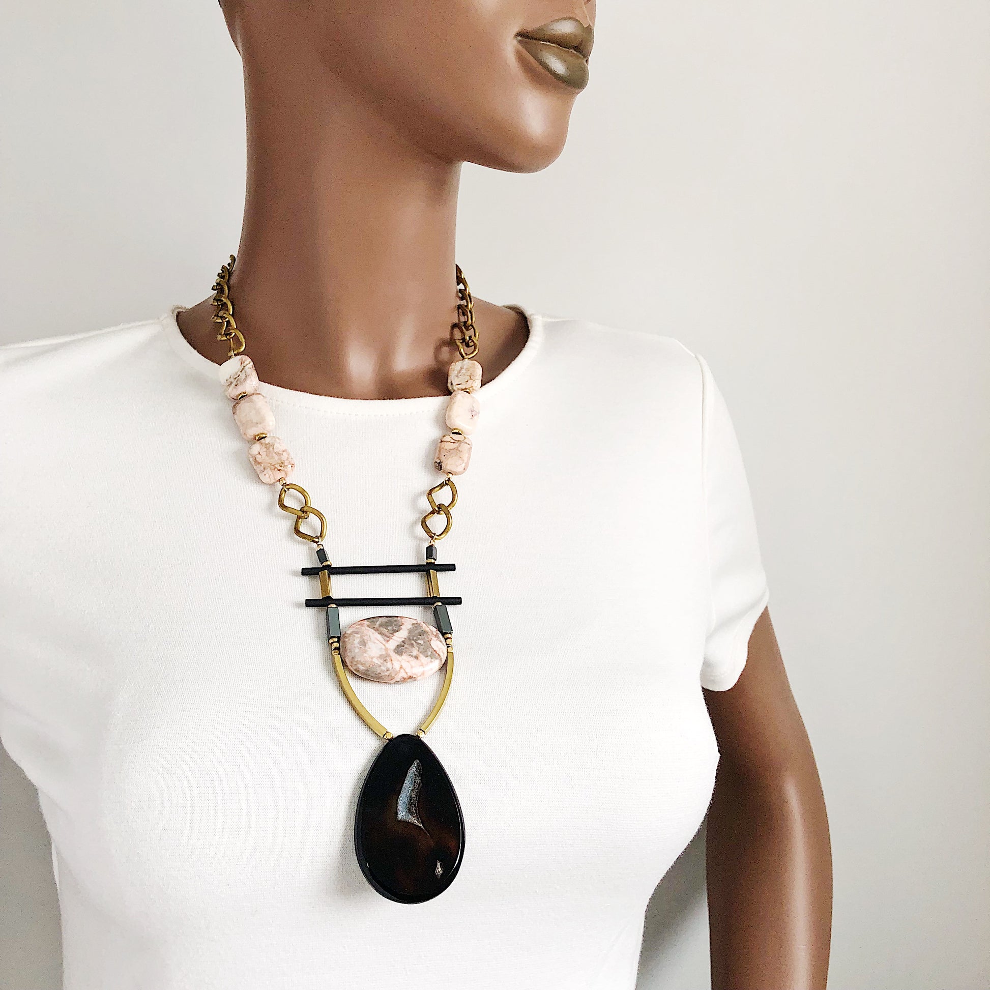 OOAK - Agate, Magnesite and Hematite Statement Necklace