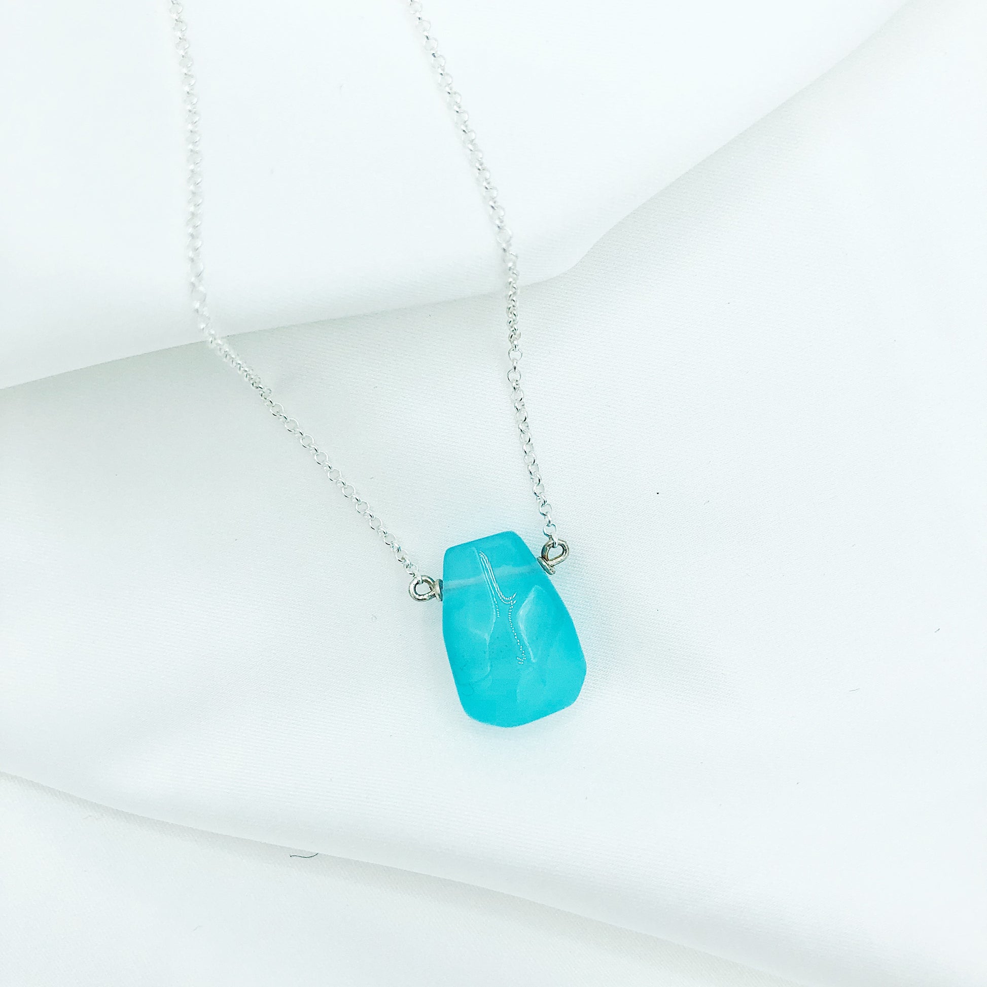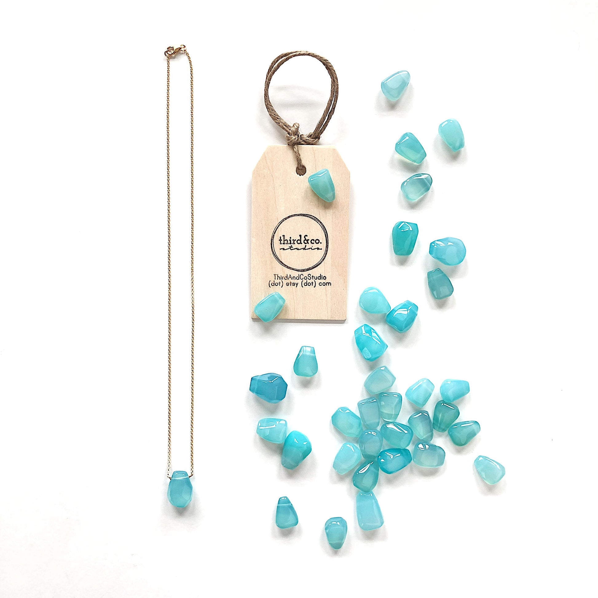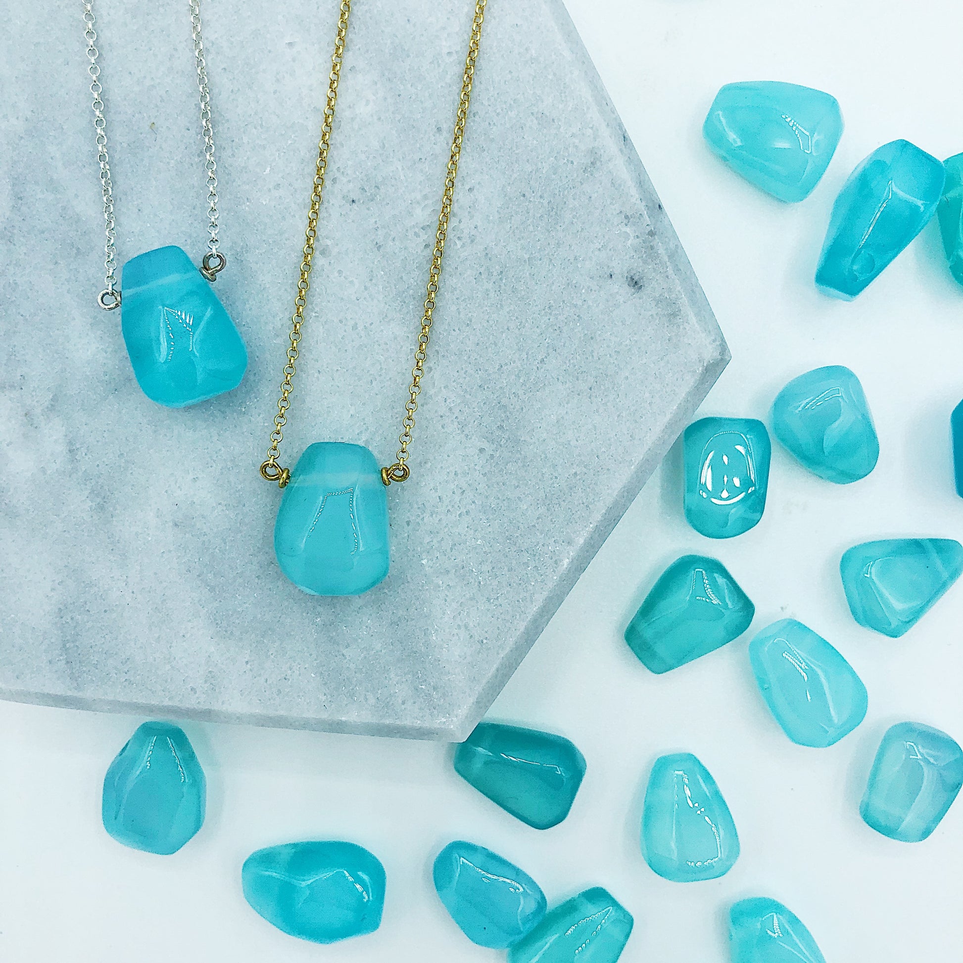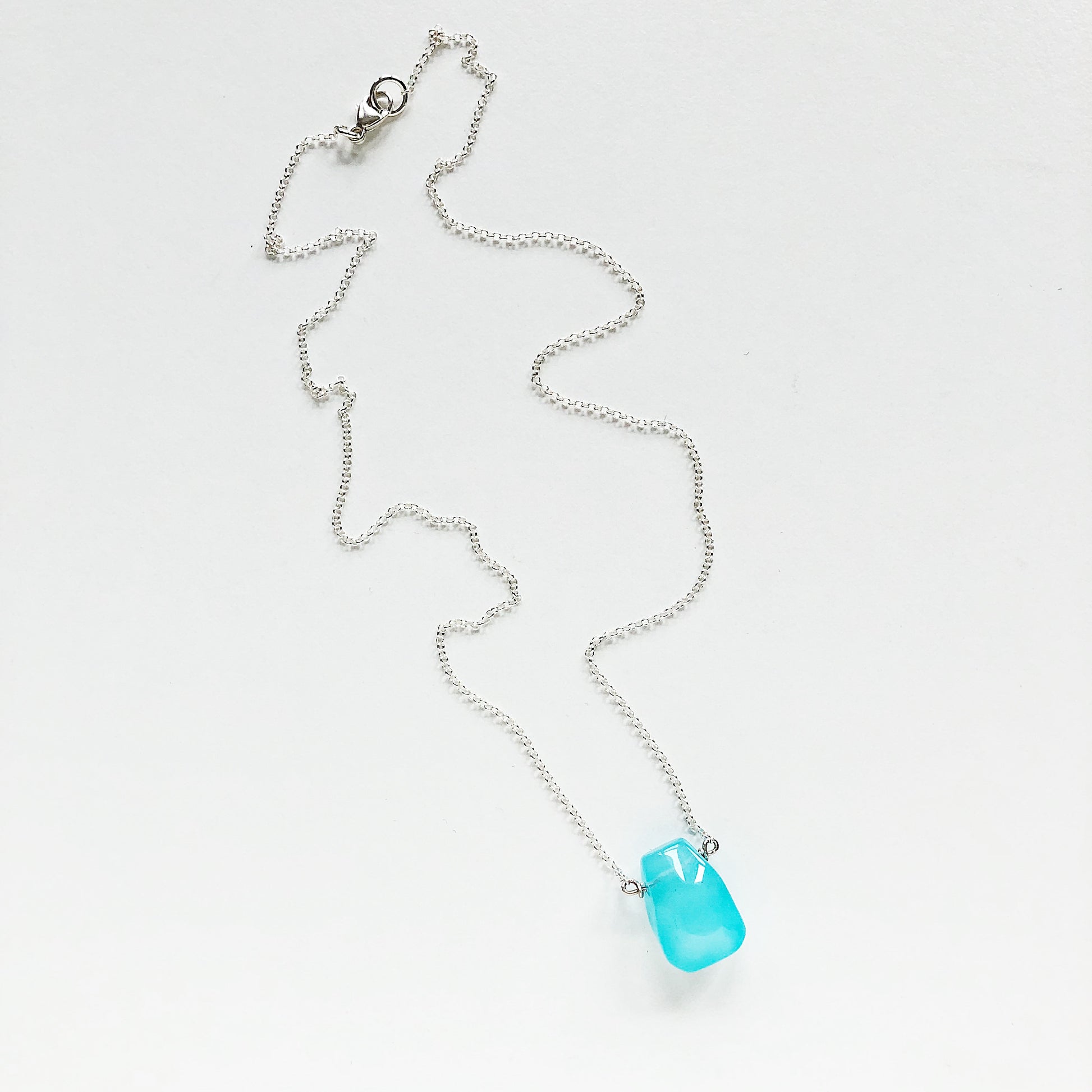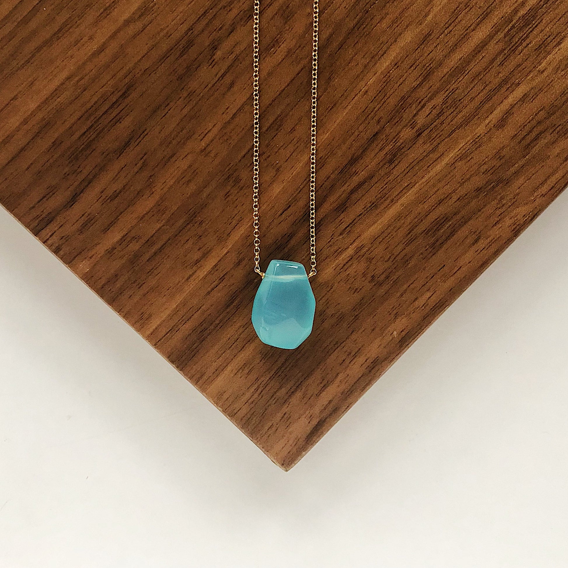 Semiprecious Stone Hand-Cut Teardrop Necklace with Bright Blue Chalcedony