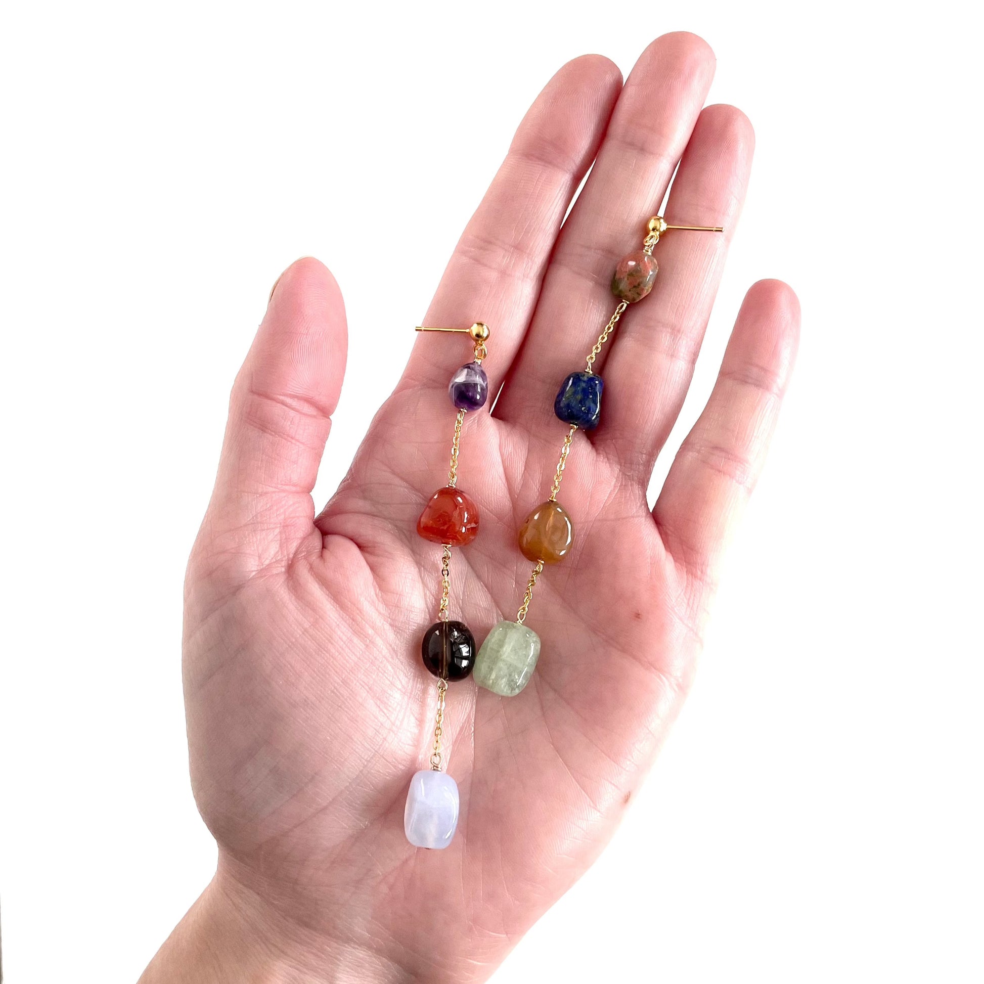 OOAK - Amethyst, Carnelian, Smokey Quartz, Chalcedony, Unakite, Lapis, Quartz, Aventurine, Gold Plated Chain and Vermeil Stud Earrings