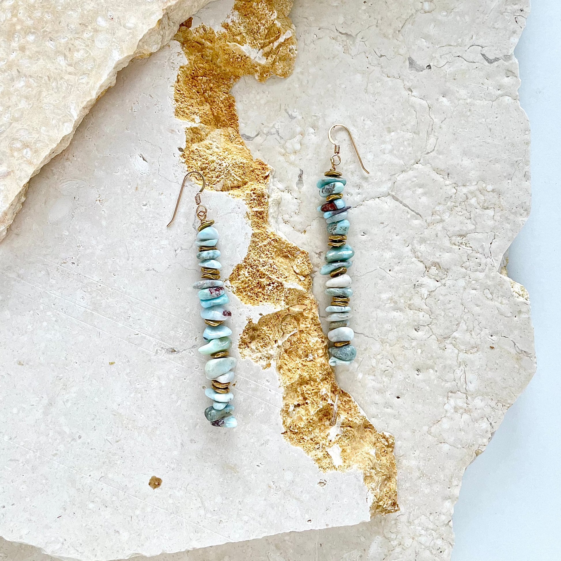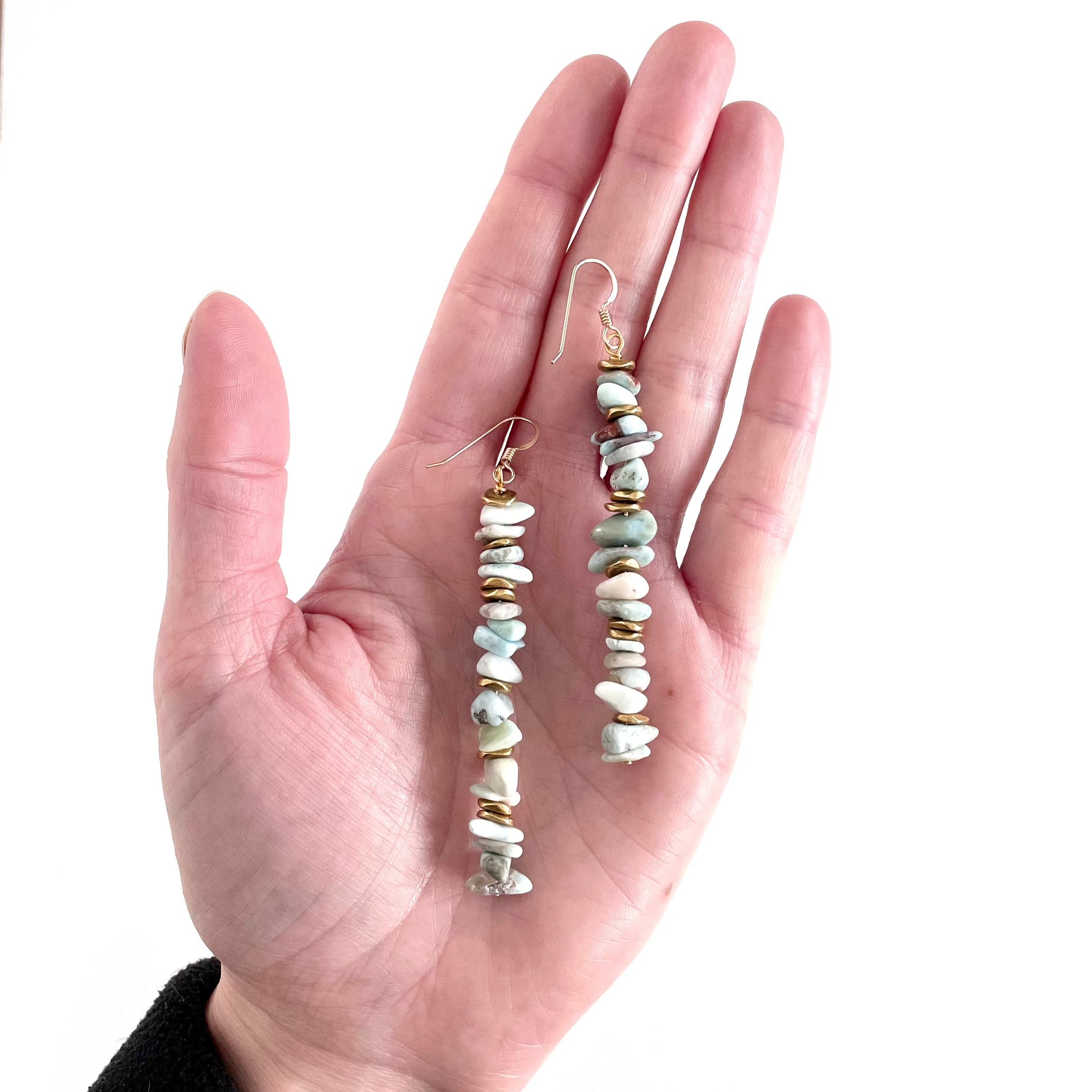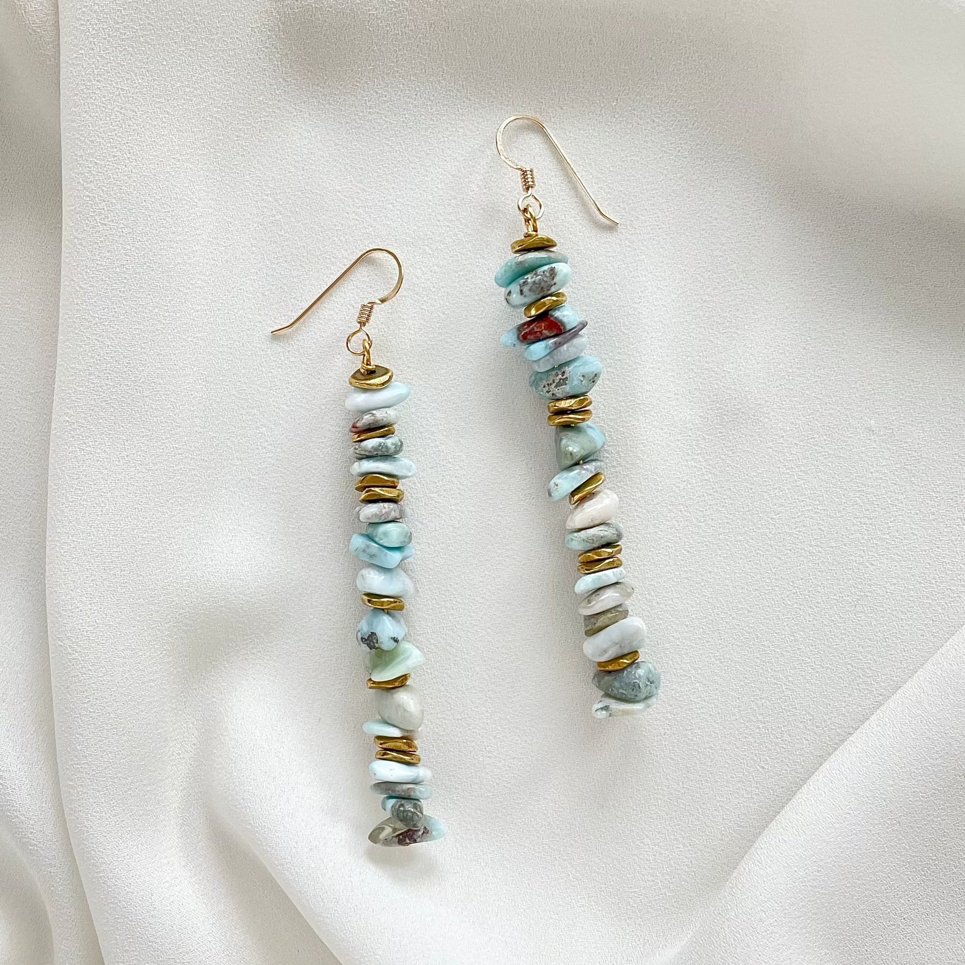 One of a Kind Statement Earrings with Aquamarine and 14K Gold Fill Ear Wires