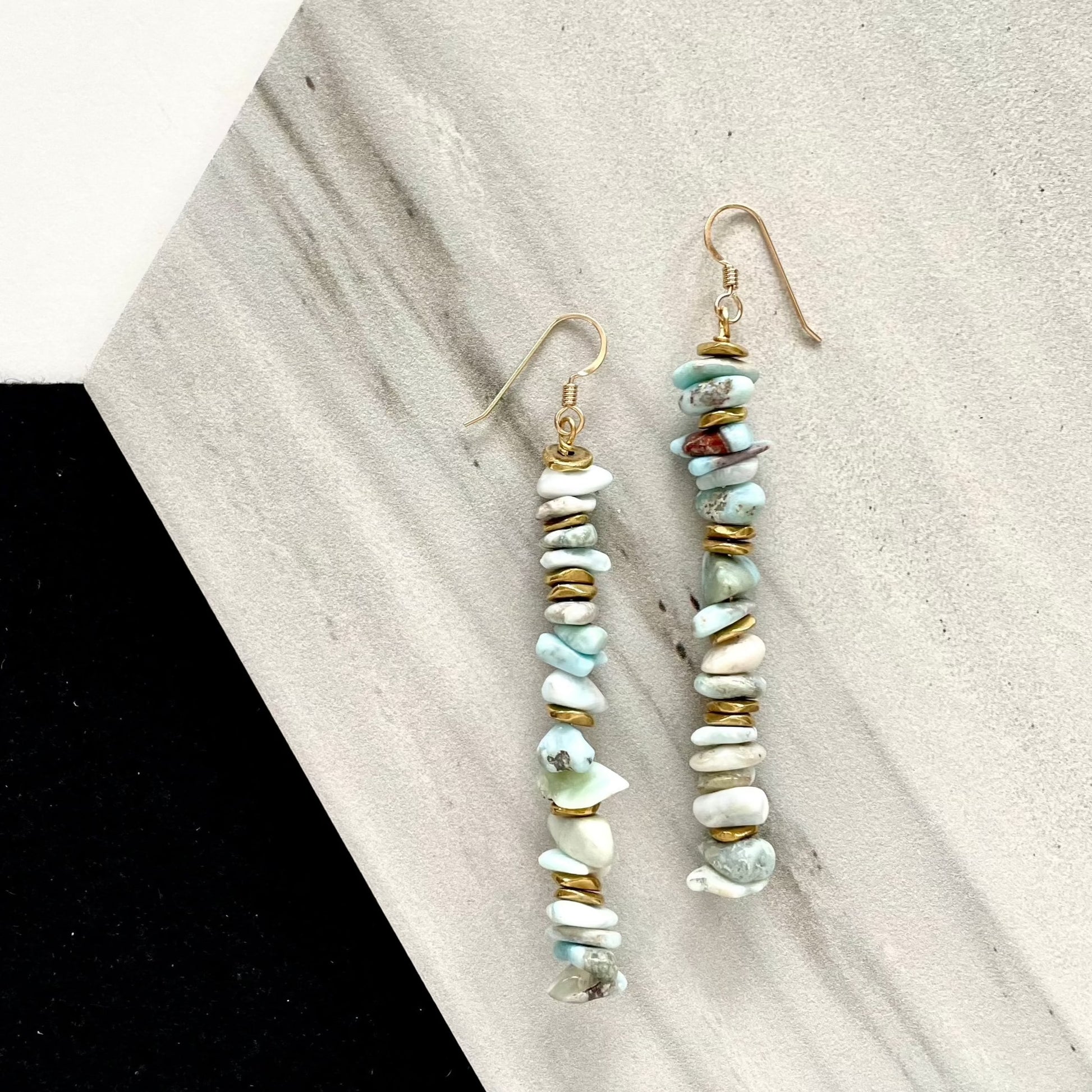 OOAK - Aquamarine, Brass Accents and 14K Gold Fill Earrings