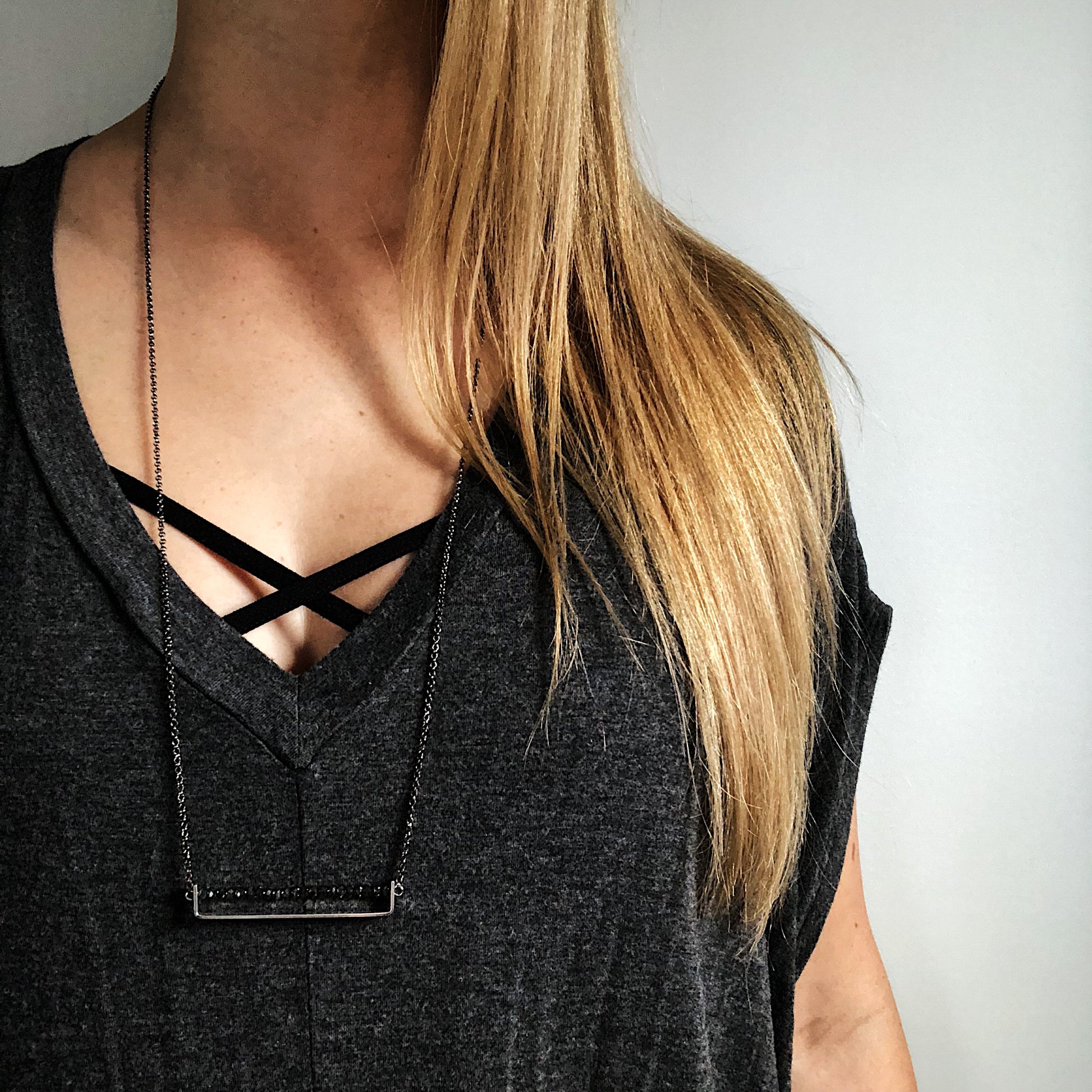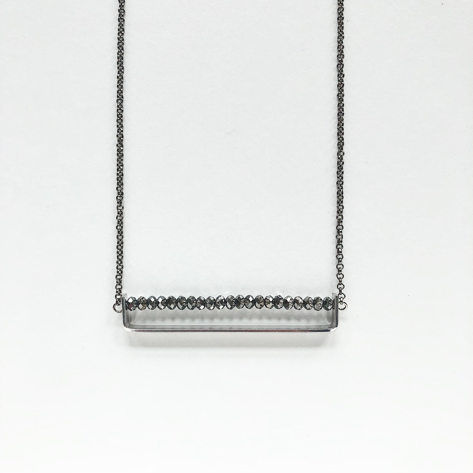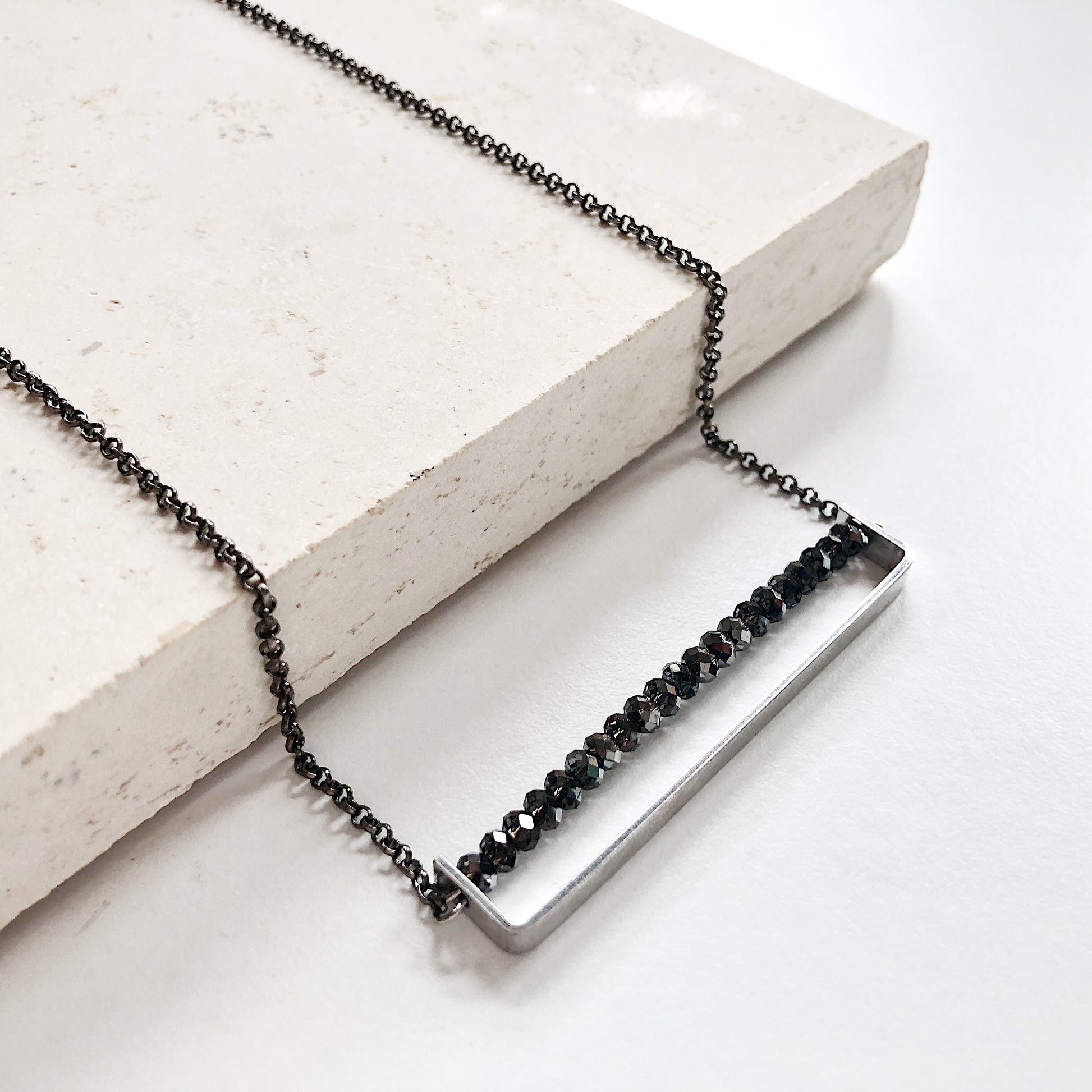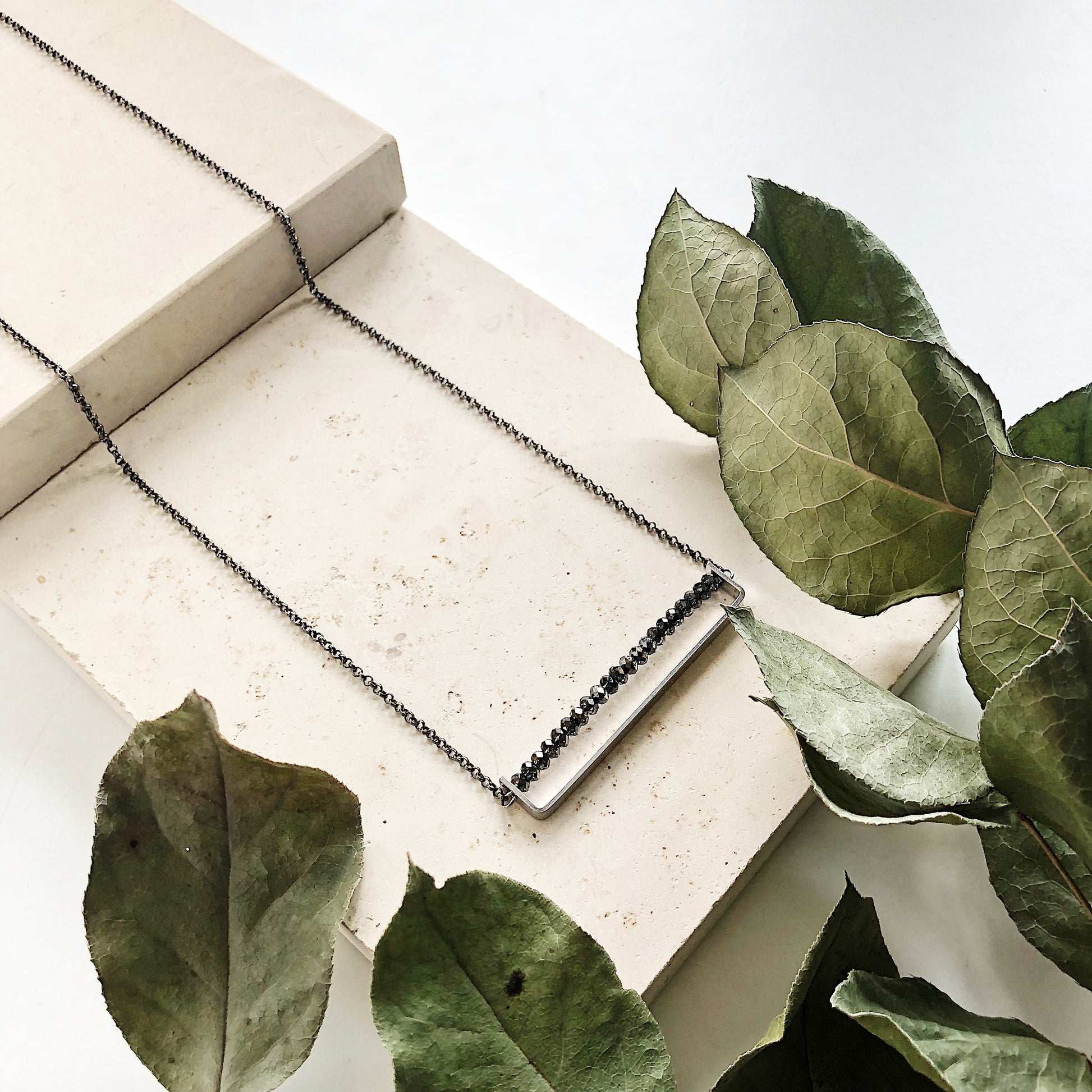 The Faceted Crystal Minimalist Necklace: small faceted crystal rondelles met with a silver plated open rectangular shape and nickel-free gunmetal chain create this simple and versatile necklace with just the right amount of sparkle.