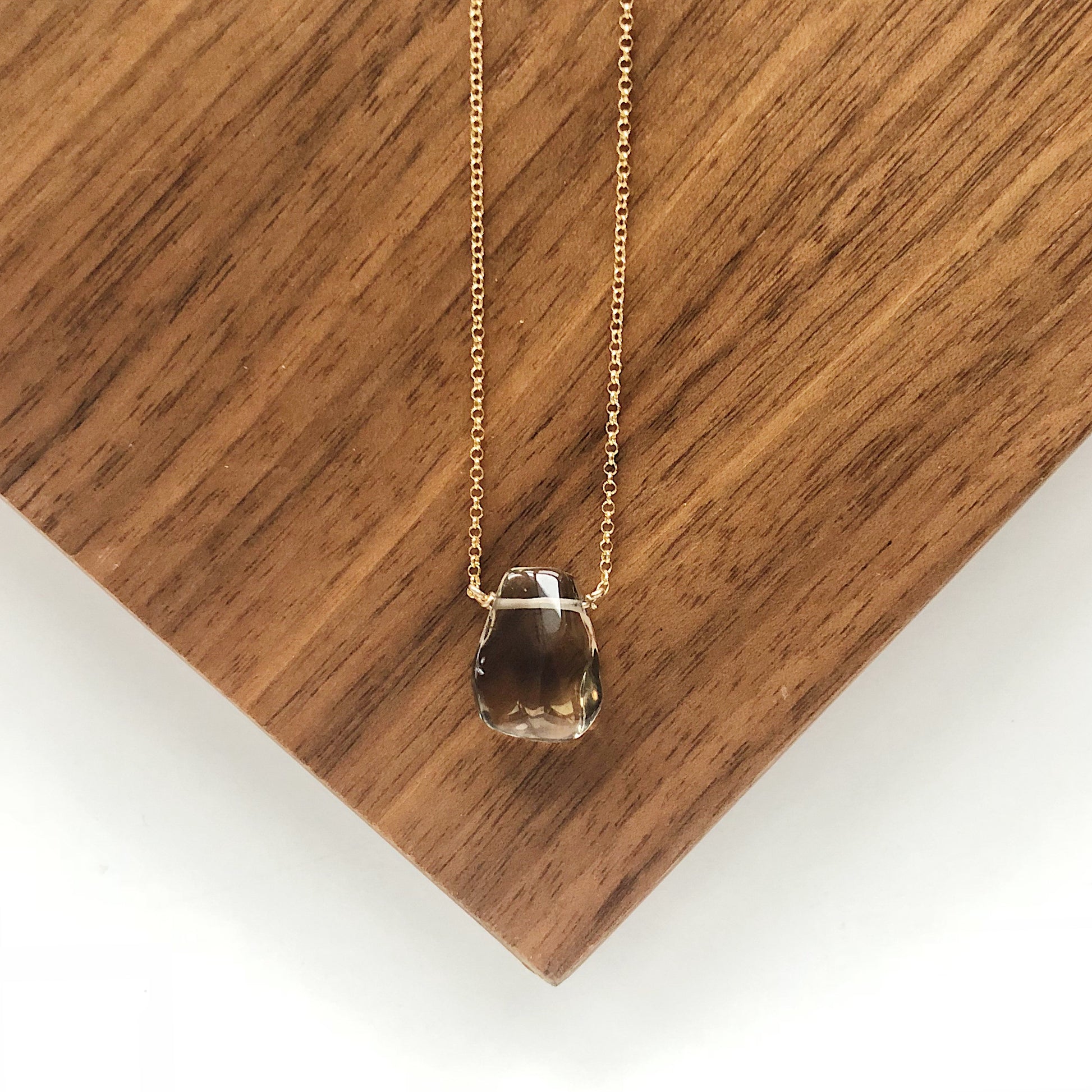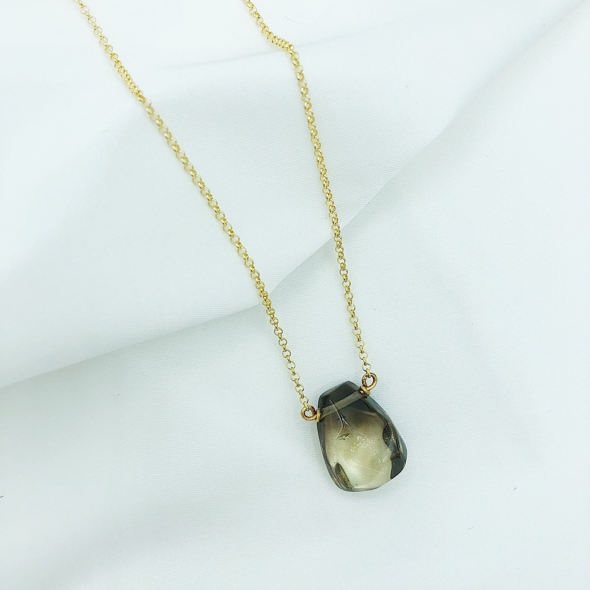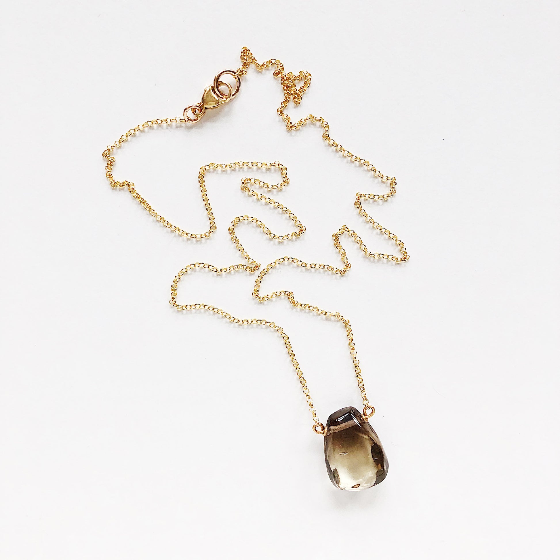 This simple irregular-shaped teardrop Necklace with grayed-yellow Smokey Lemon Topaz teardrop is easy to throw on and go! Its minimalist style will have you reaching for it again and again.