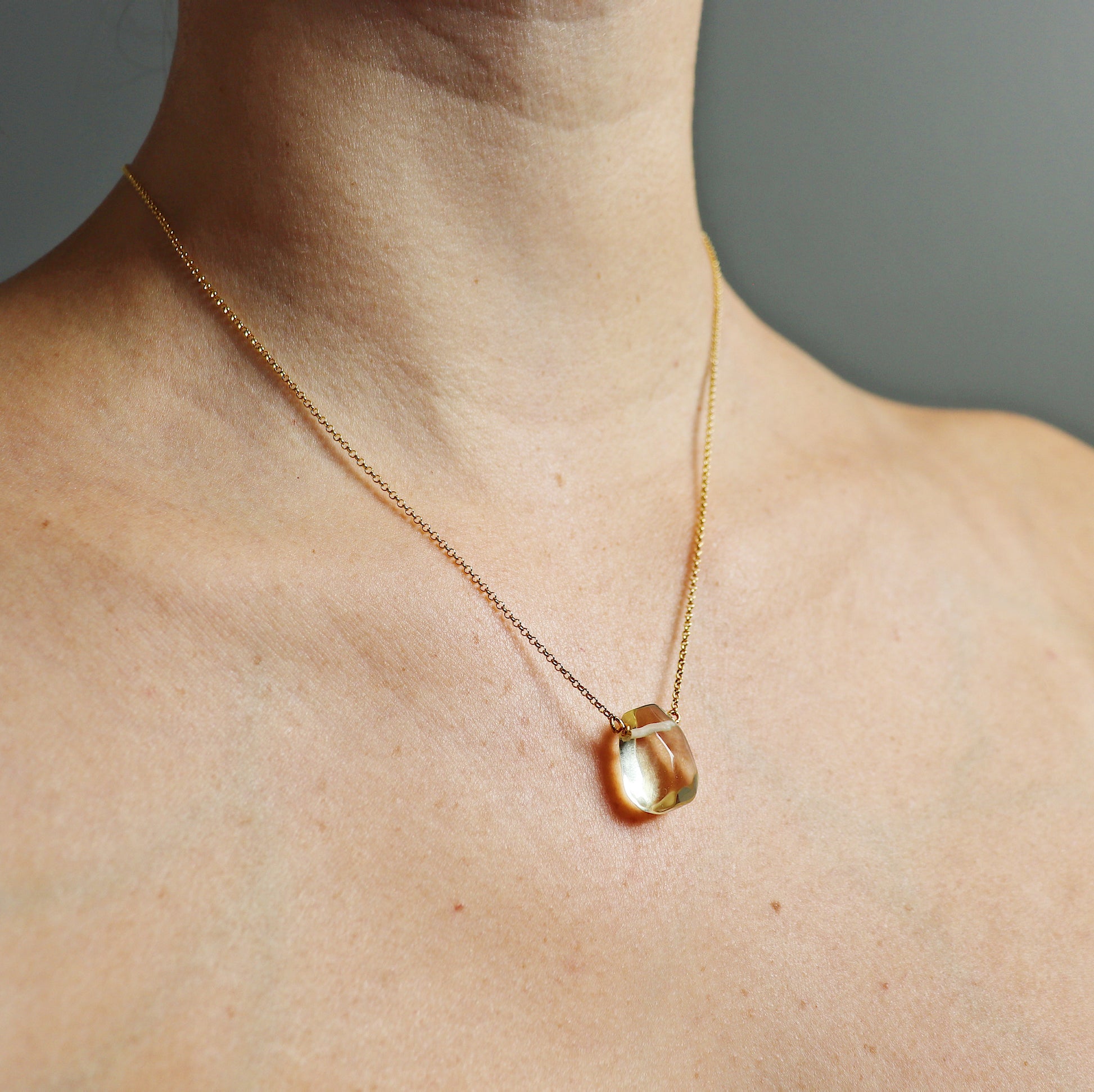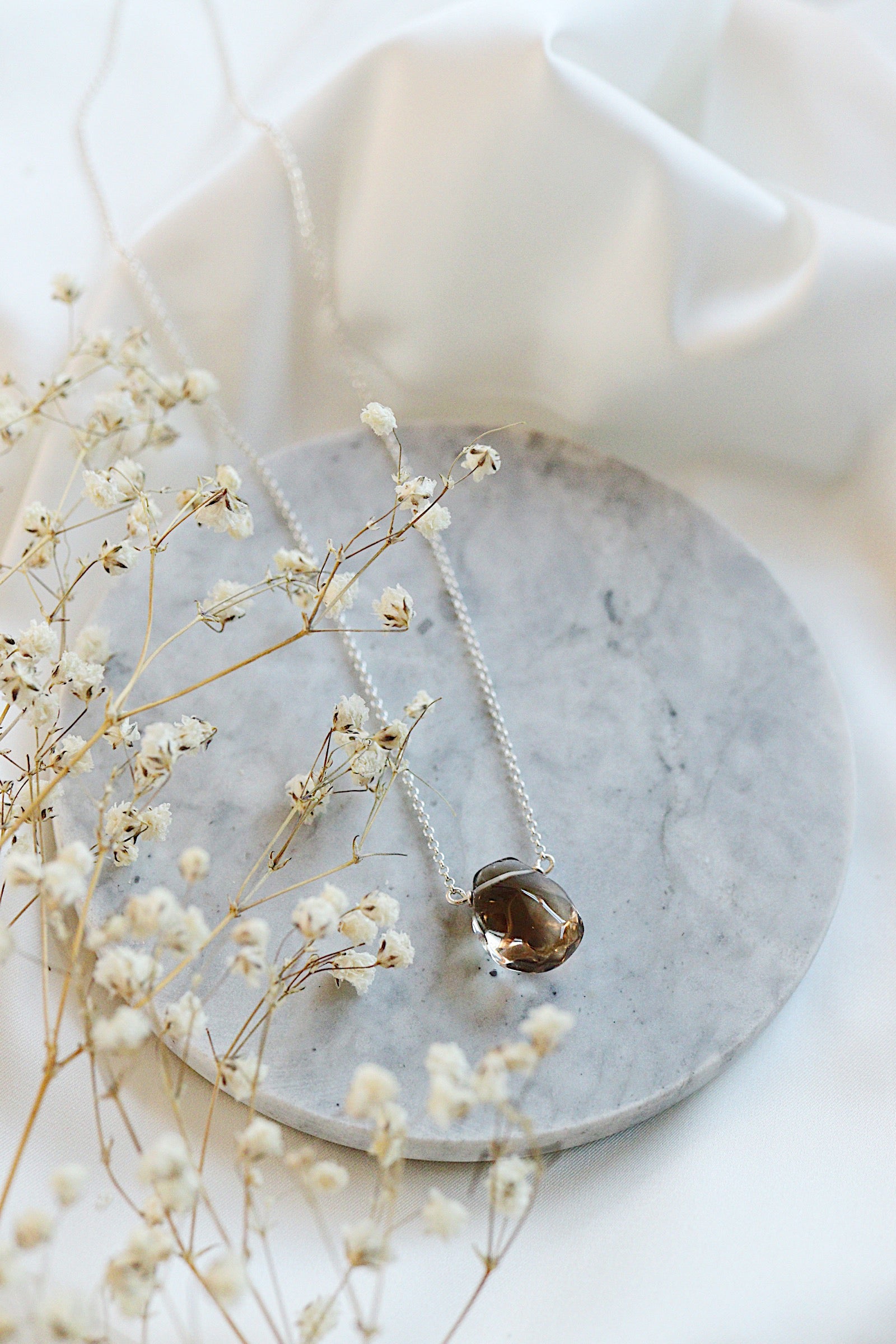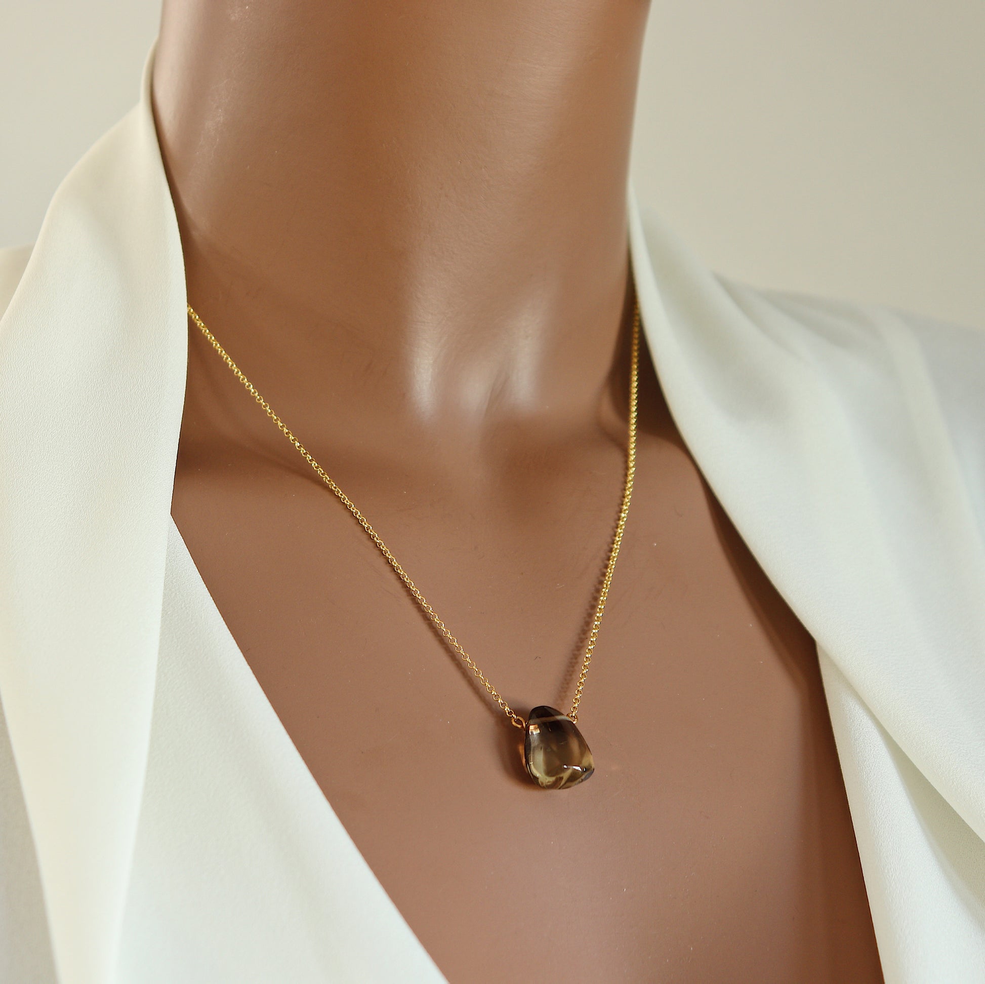 This simple irregular-shaped teardrop Necklace with grayed-yellow Smokey Lemon Topaz teardrop is easy to throw on and go! Its minimalist style will have you reaching for it again and again.