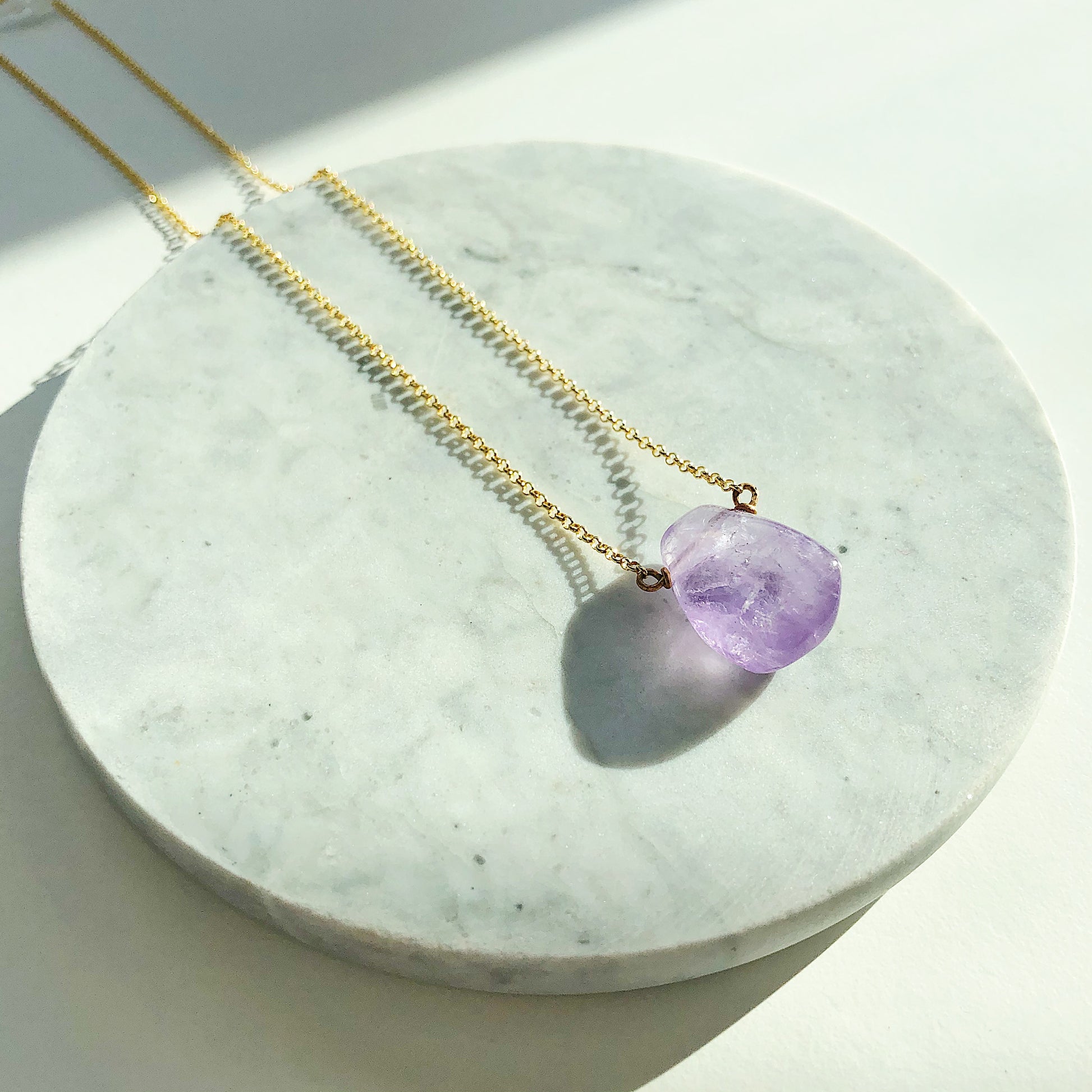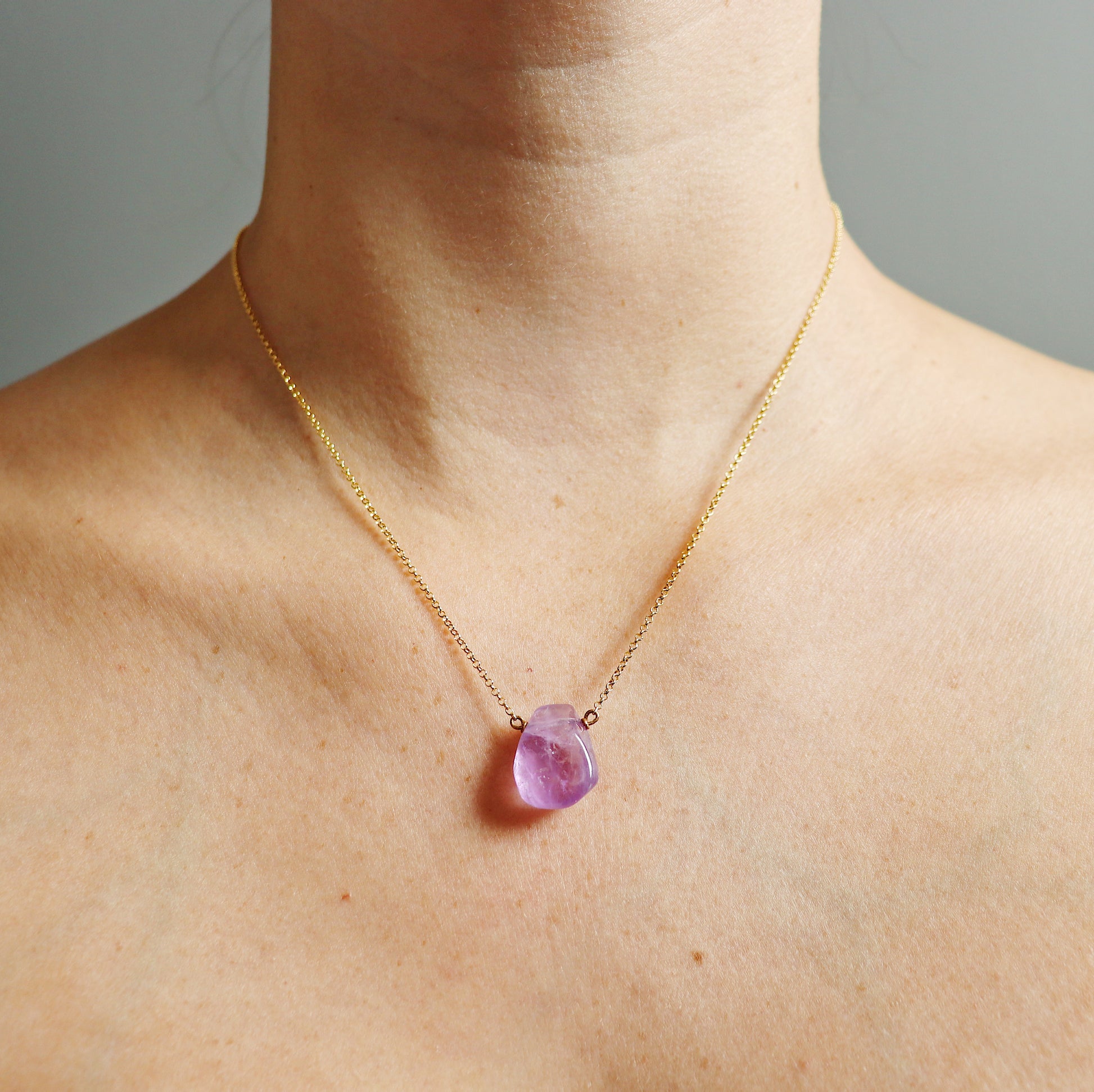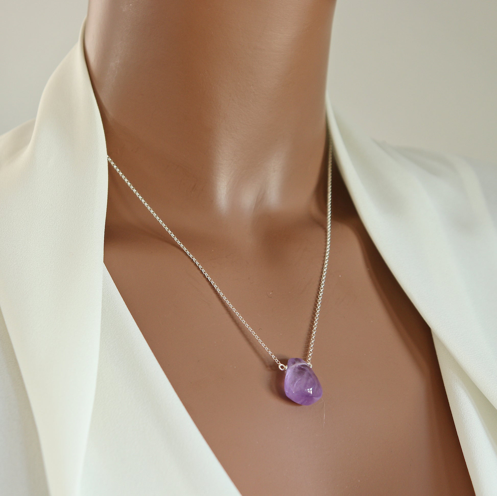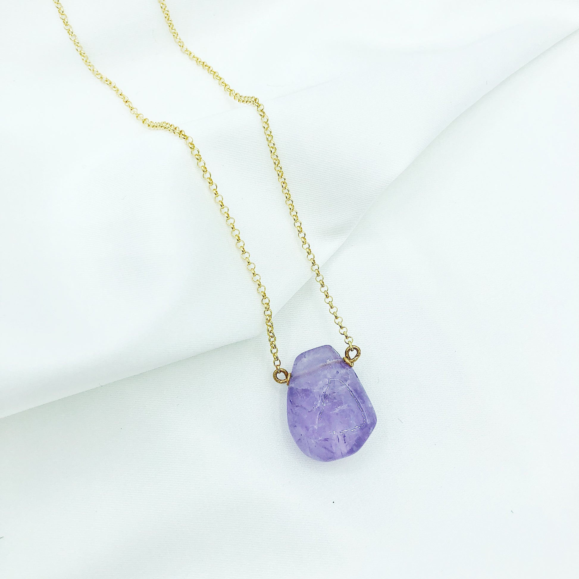 This simple irregular-shaped teardrop Necklace with light purple Amethyst teardrop is easy to throw on and go! Its minimalist style will have you reaching for it again and again.