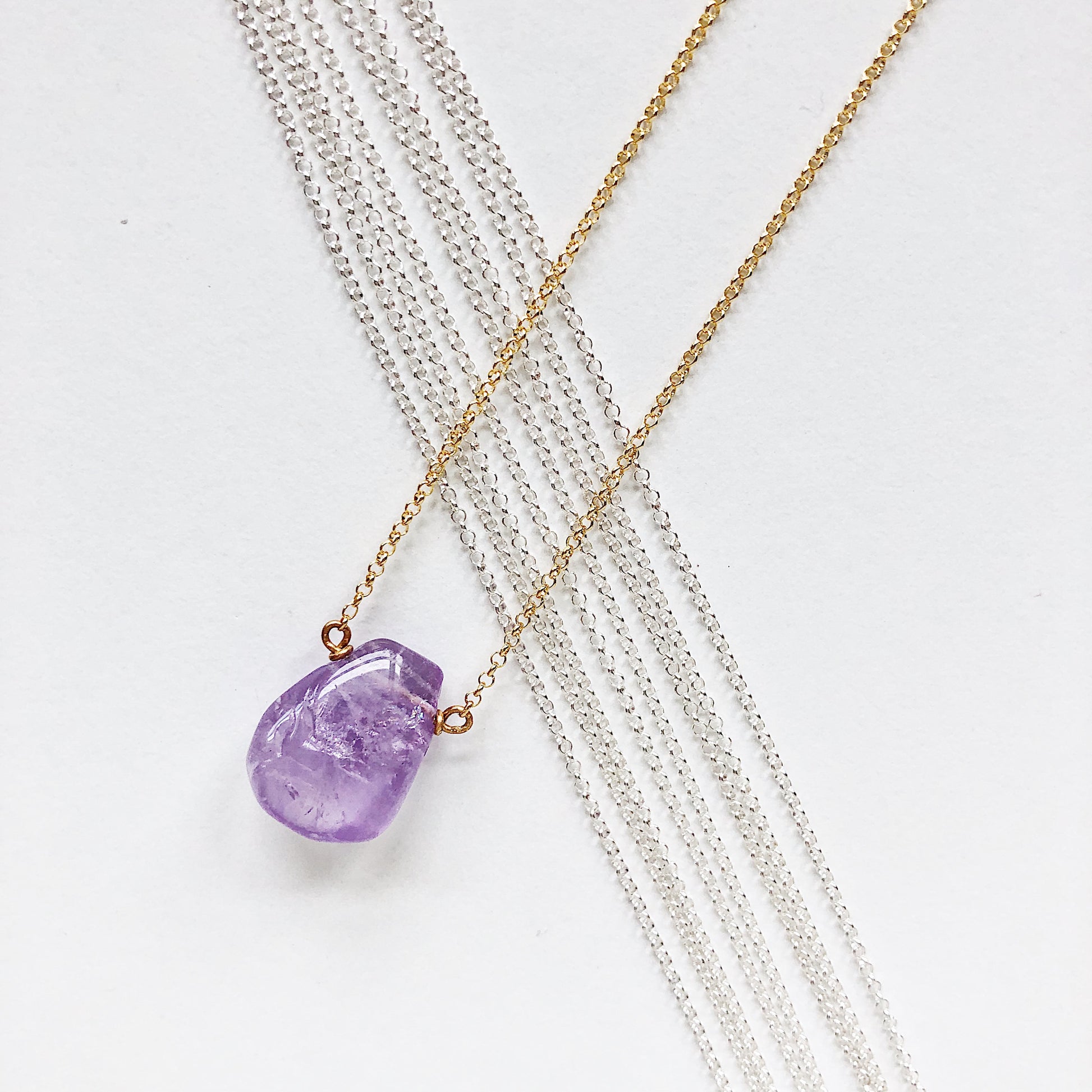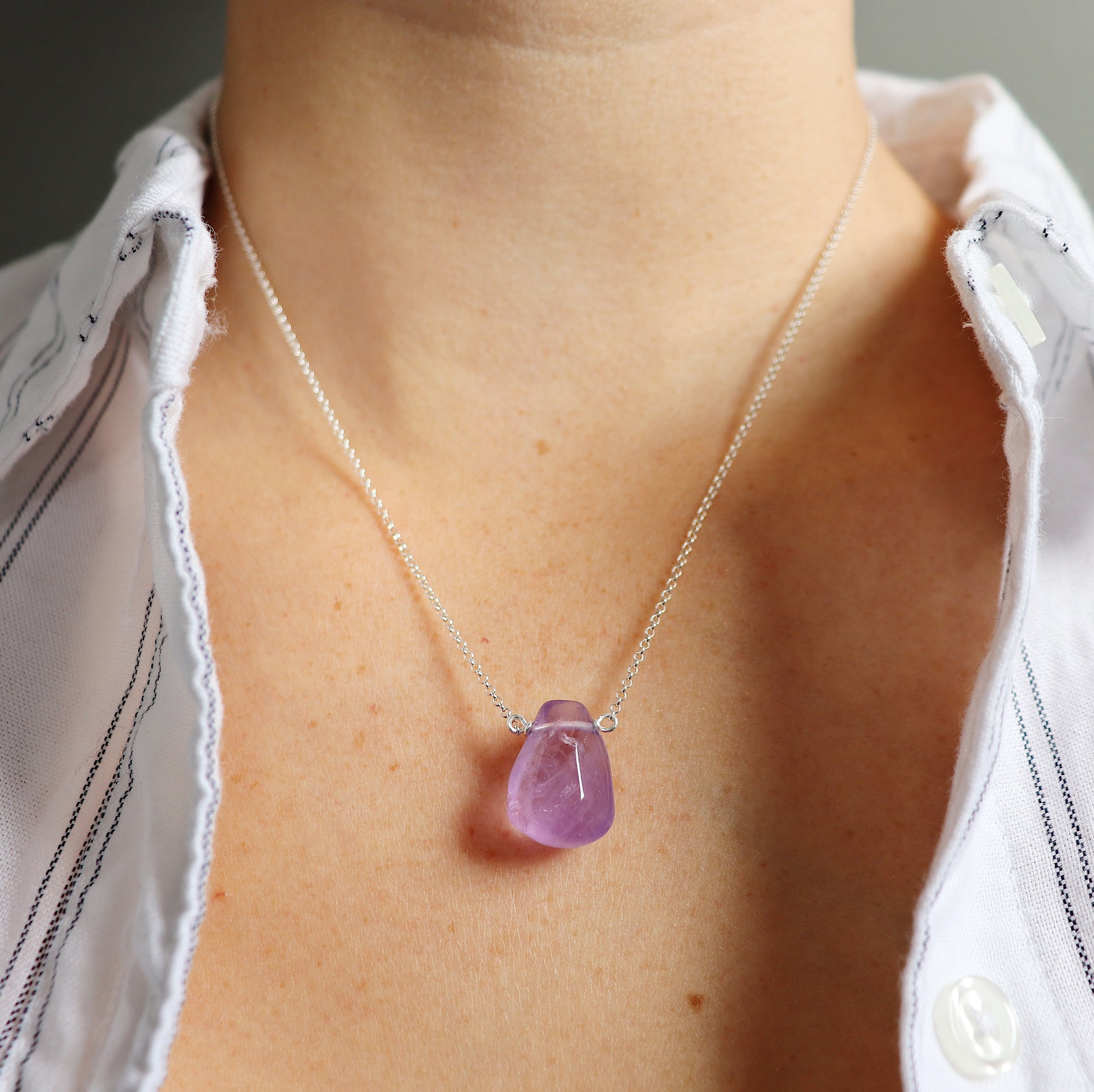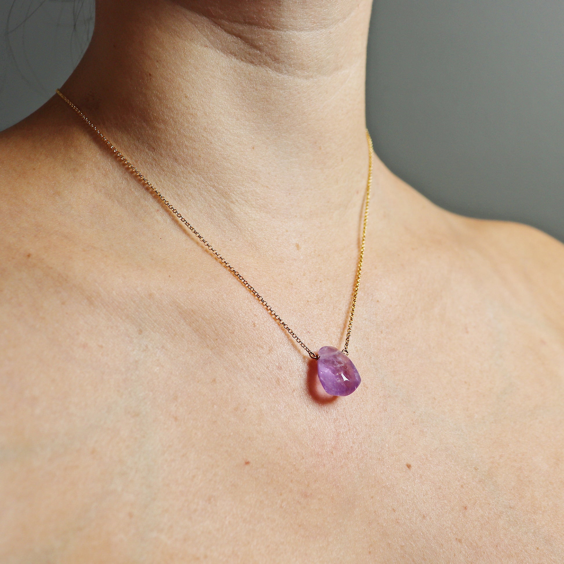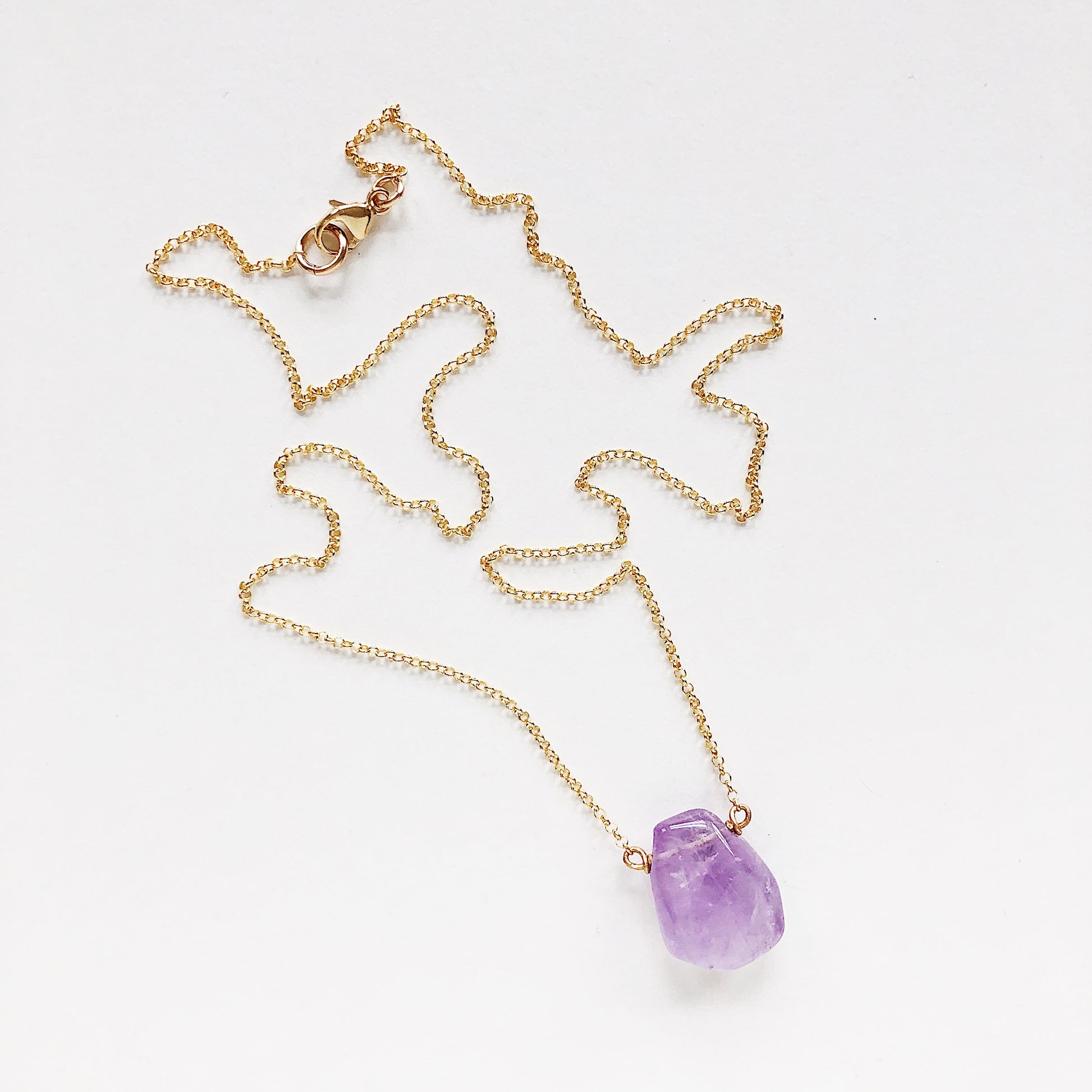 This simple irregular-shaped teardrop Necklace with light purple Amethyst teardrop is easy to throw on and go! Its minimalist style will have you reaching for it again and again.