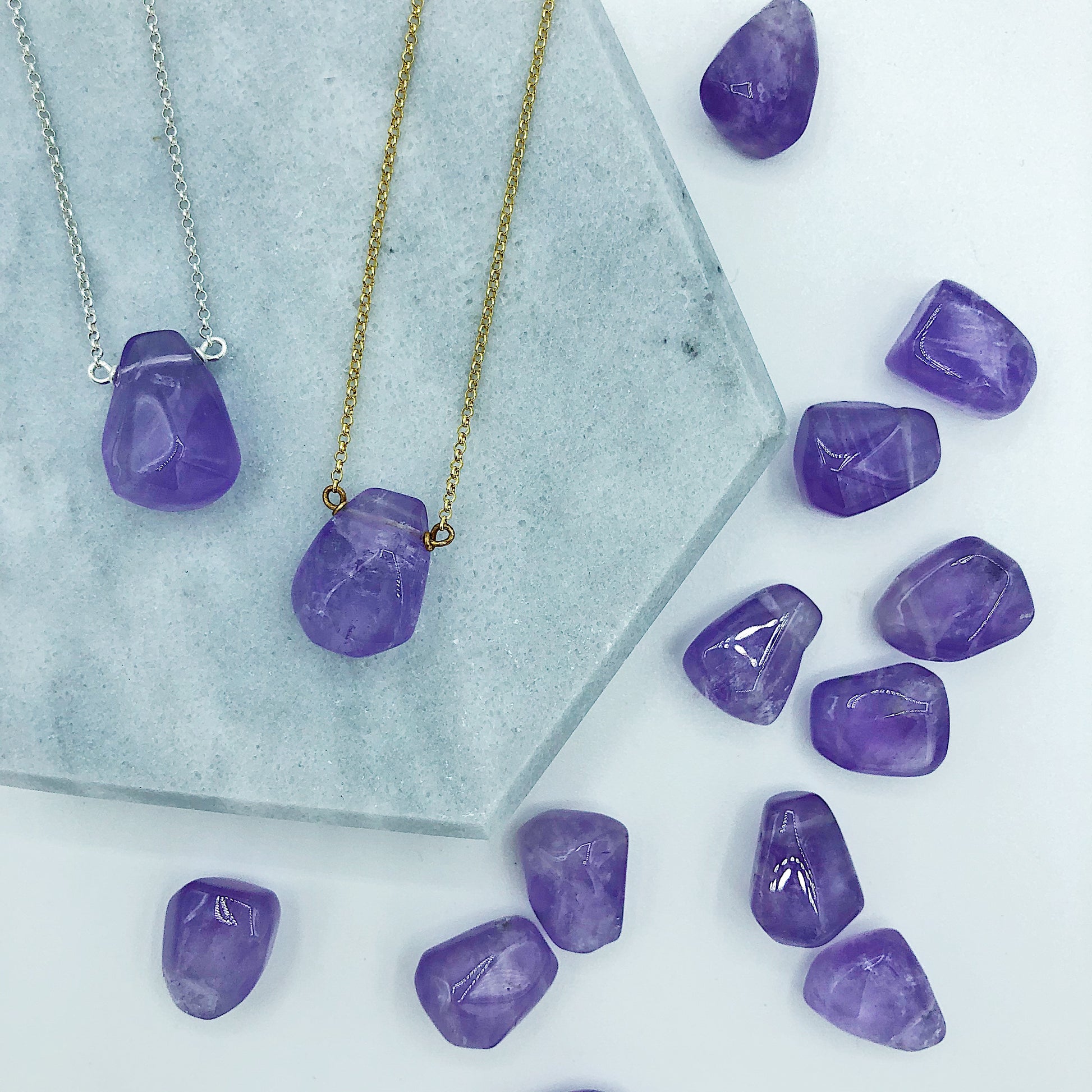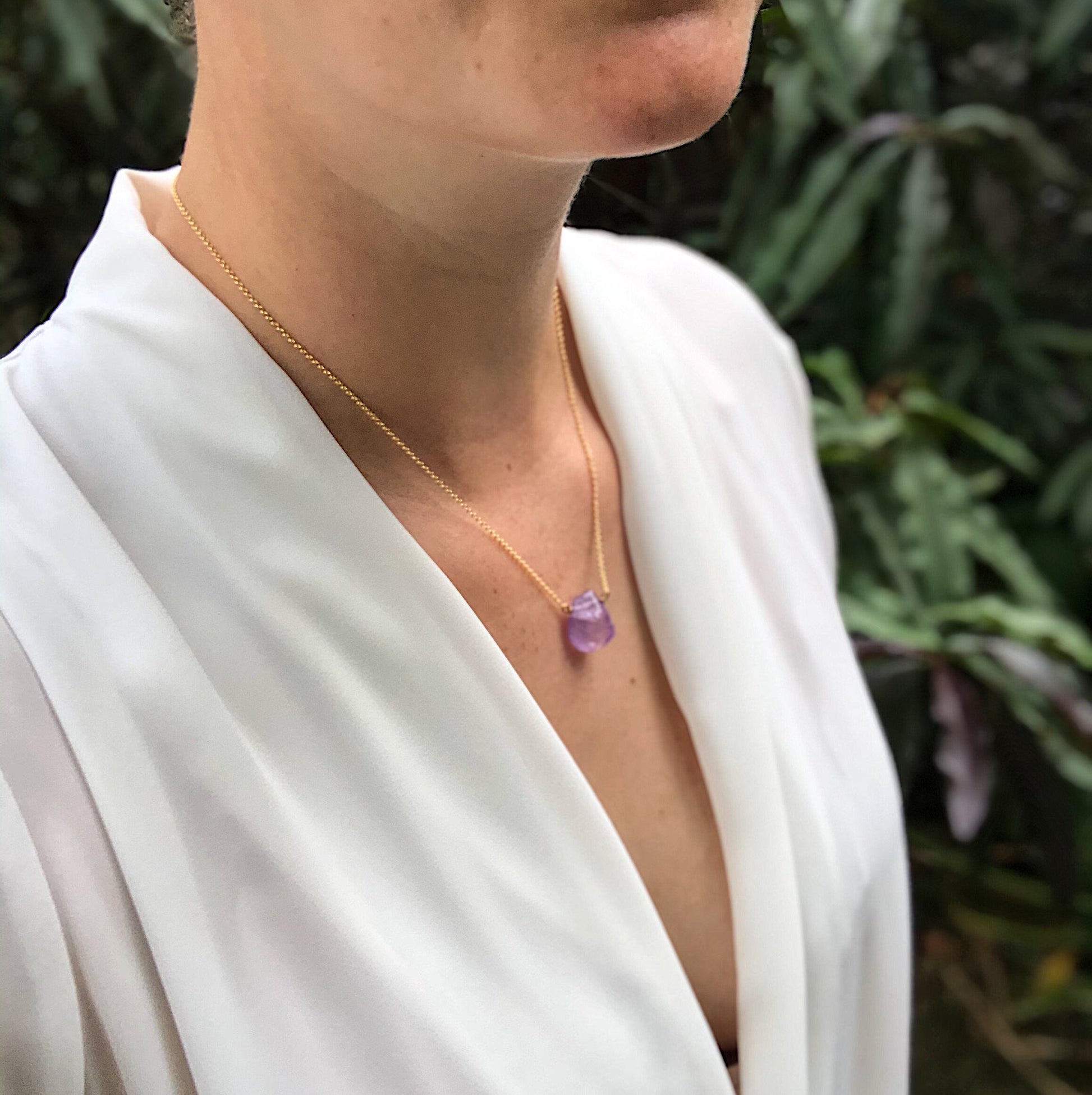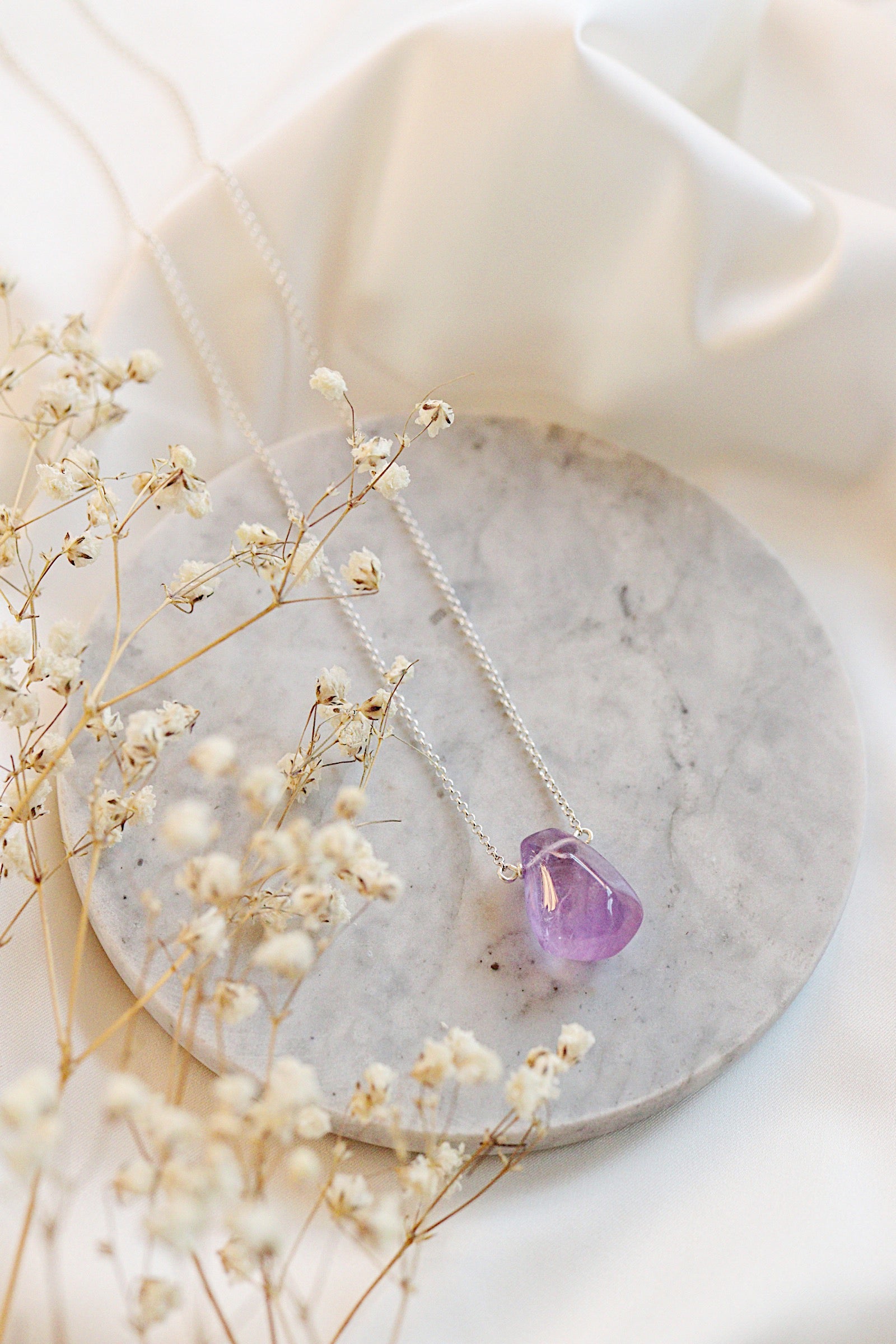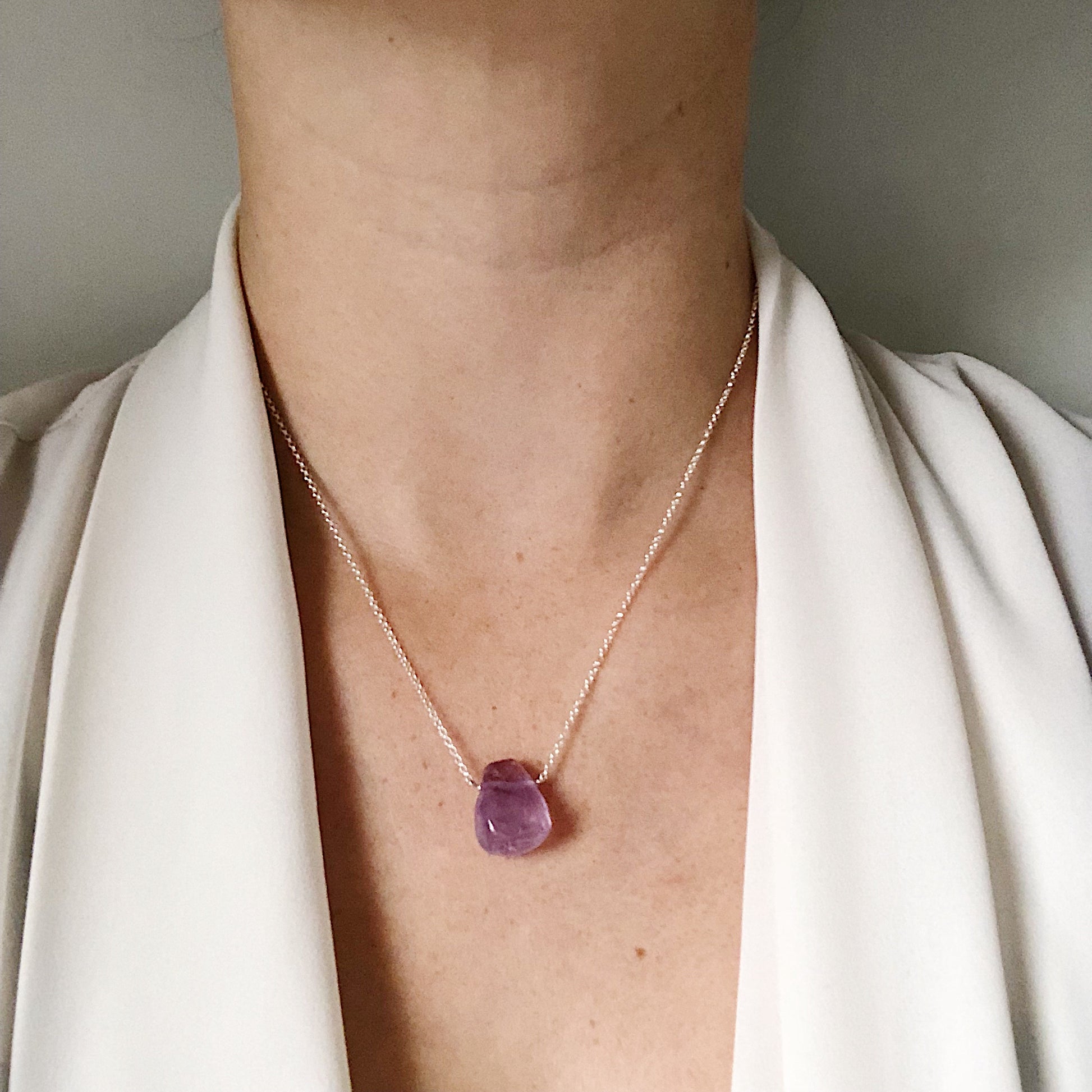 This simple irregular-shaped teardrop Necklace with light purple Amethyst teardrop is easy to throw on and go! Its minimalist style will have you reaching for it again and again.