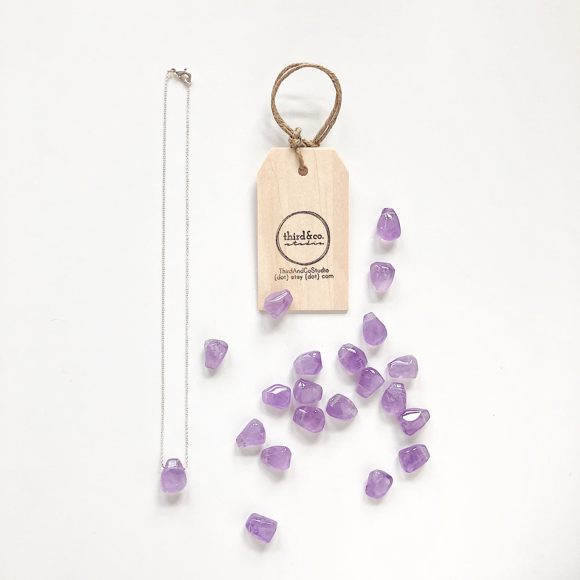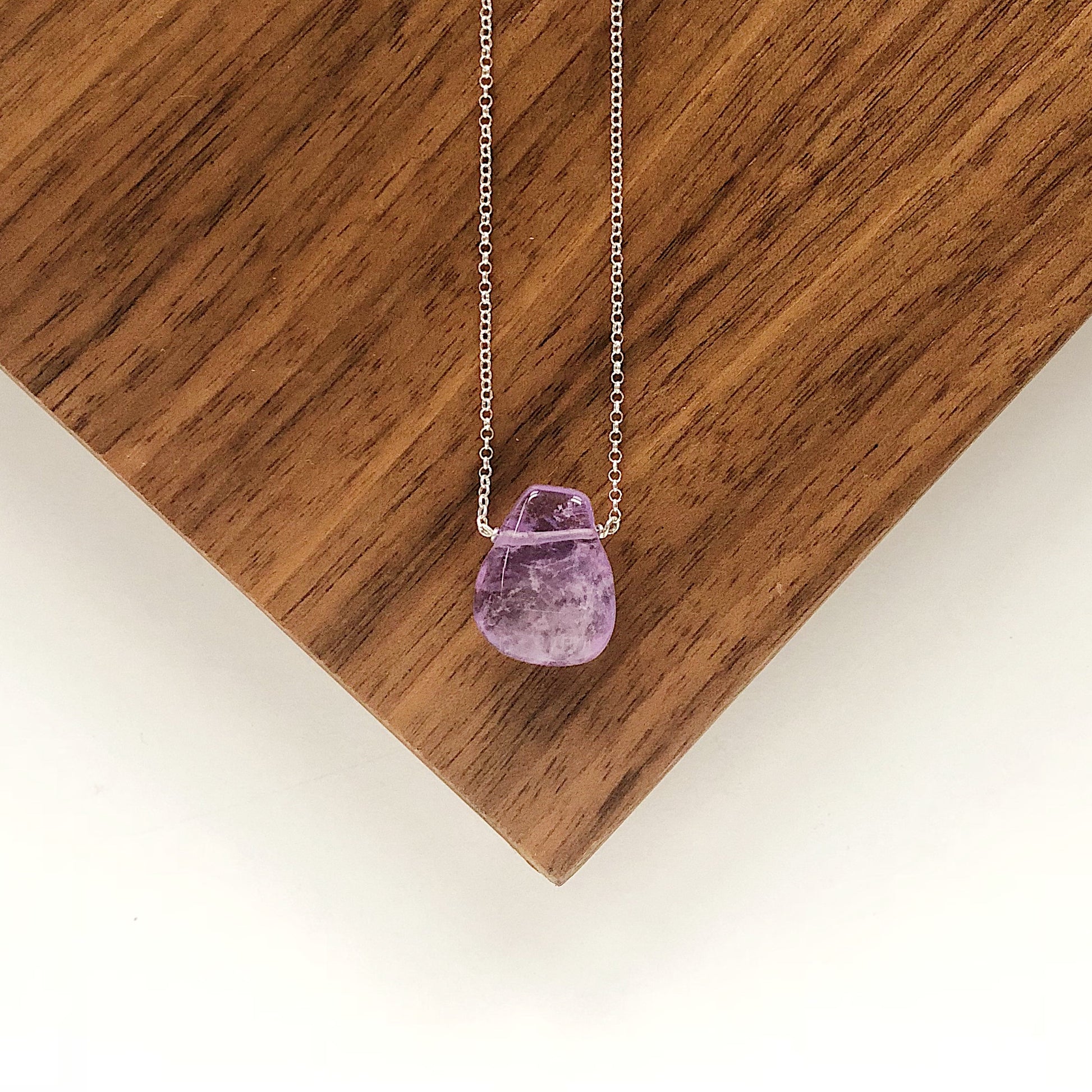 Semiprecious Stone Hand-Cut Teardrop Necklace with Light Purple Amethyst