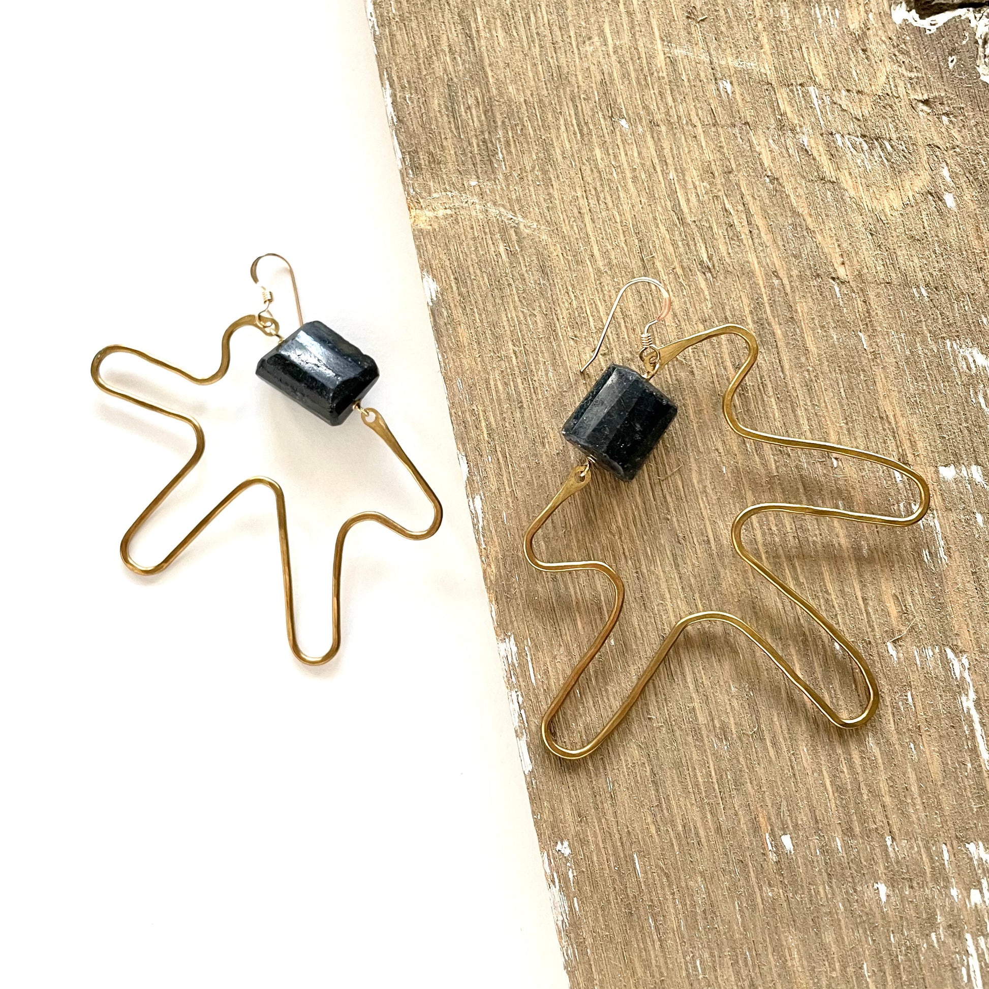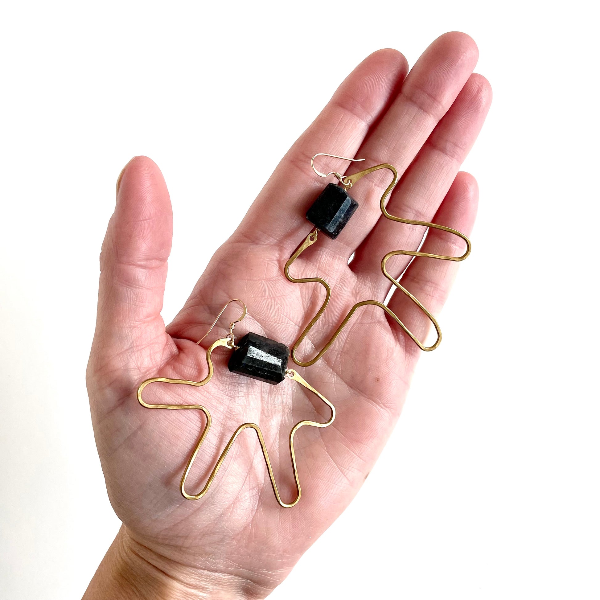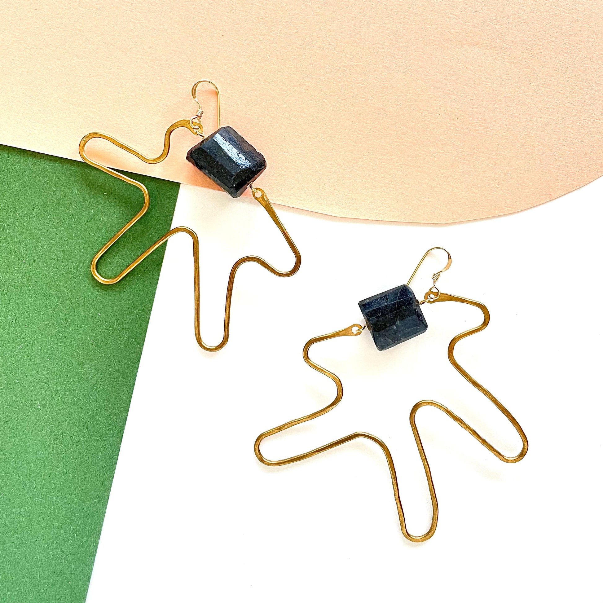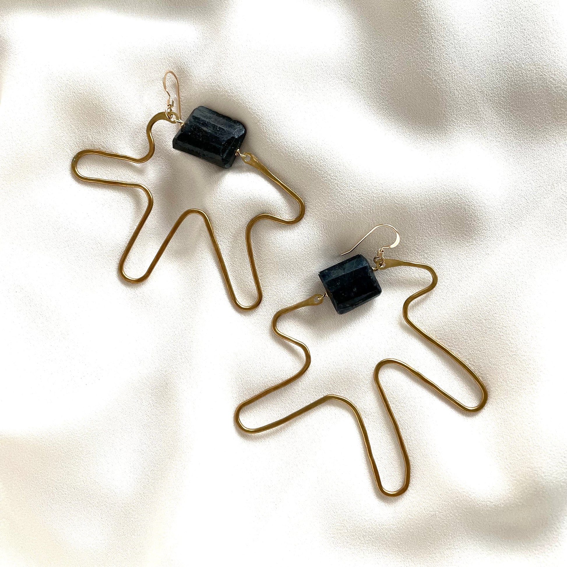 One of a Kind Statement Earrings with Semiprecious Stones, Brass and 14K Gold Fill Ear Wires