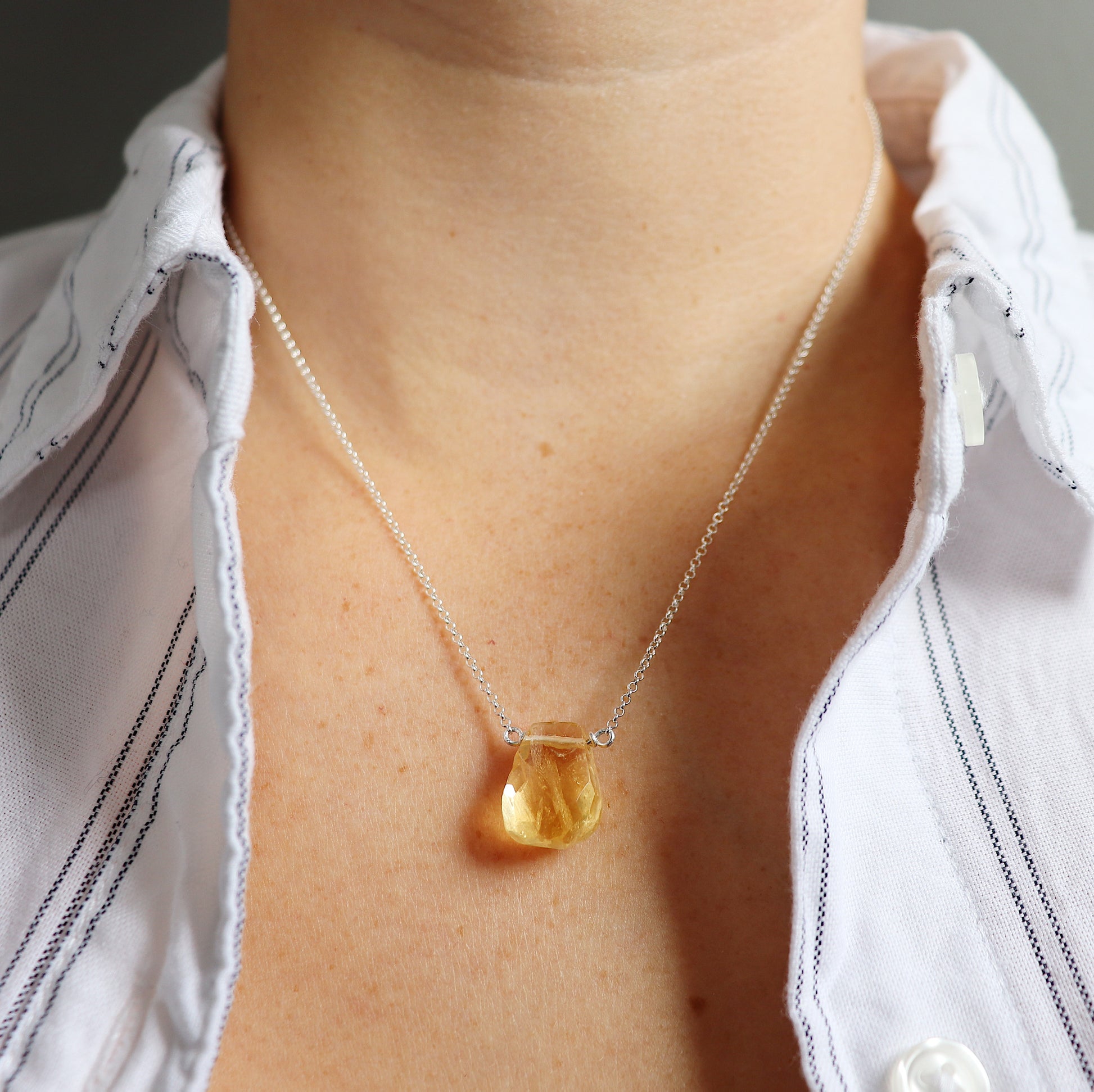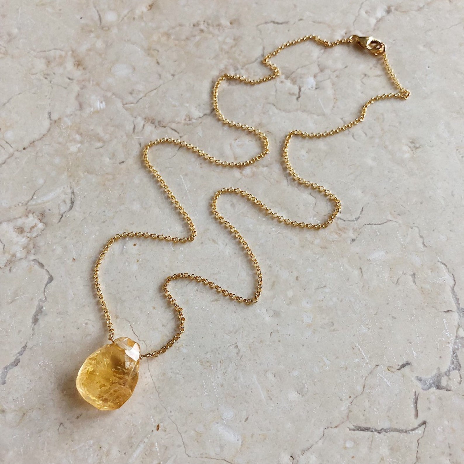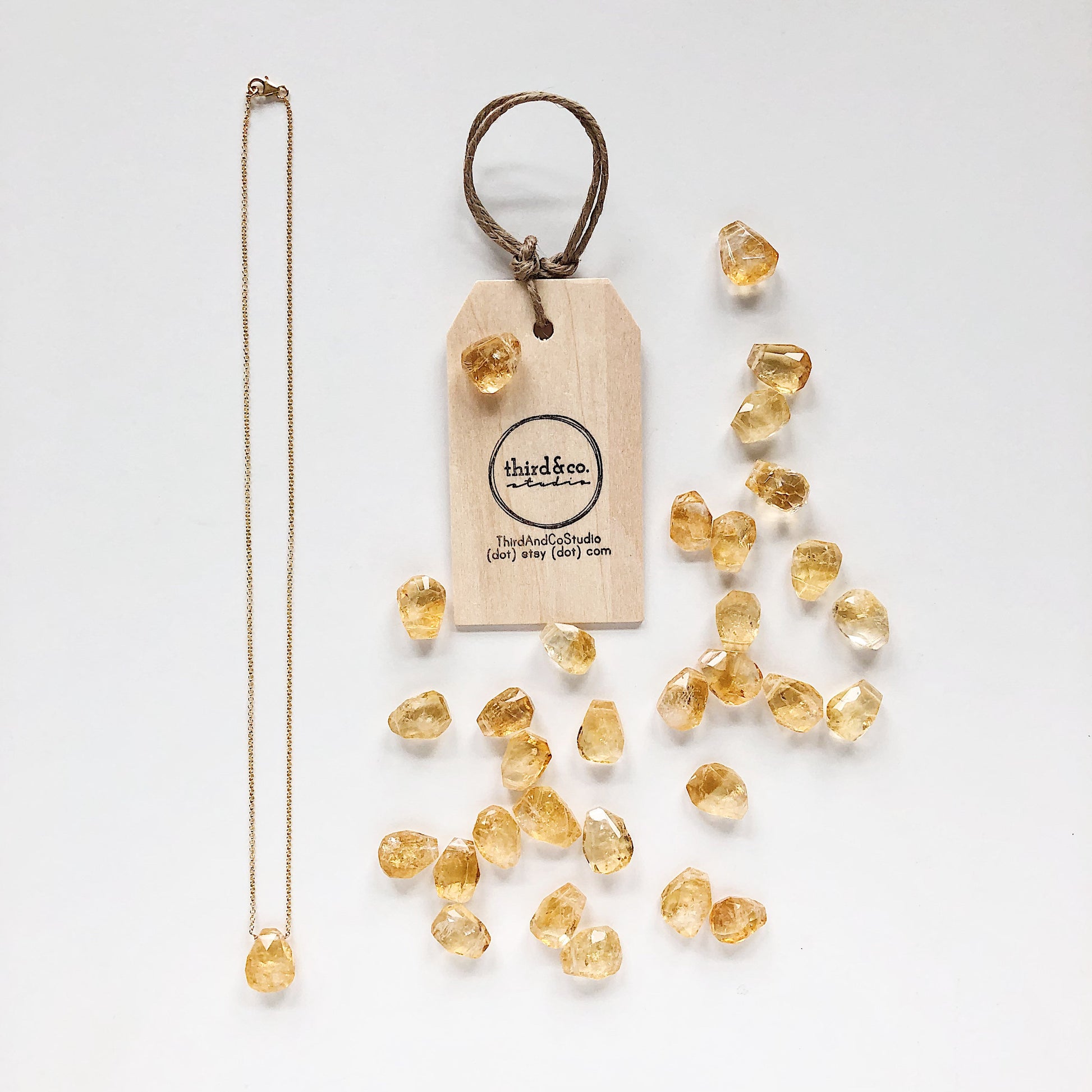 Semiprecious Stone Faceted Teardrop Necklace with Citrine