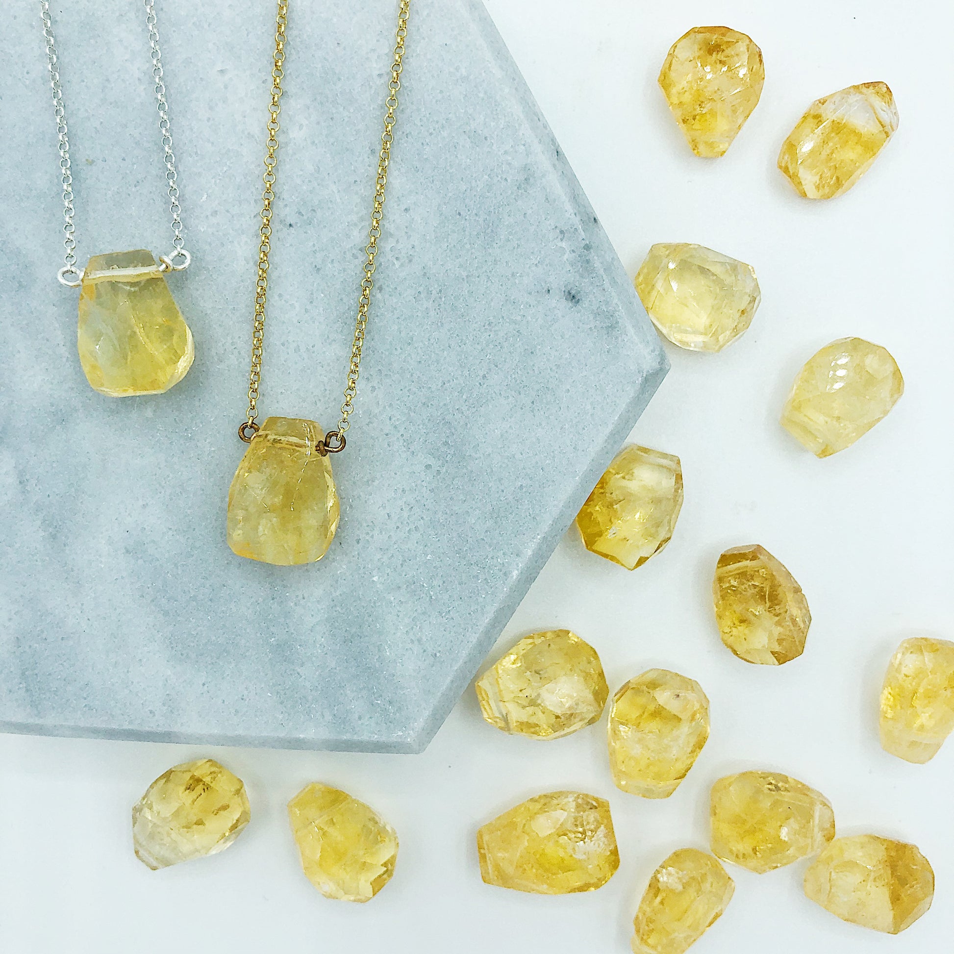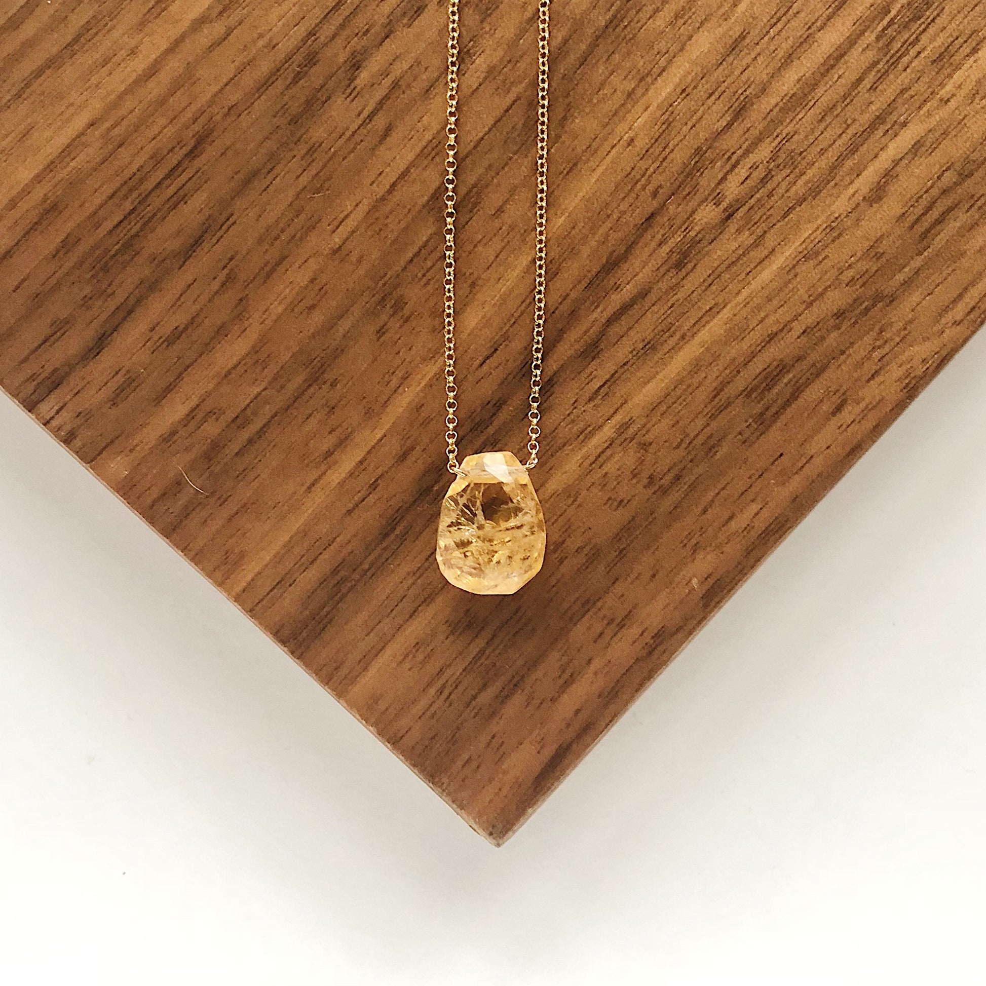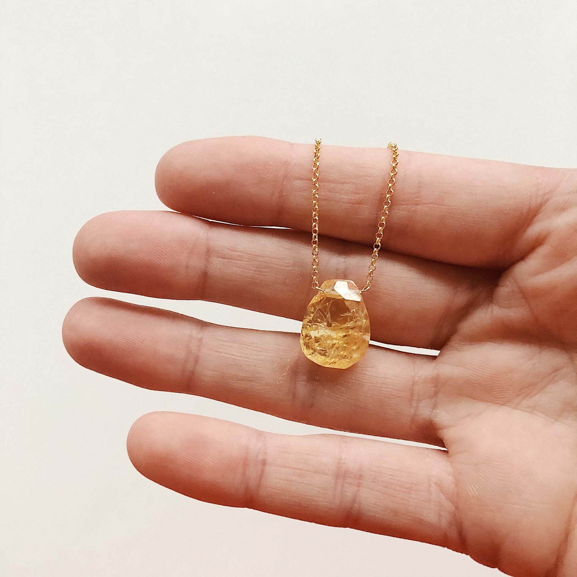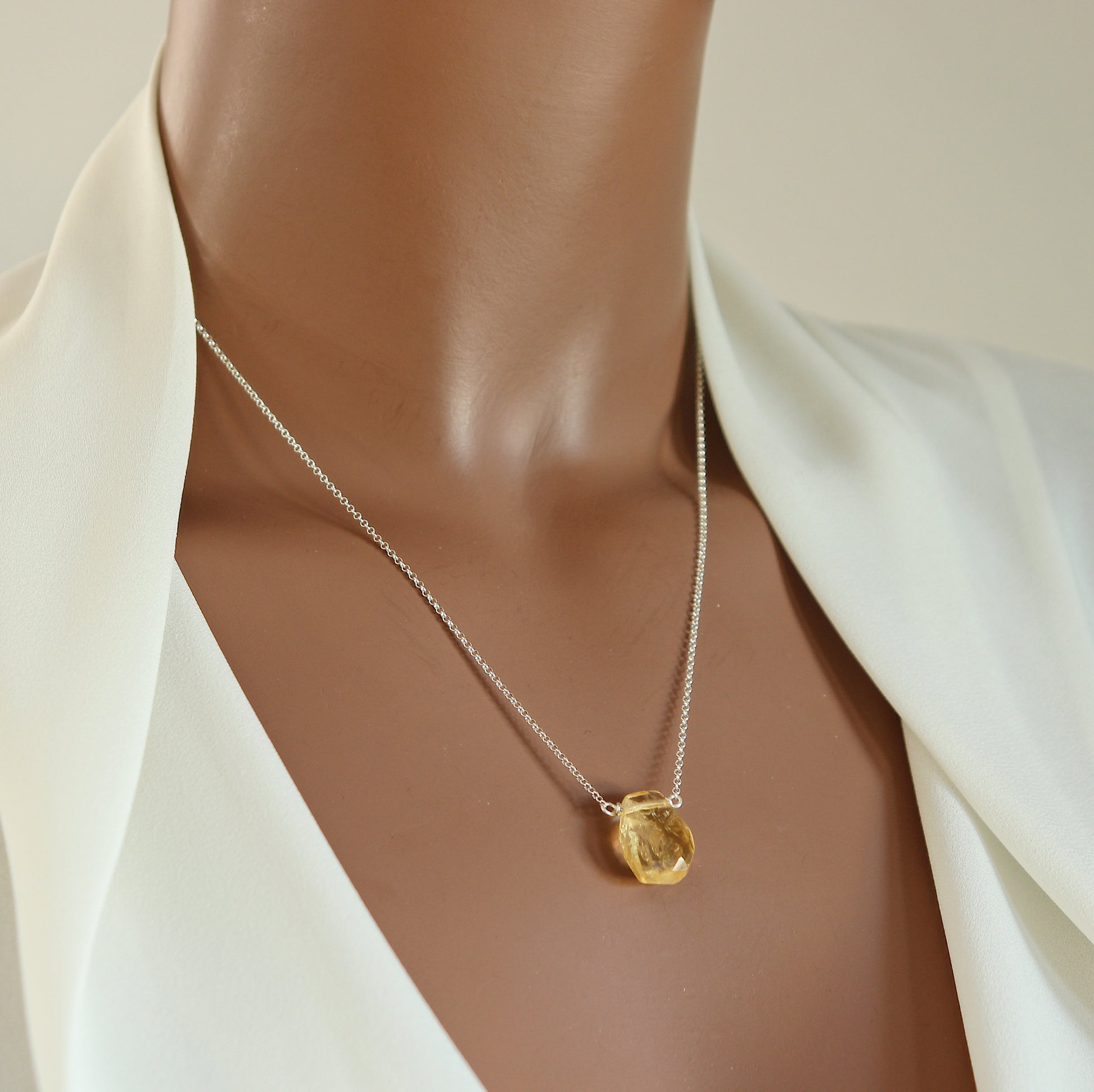 Semiprecious Stone Faceted Teardrop Necklace with Citrine