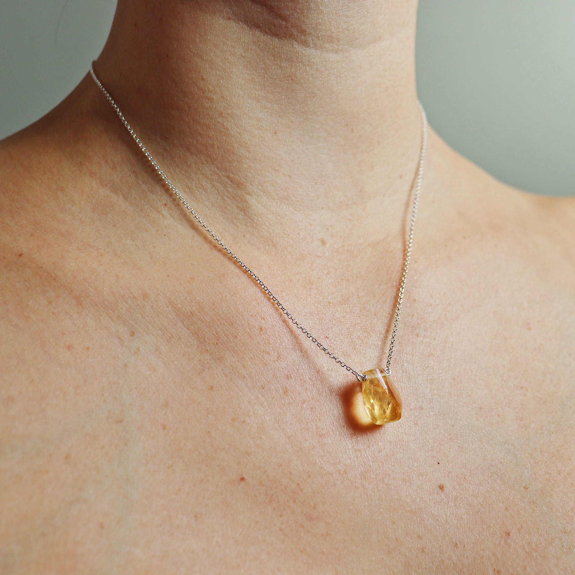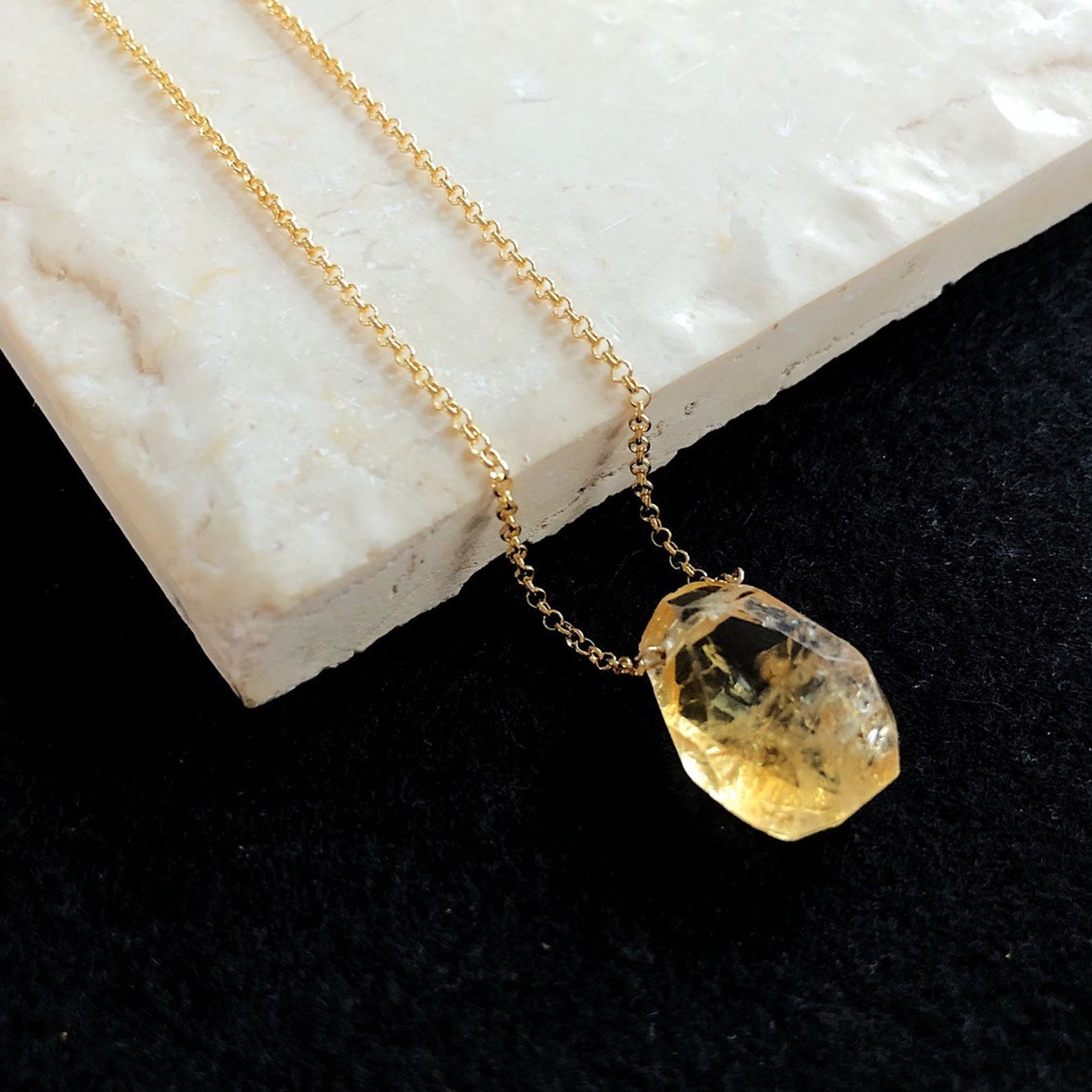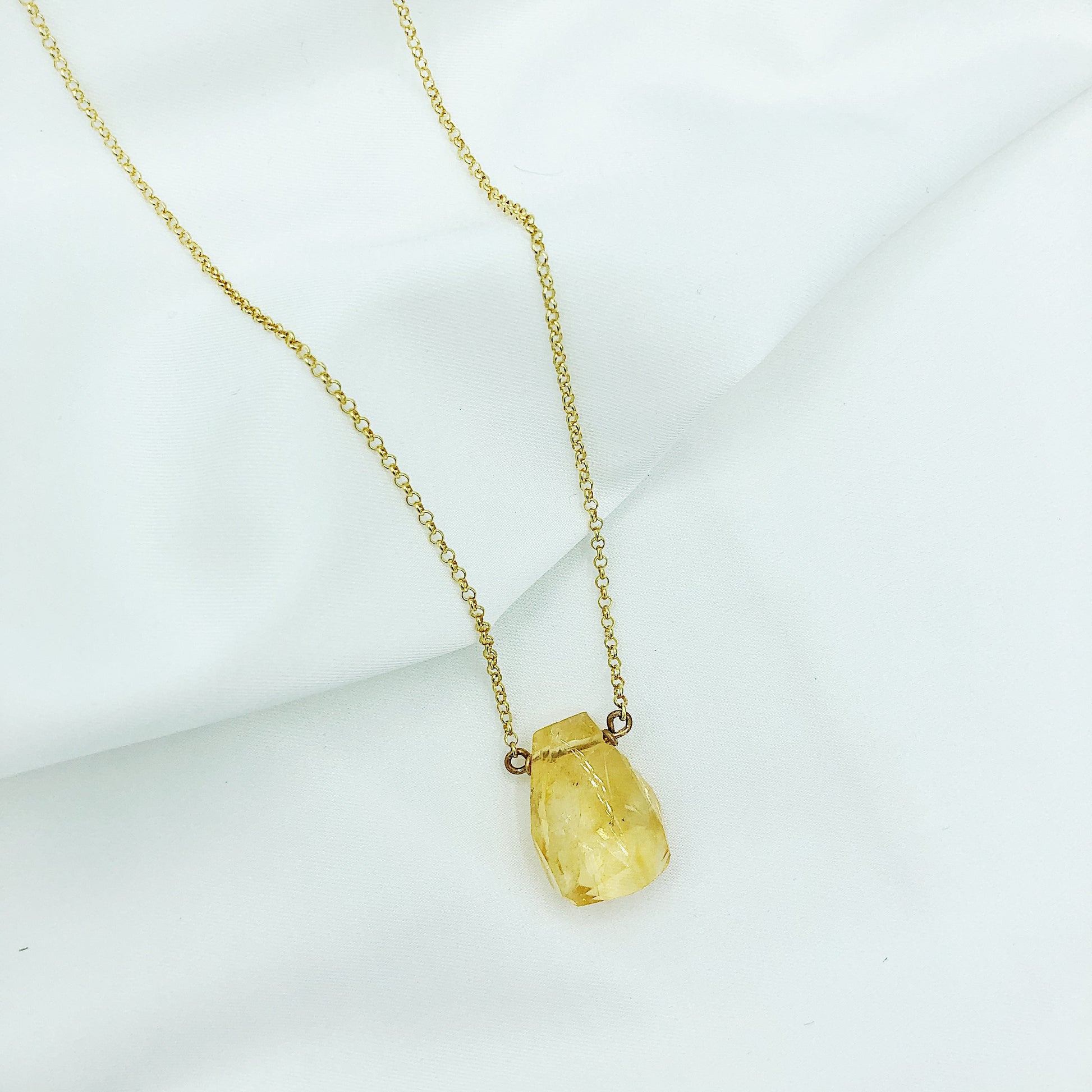 This simple irregular-shaped faceted teardrop Necklace with a single orange Citrine stone is easy to throw on and go! Its minimalist style will have you reaching for it again and again.