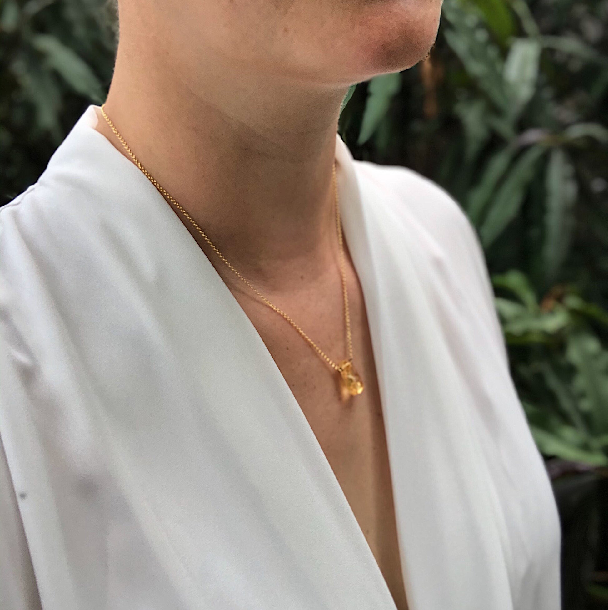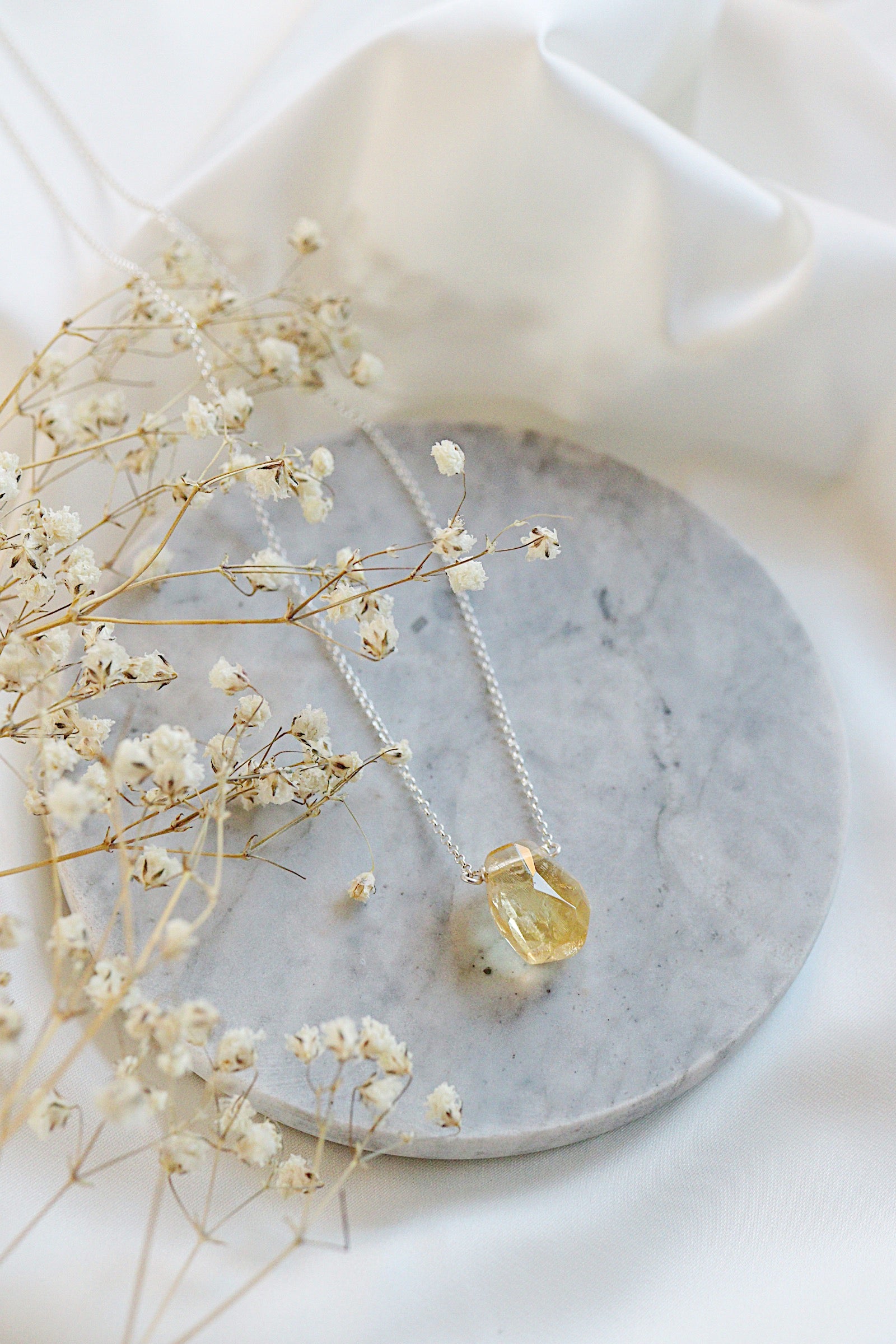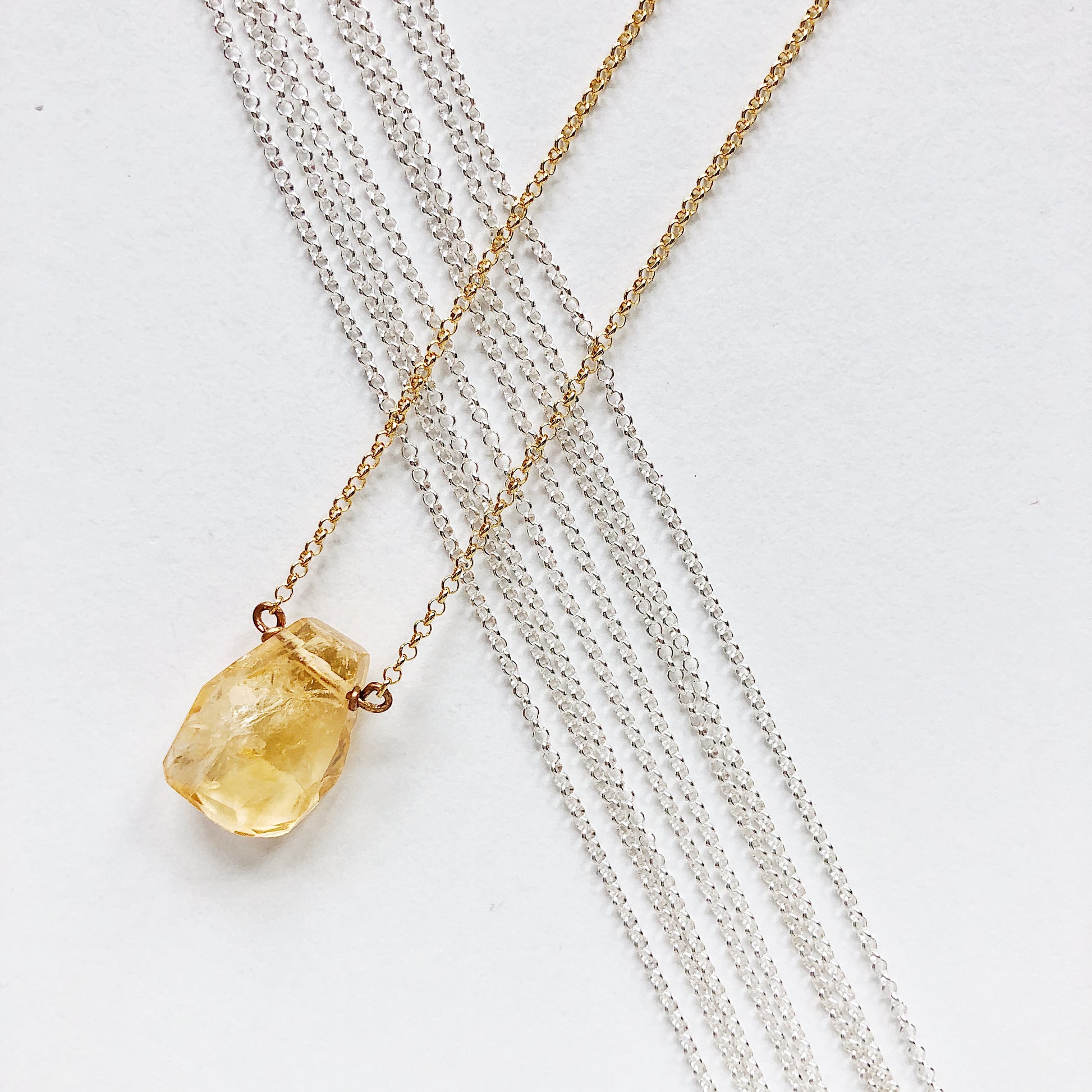 This simple irregular-shaped faceted teardrop Necklace with a single orange Citrine stone is easy to throw on and go! Its minimalist style will have you reaching for it again and again.