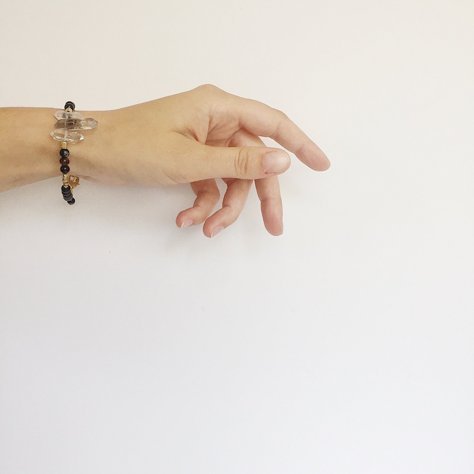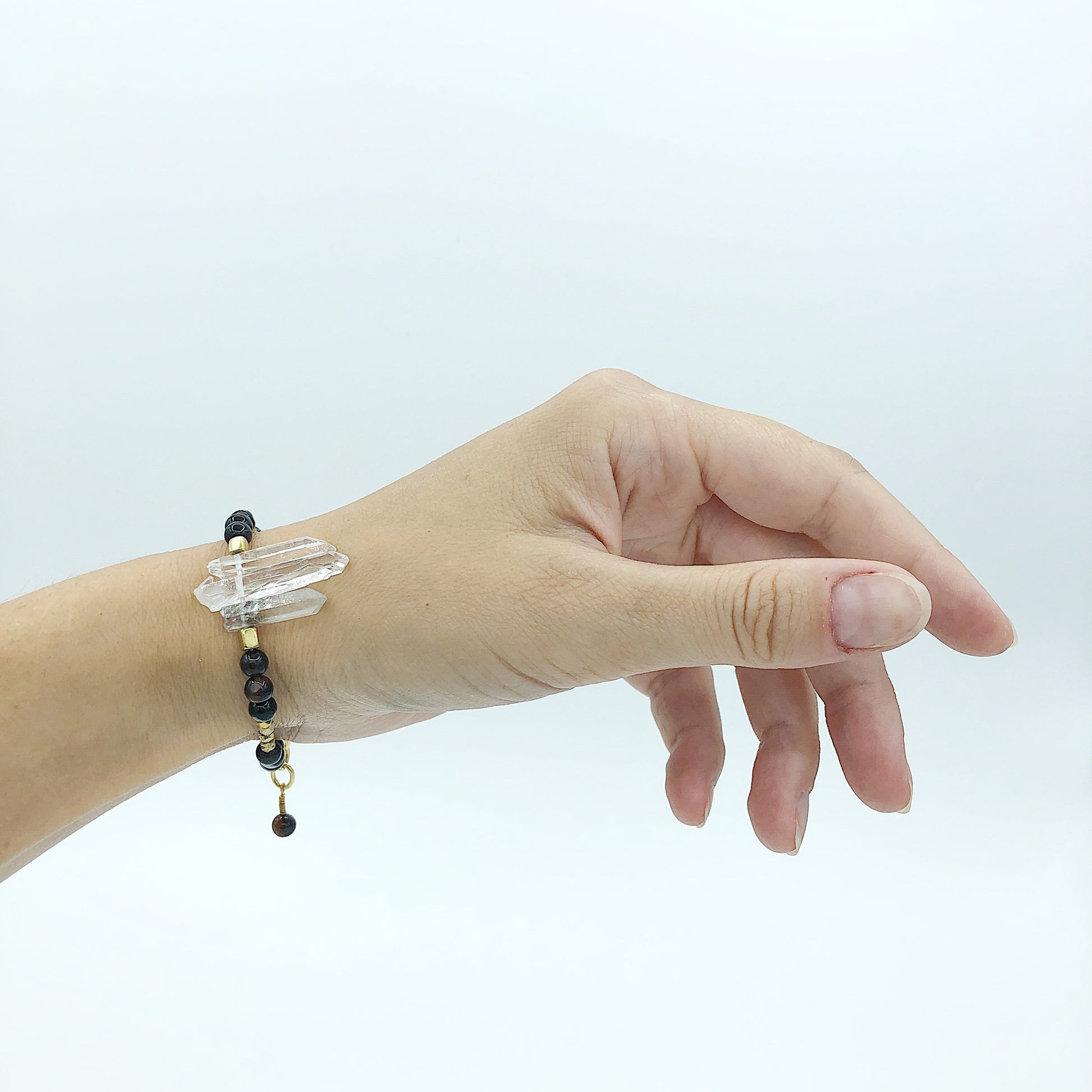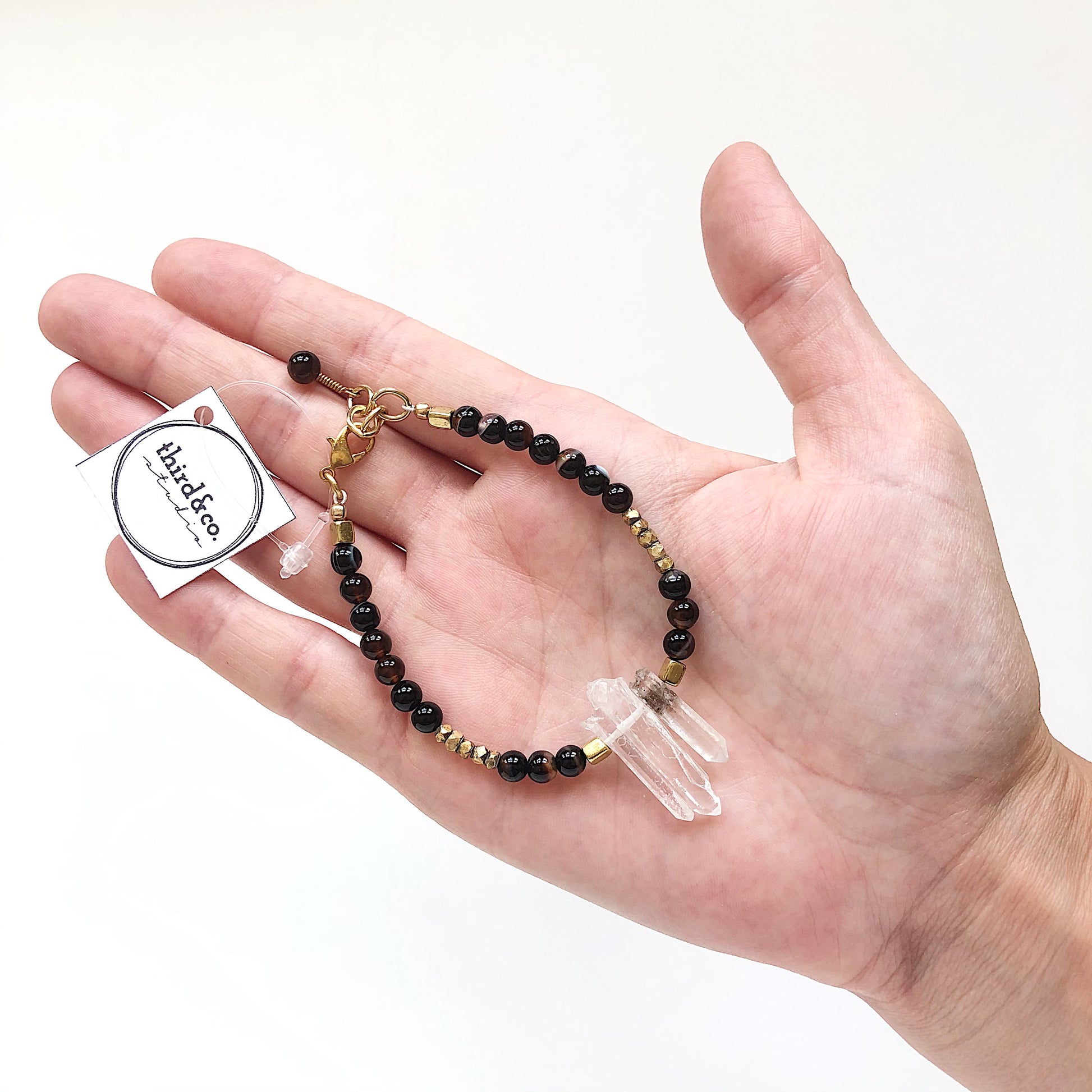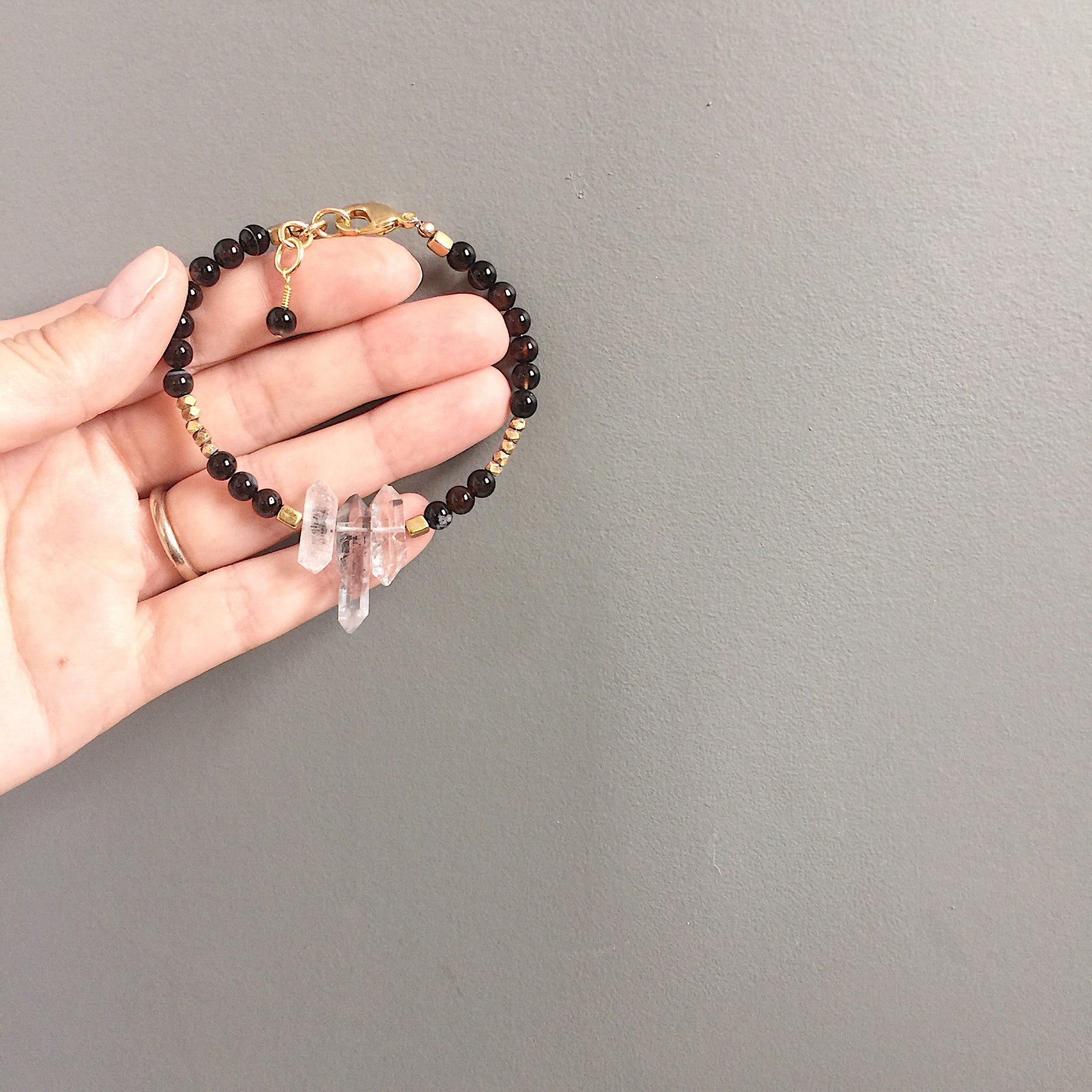 The Phoenix Bracelet: Quartz points, Onyx, and vermeil accent beads met with vintage gold plated chain create this adjustable and versatile bracelet.