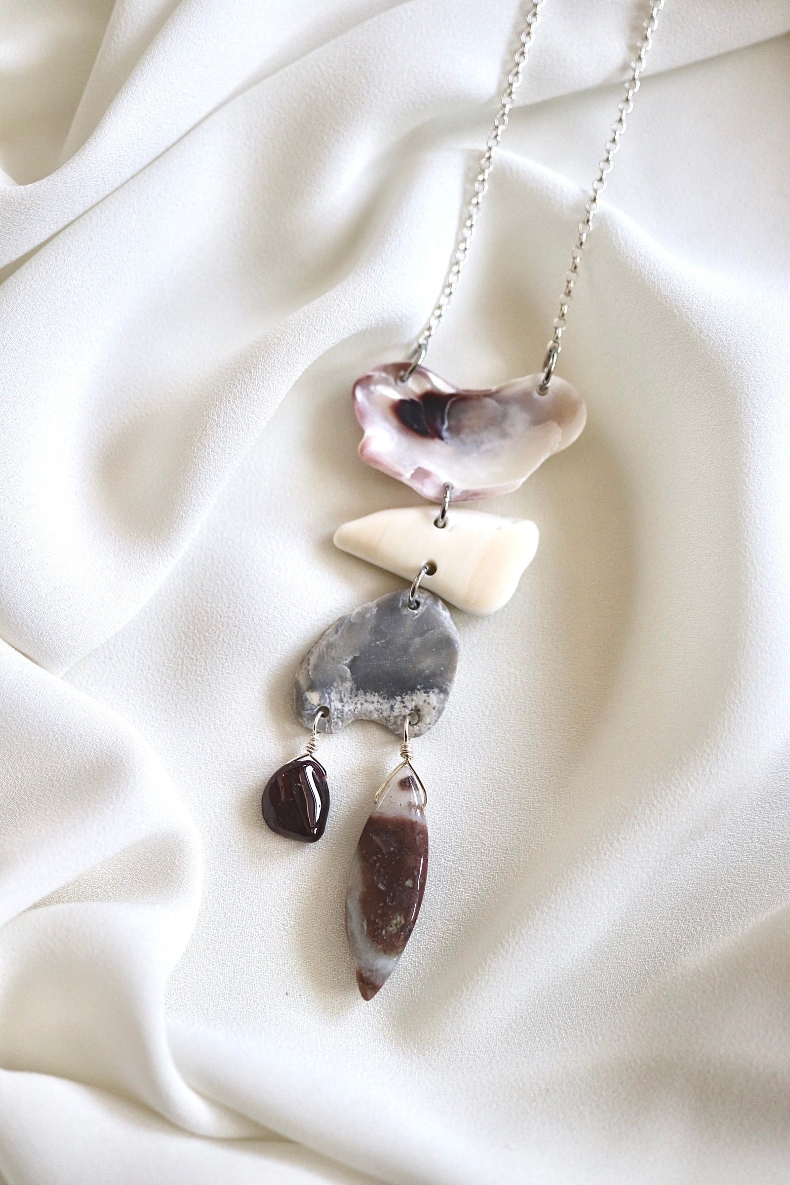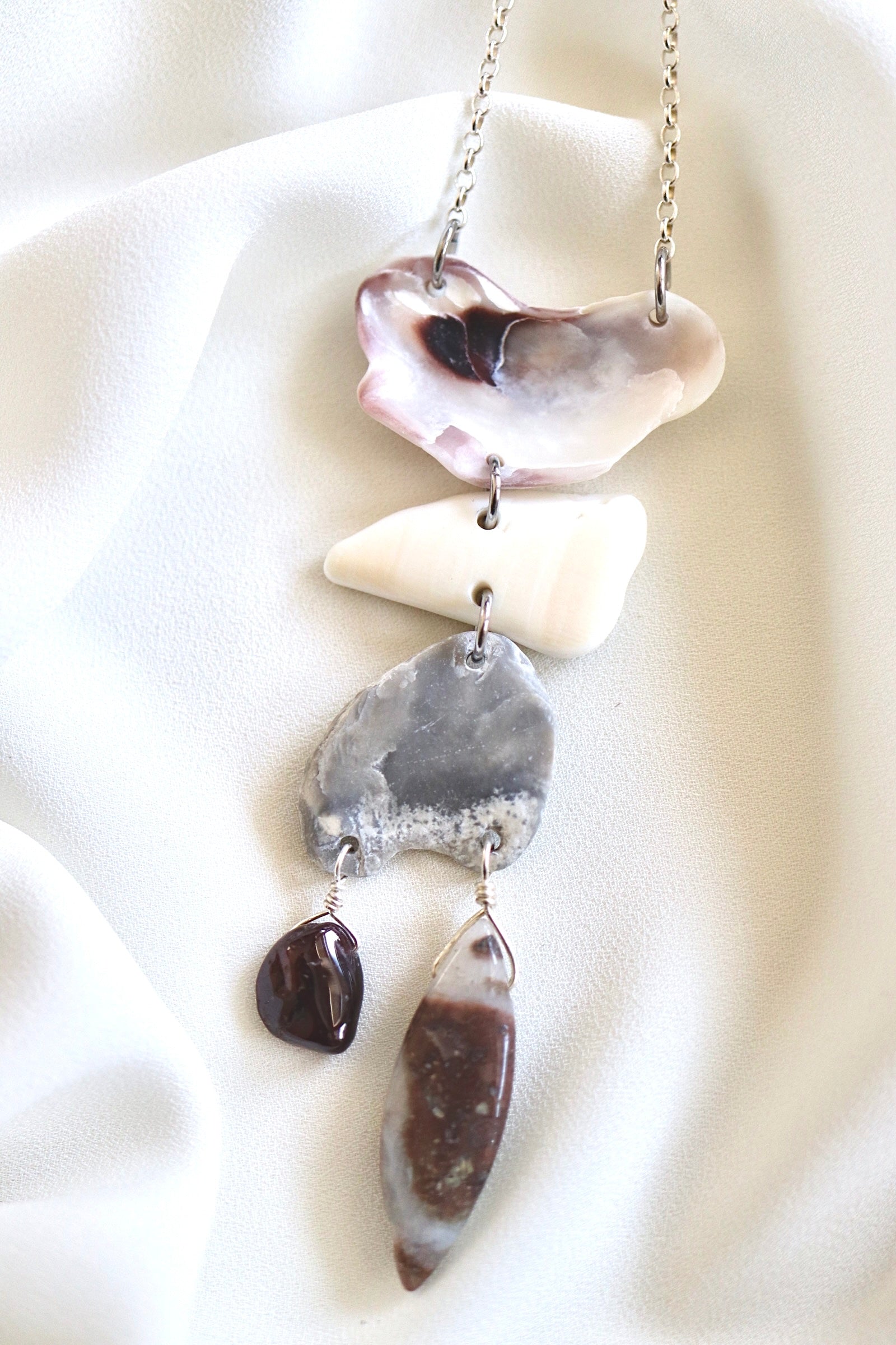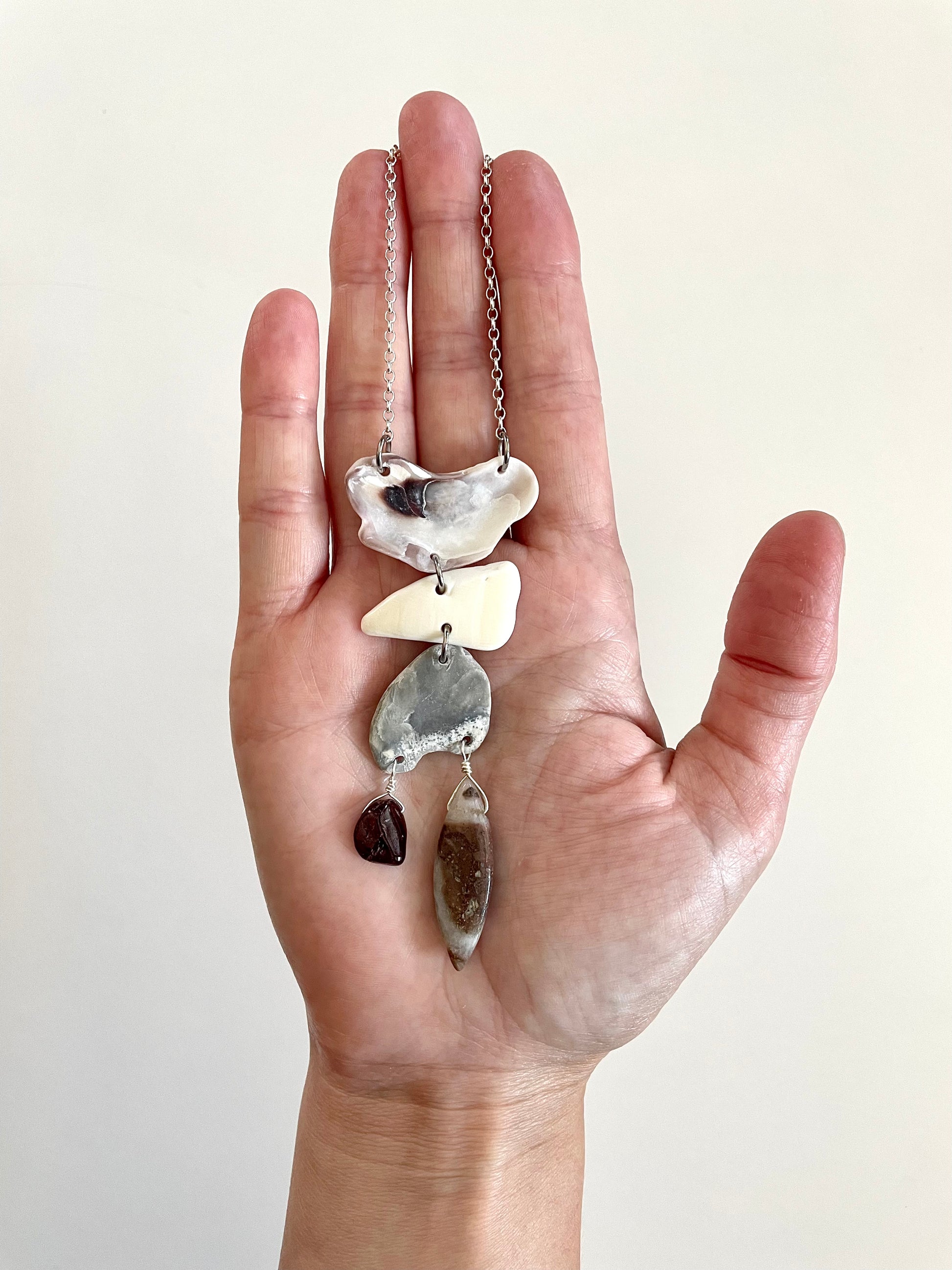 FROM THE BEACH // Garnet, Jasper, Shell Fragments, Sterling Silver Necklace