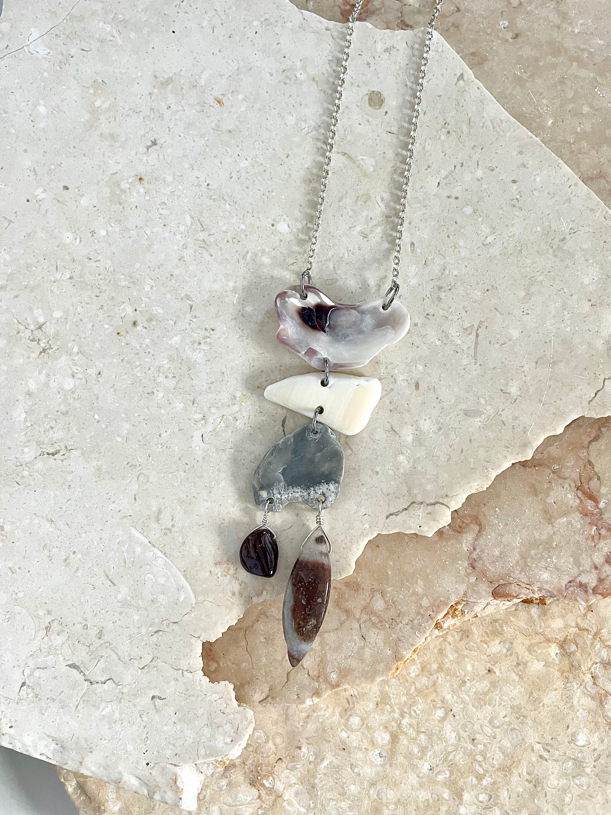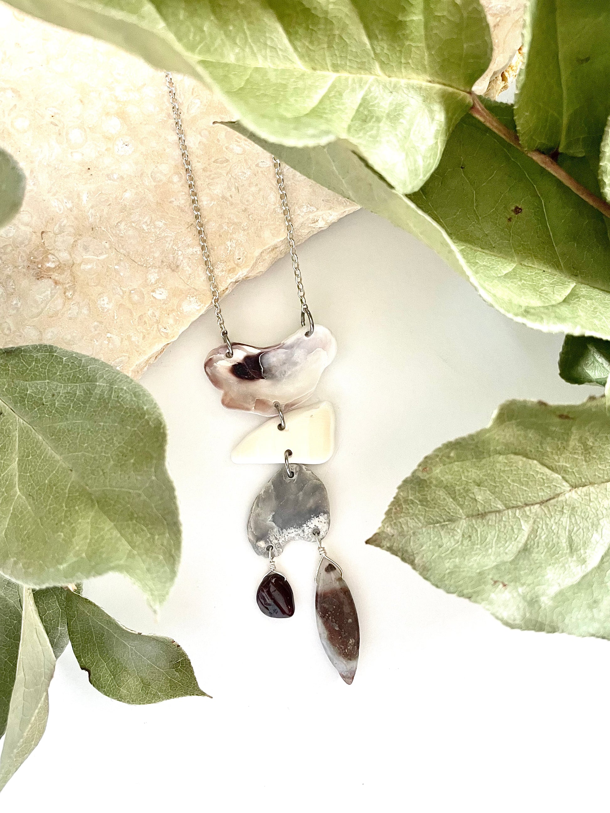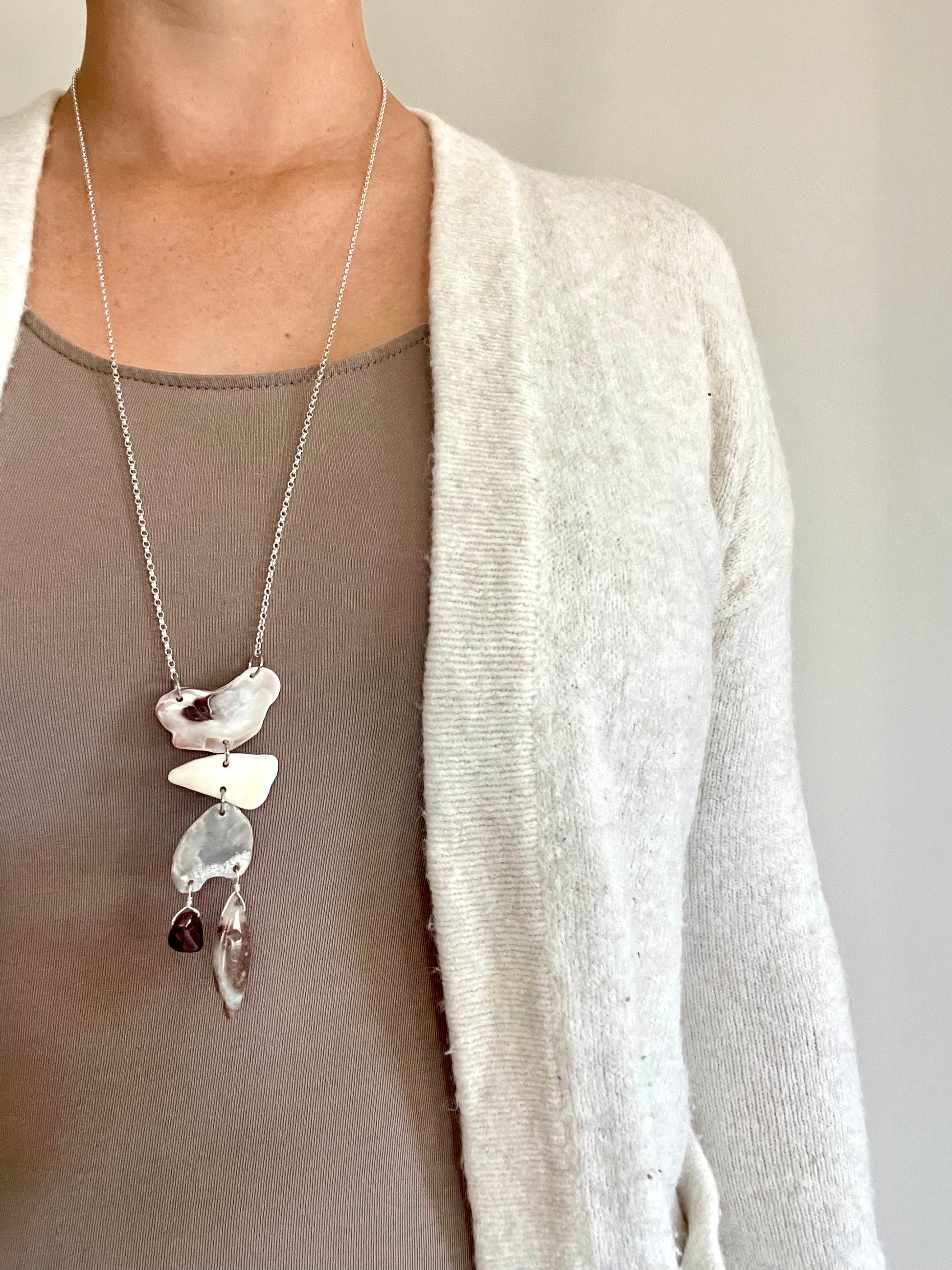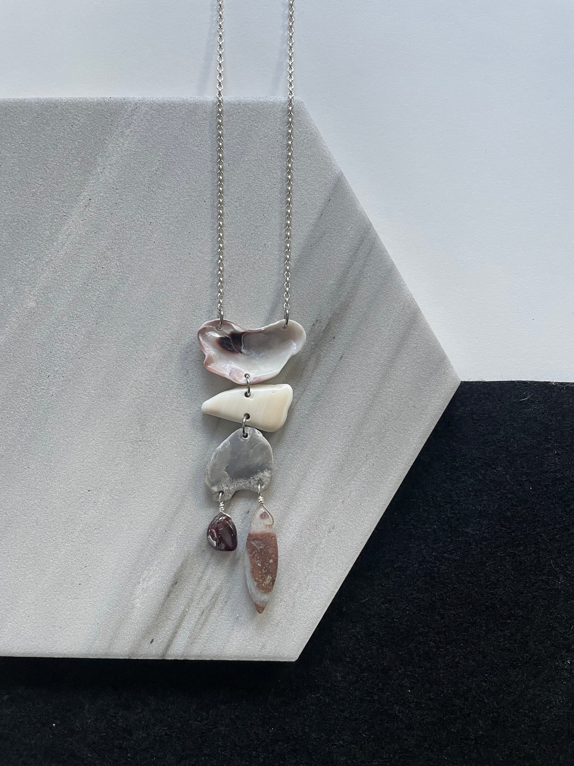 FROM THE BEACH // Garnet, Jasper, Shell Fragments, Sterling Silver Necklace