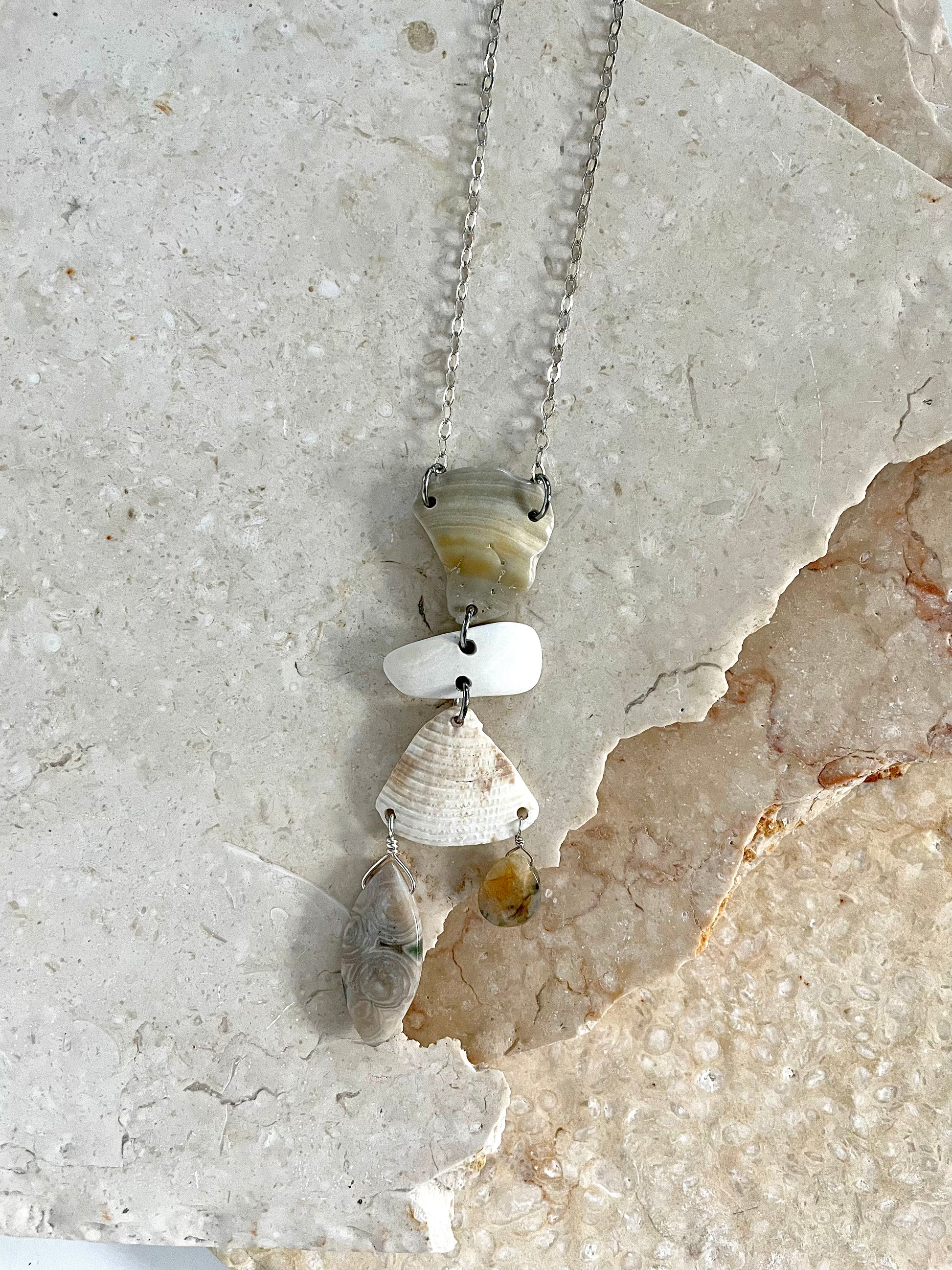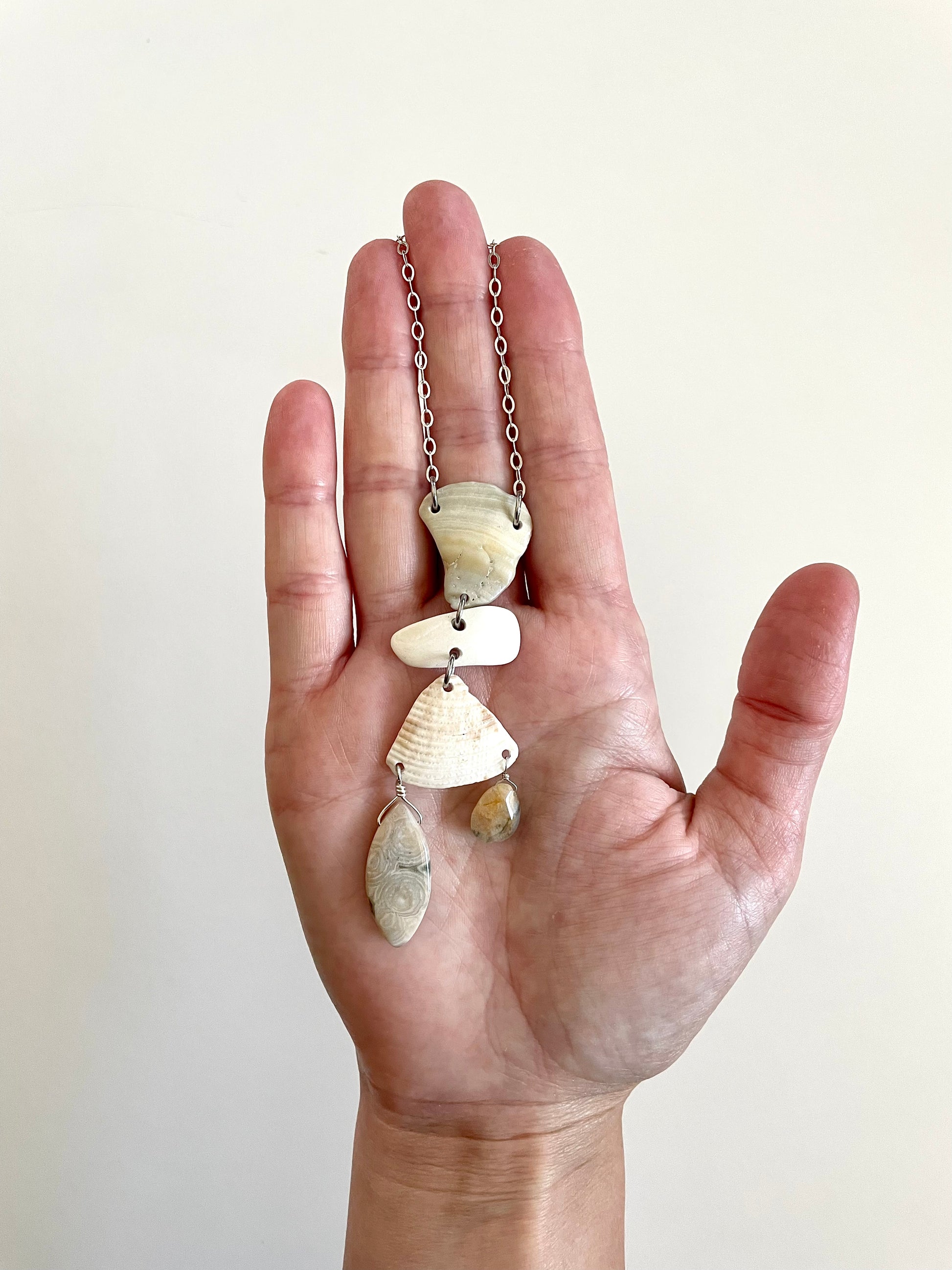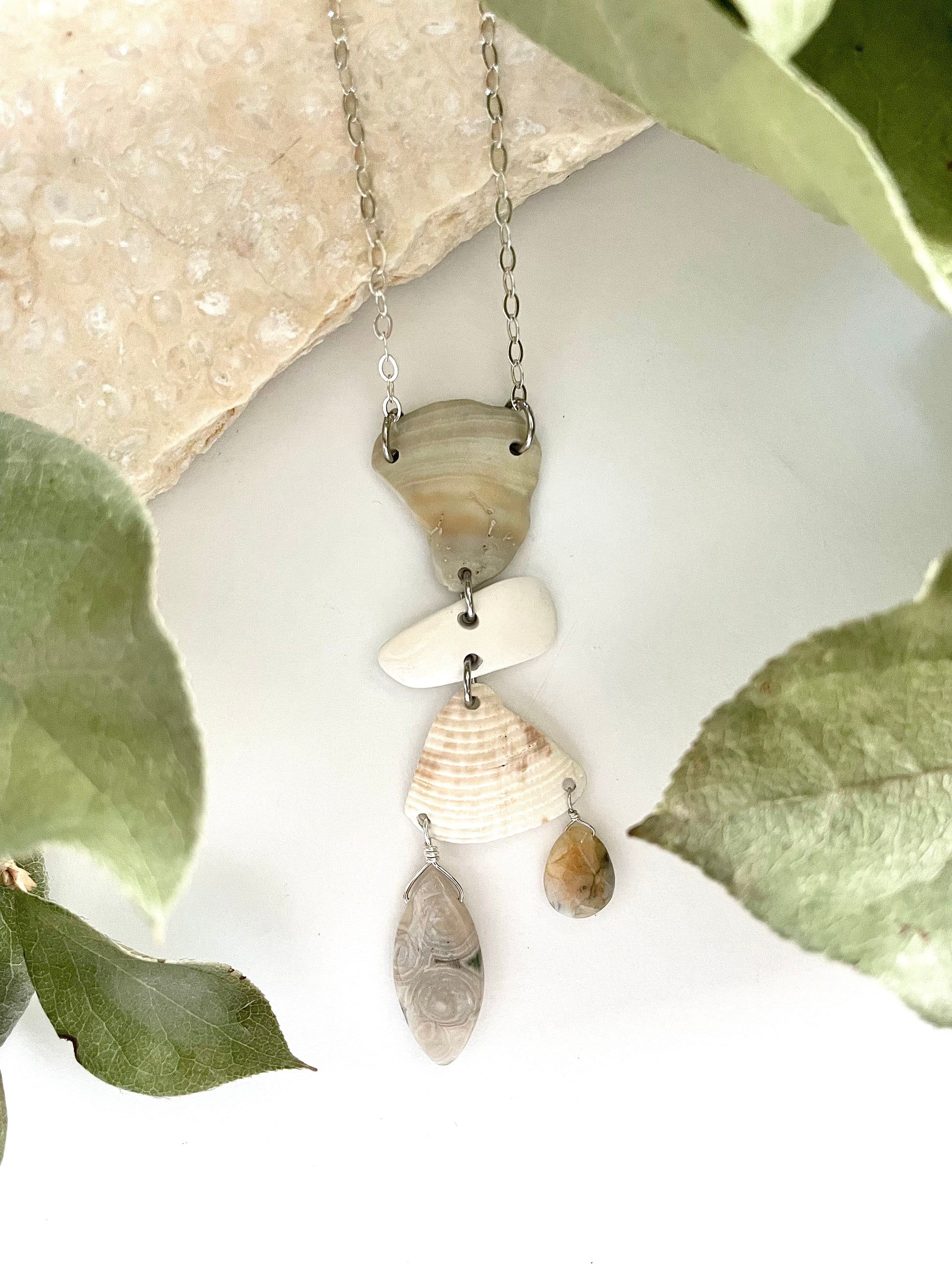 FROM THE BEACH // Chalcedony, Jasper, Shell Fragments, Sterling Silver Necklace
