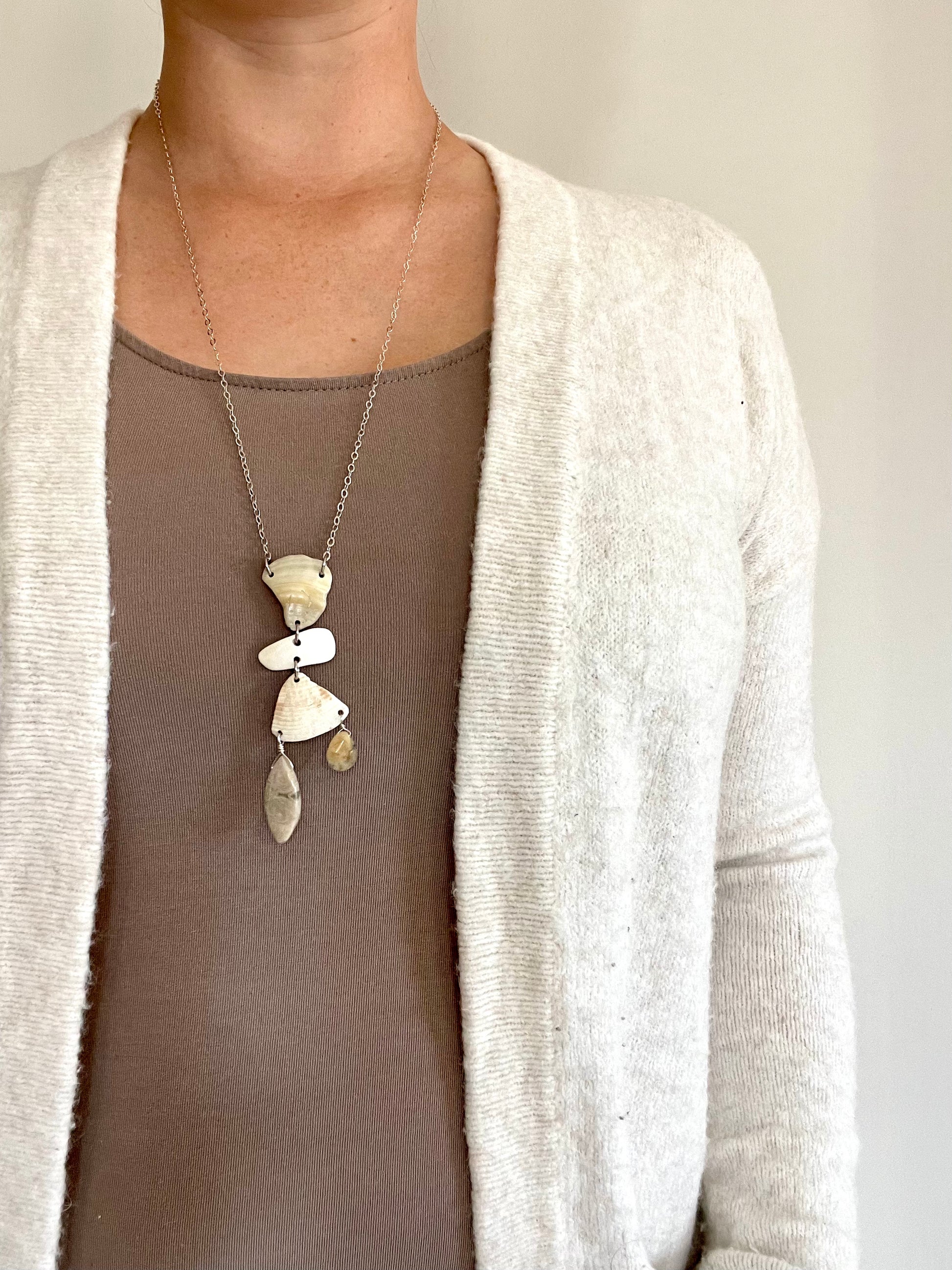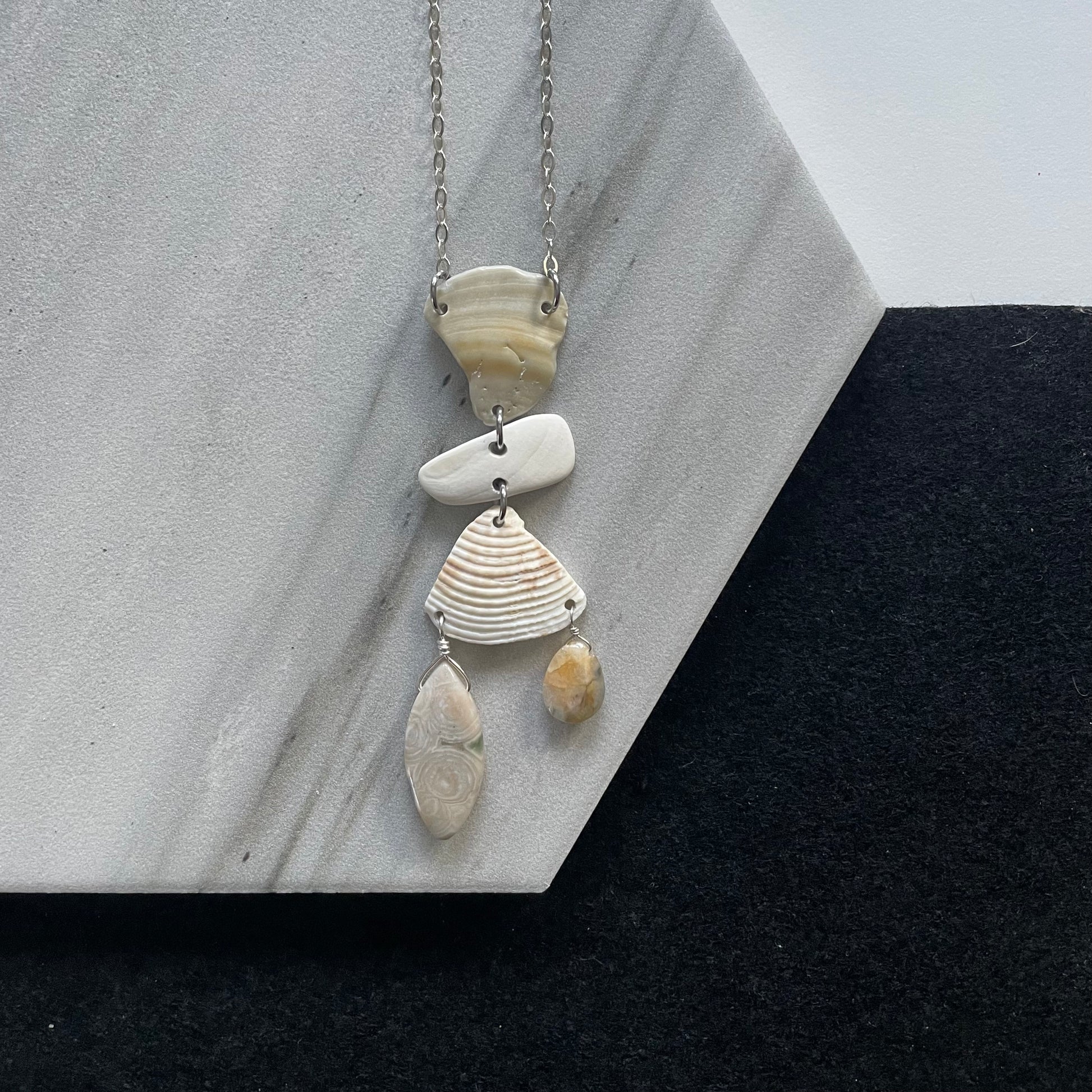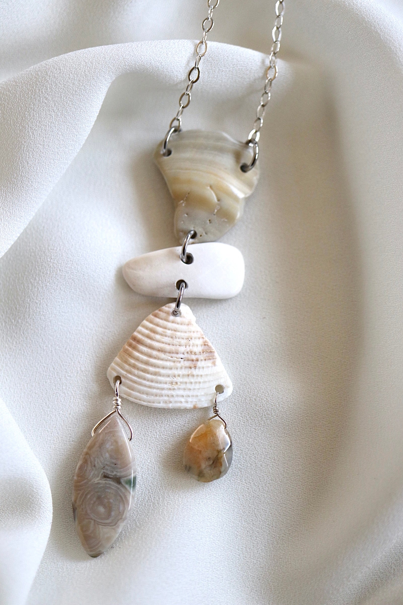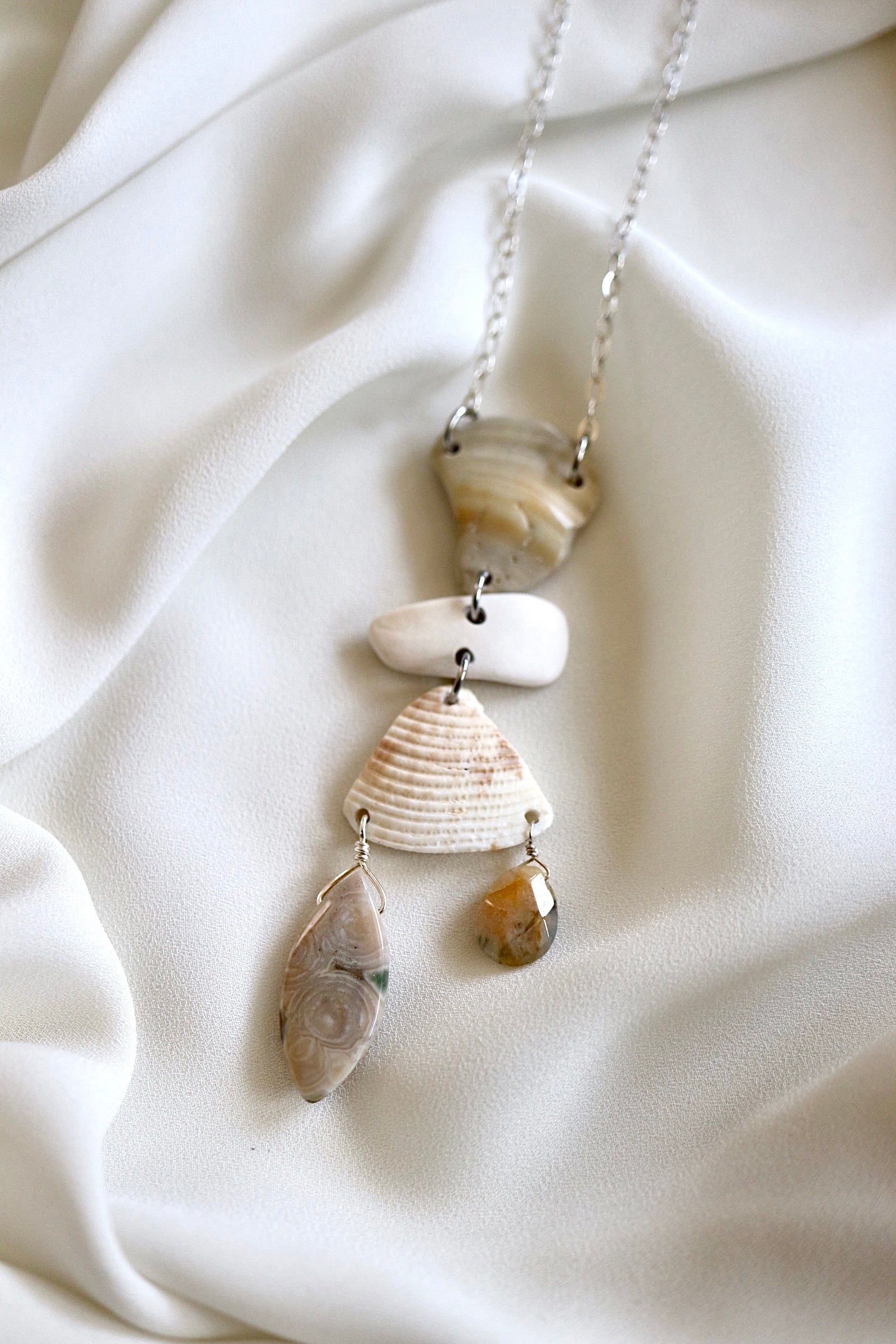 FROM THE BEACH // Chalcedony, Jasper, Shell Fragments, Sterling Silver Necklace