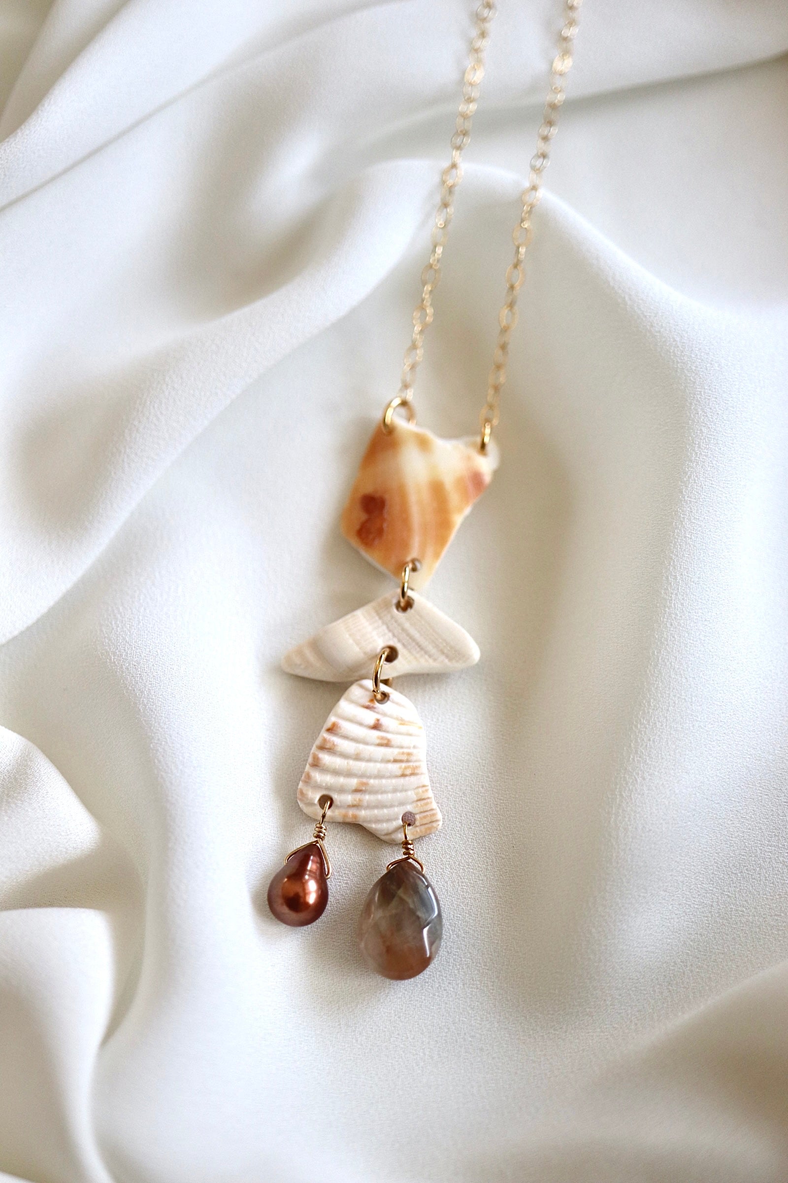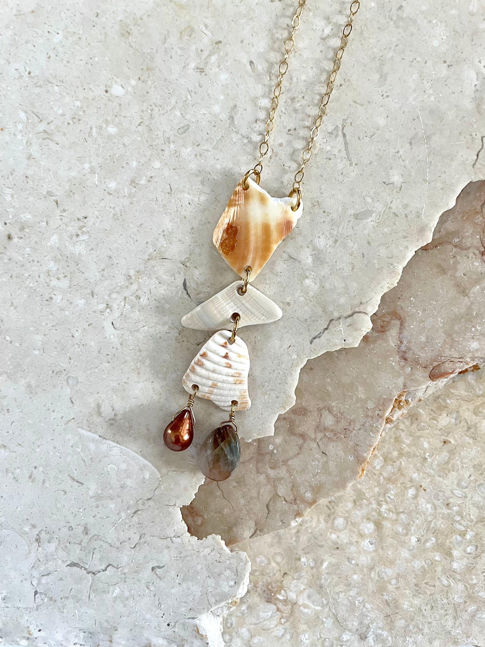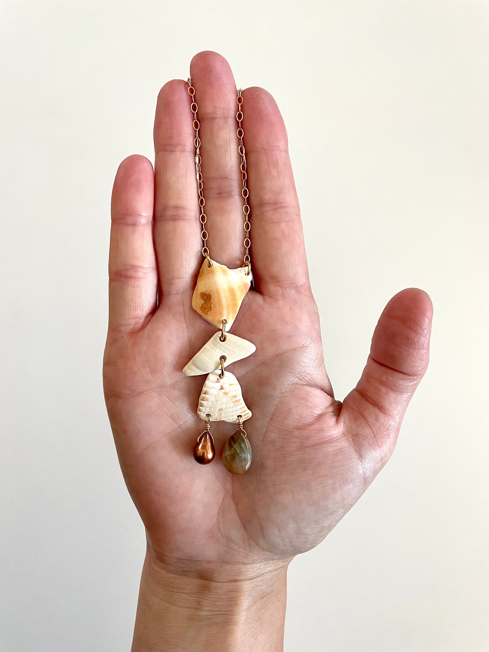 FROM THE BEACH // Chalcedony, Fresh Water Pearl, Shell Fragments, Gold Fill Necklace