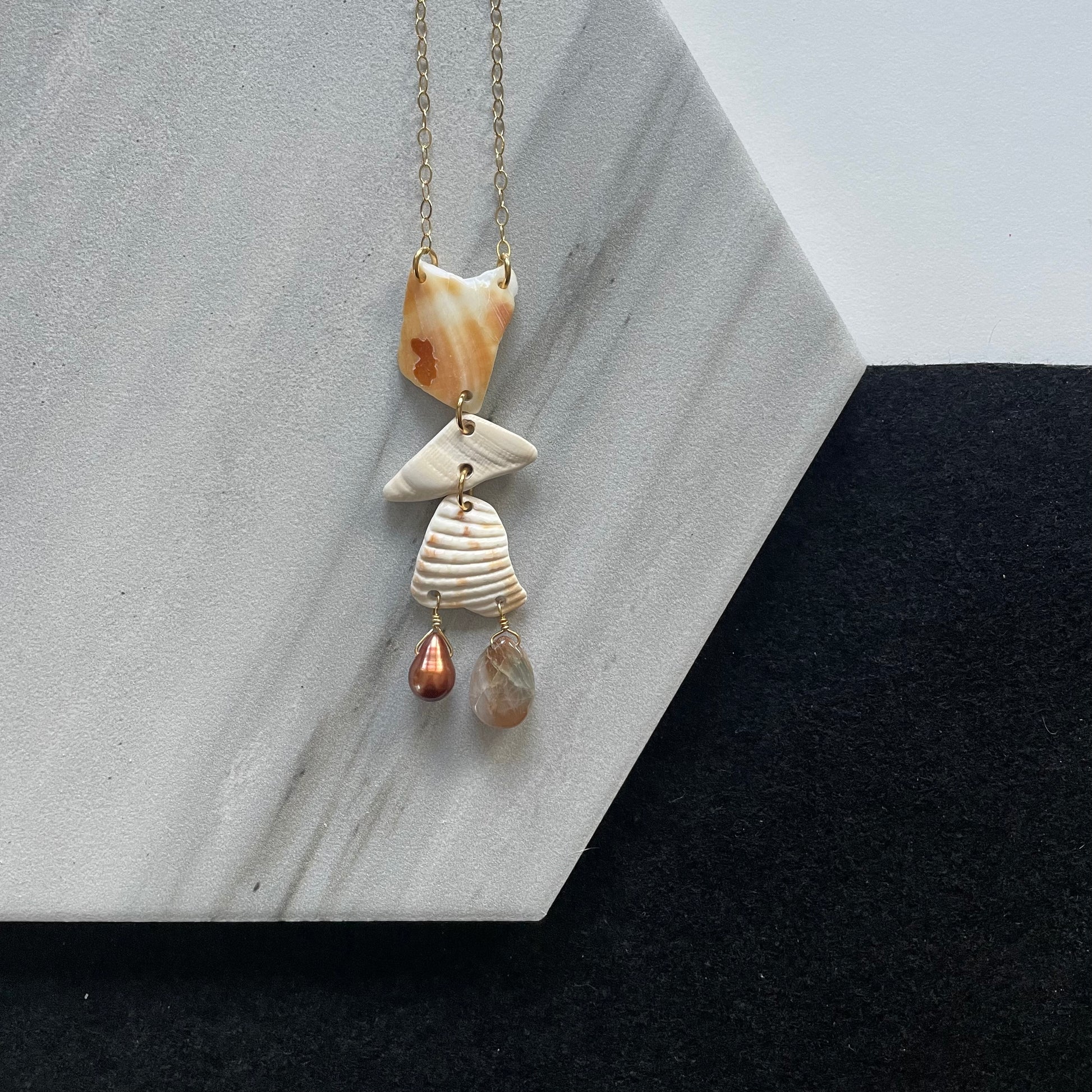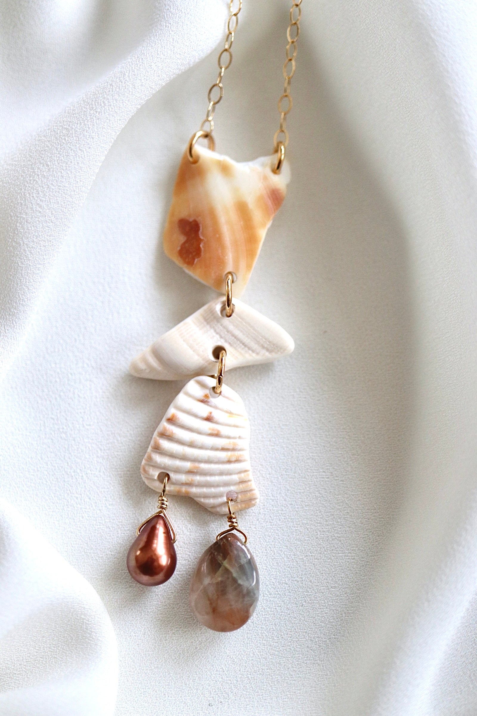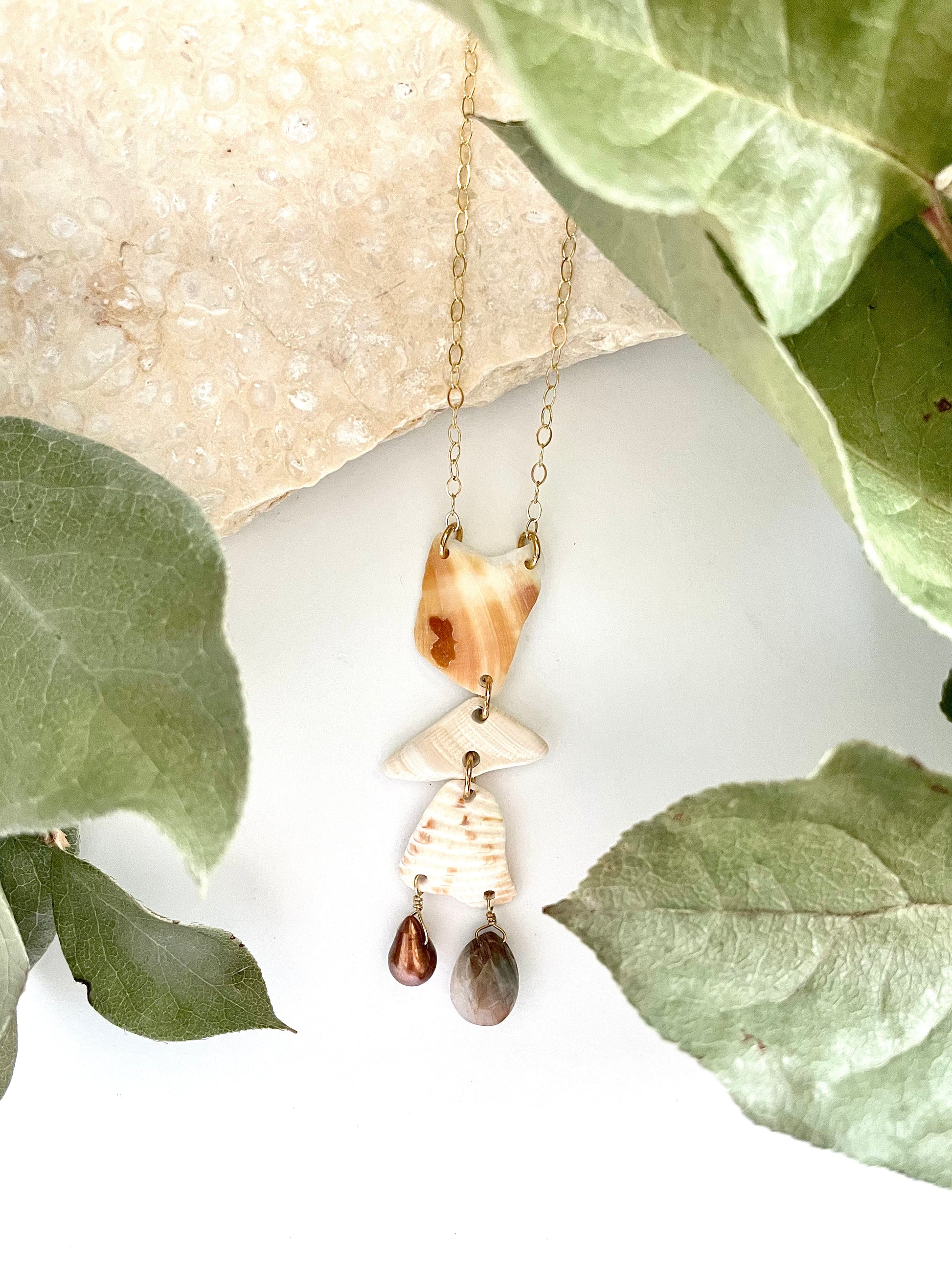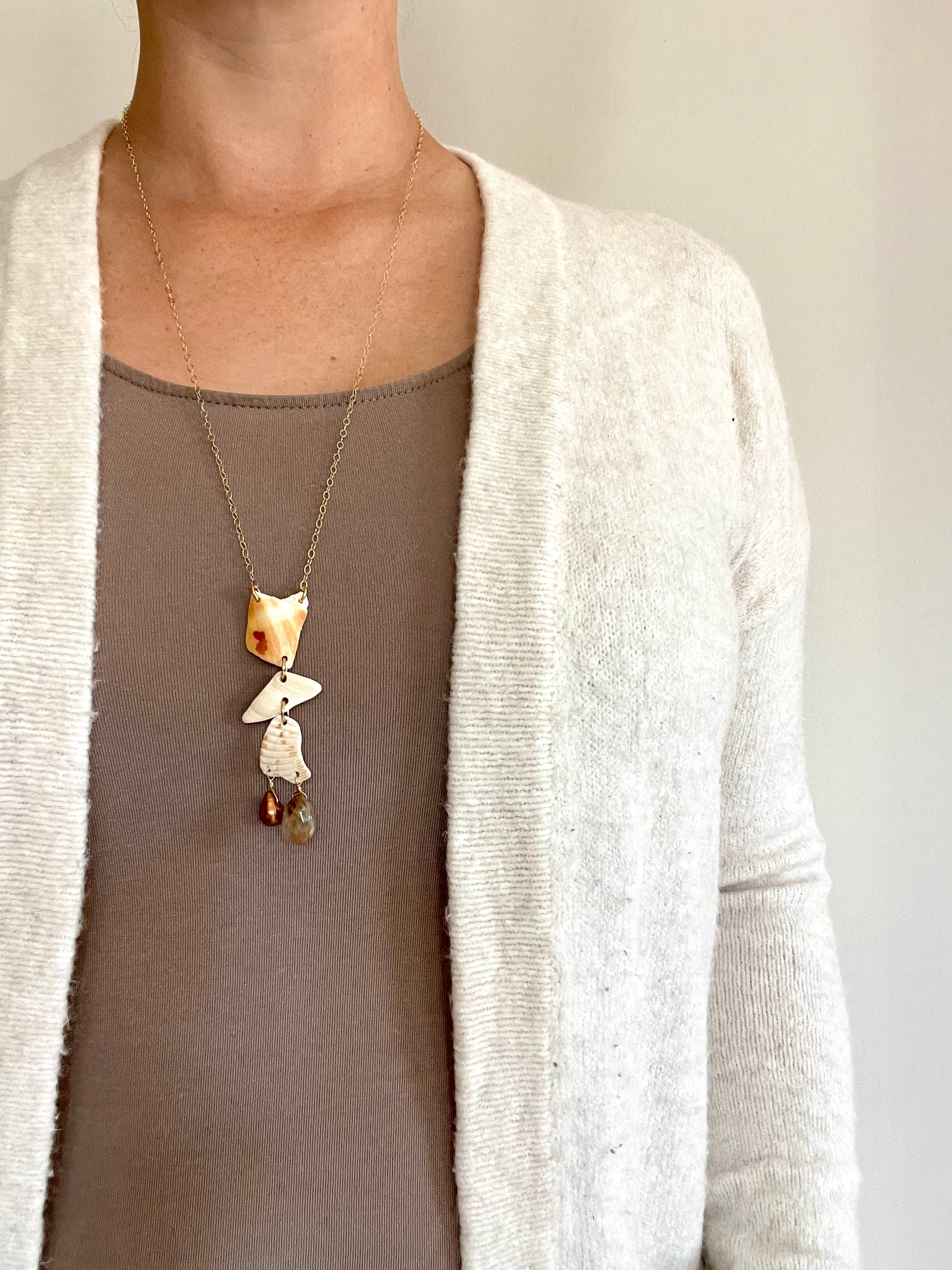 FROM THE BEACH // Chalcedony, Fresh Water Pearl, Shell Fragments, Gold Fill Necklace
