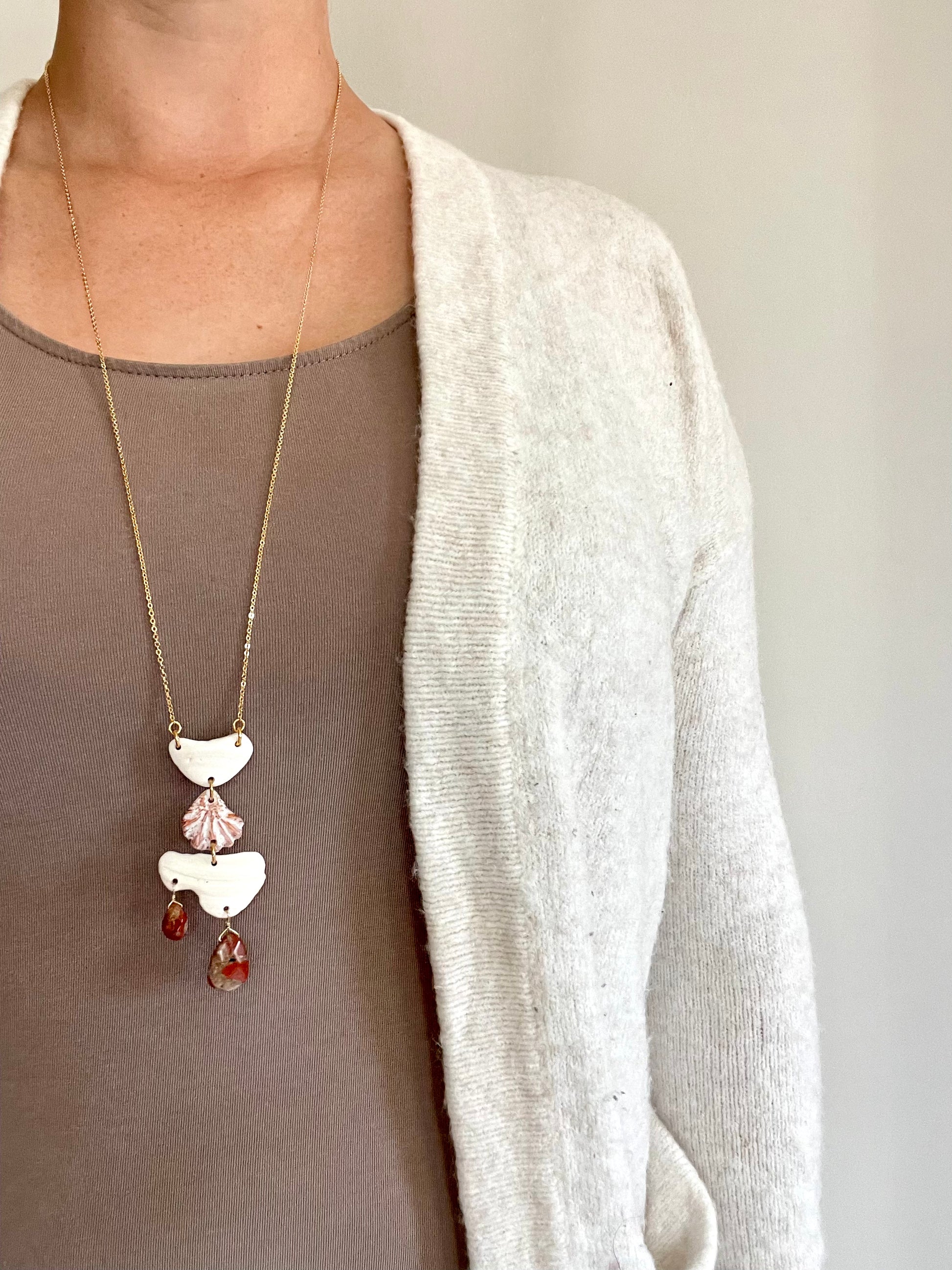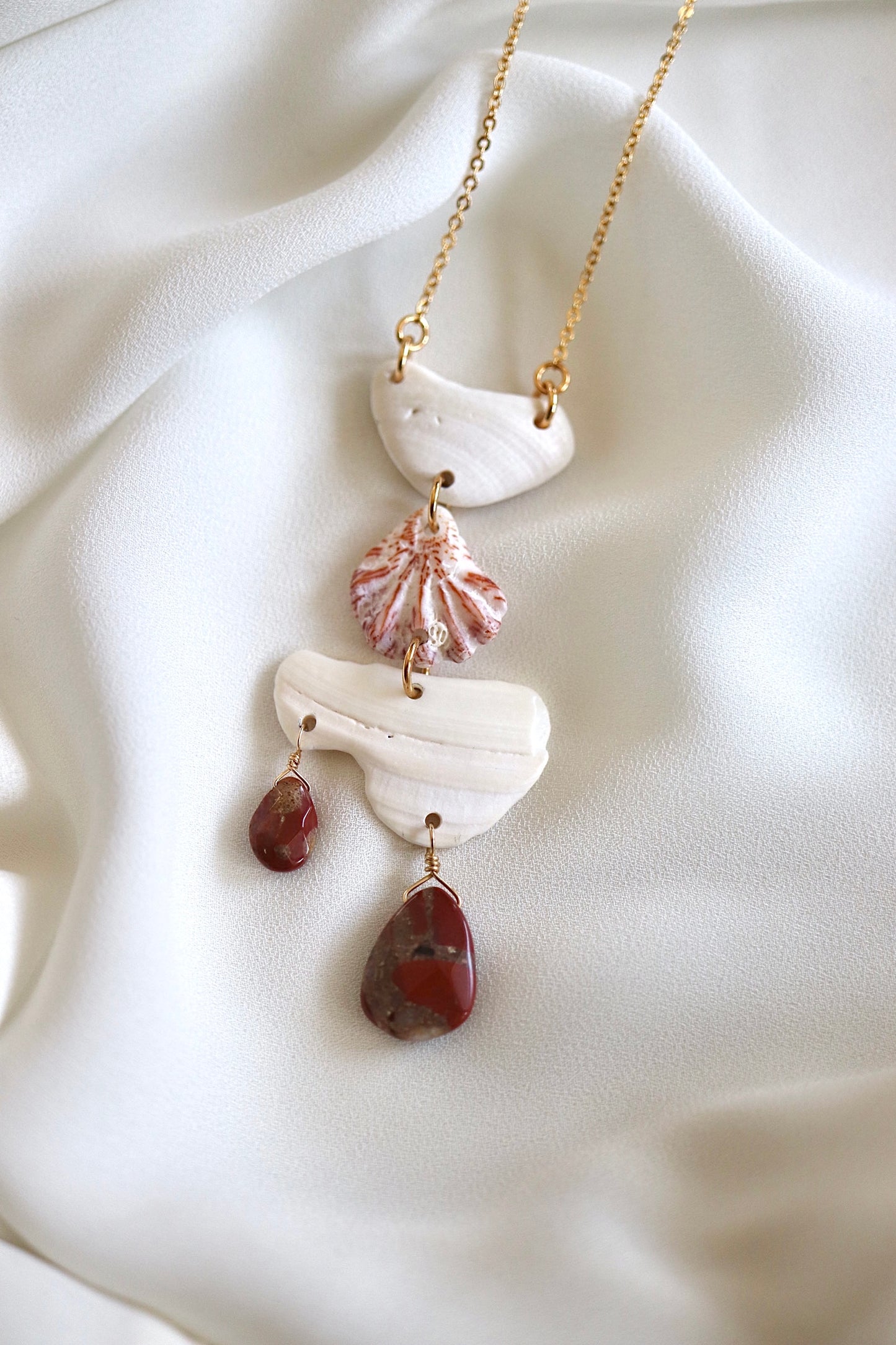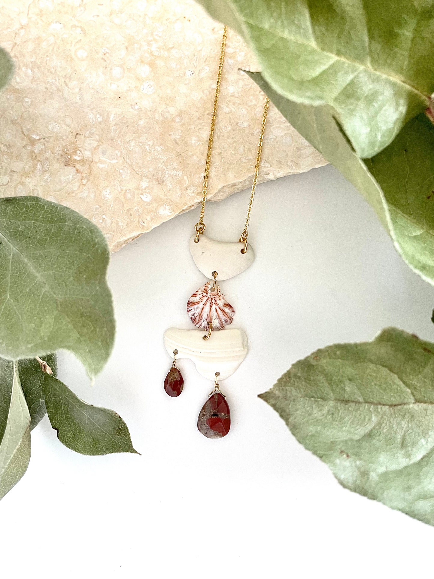 FROM THE BEACH // Chalcedony, Shell Fragments, Gold Plated Necklace