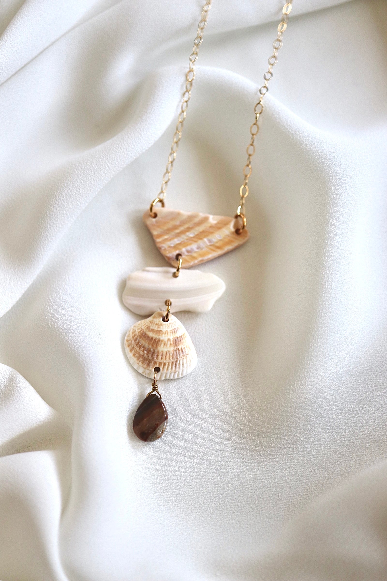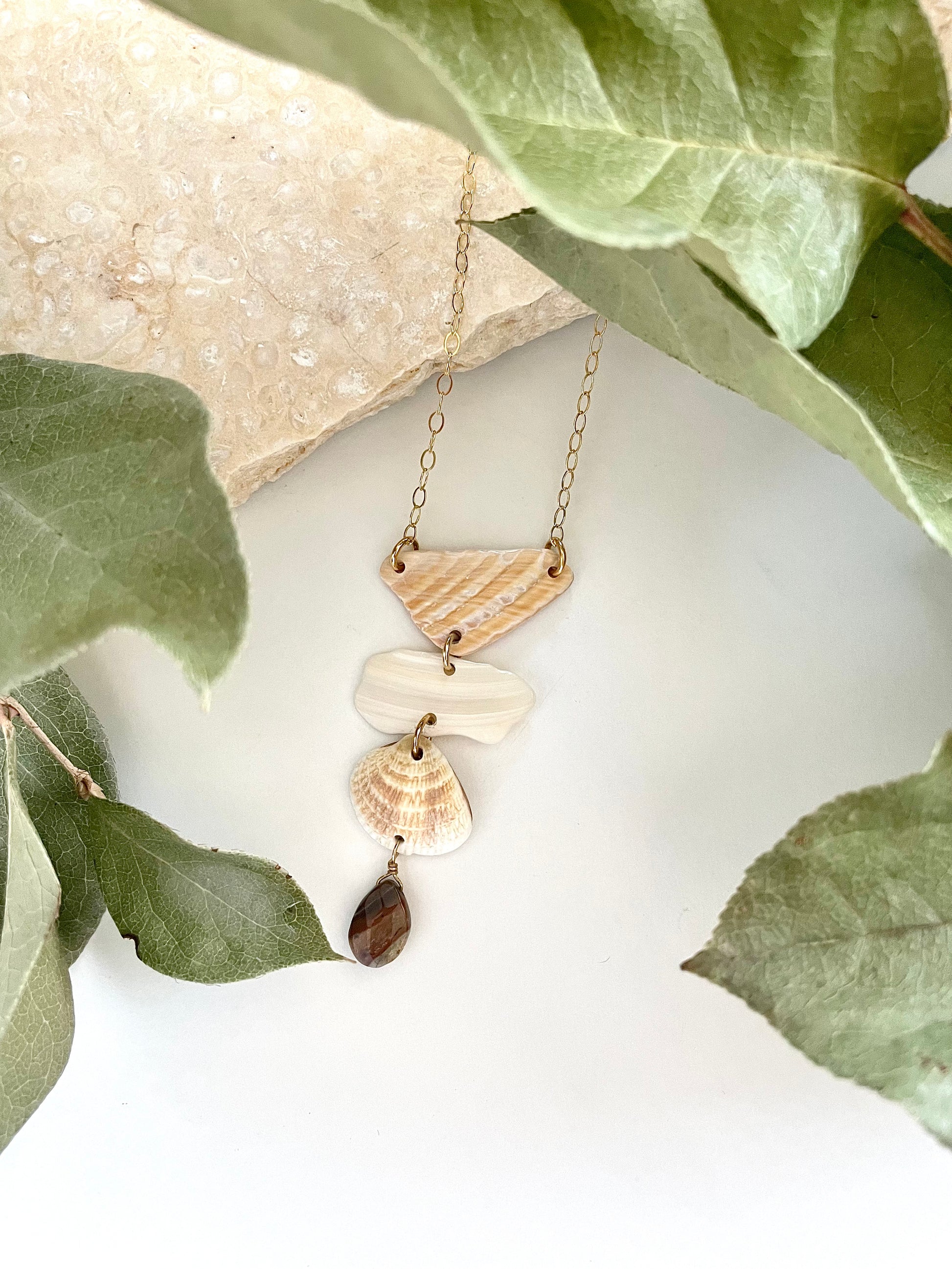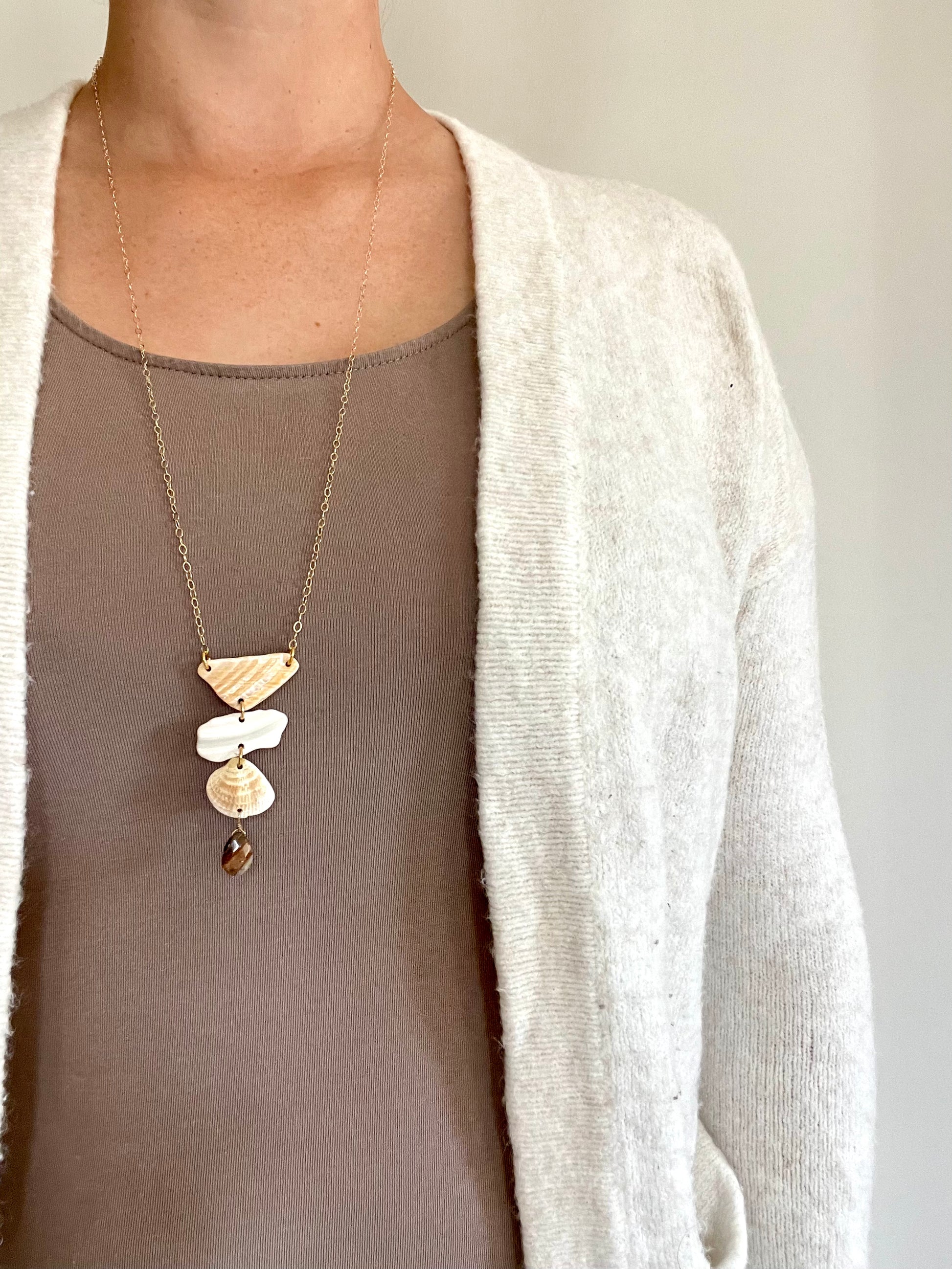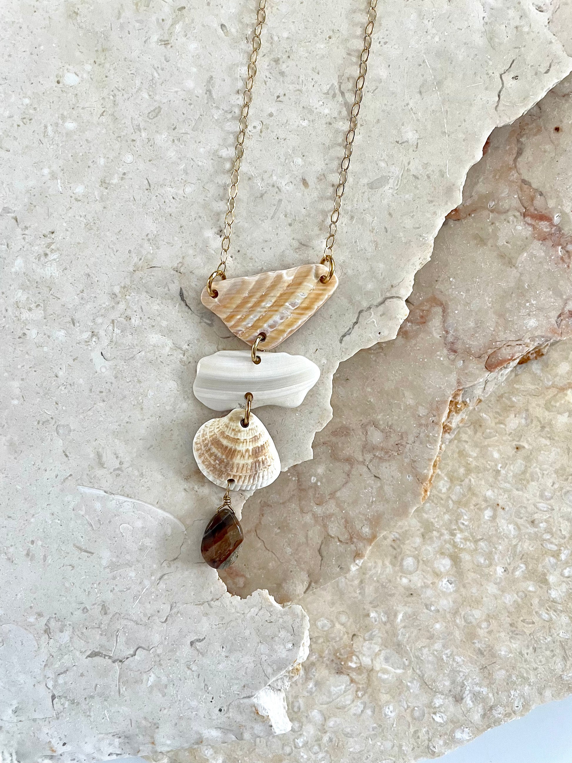 FROM THE BEACH // Chalcedony, Shell Fragments, Gold Fill Necklace